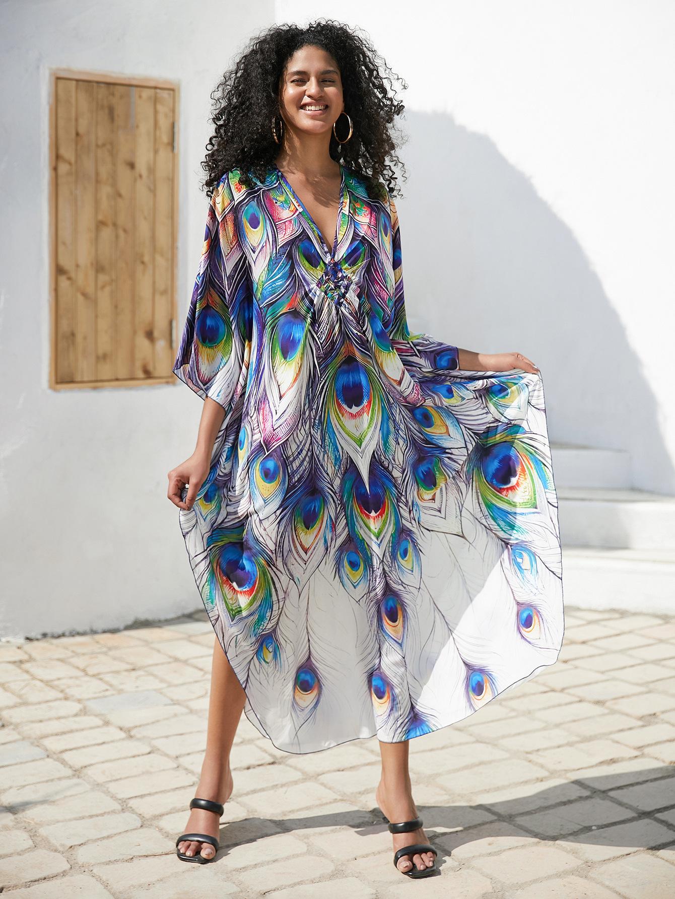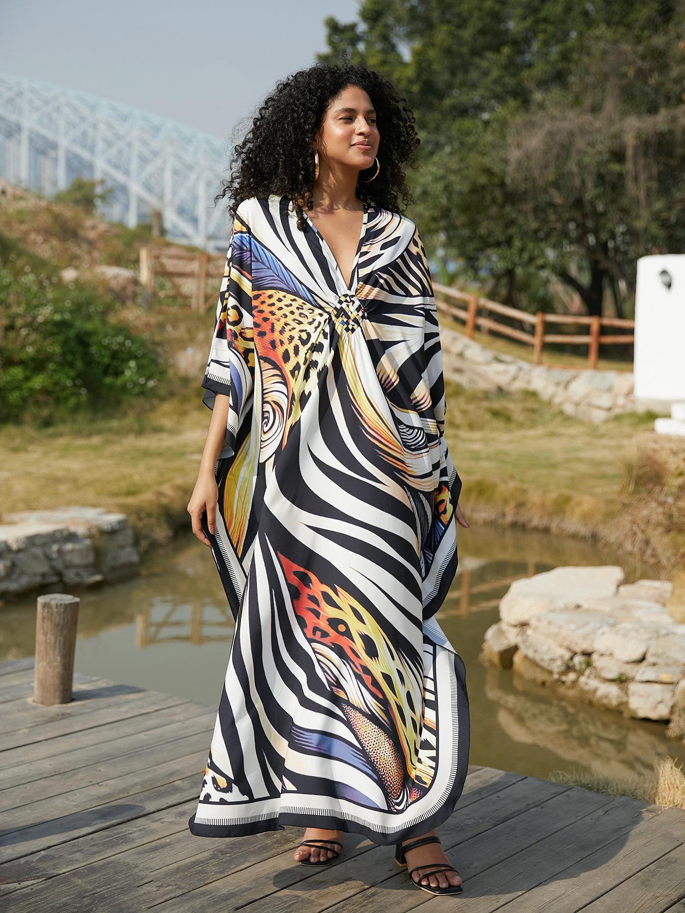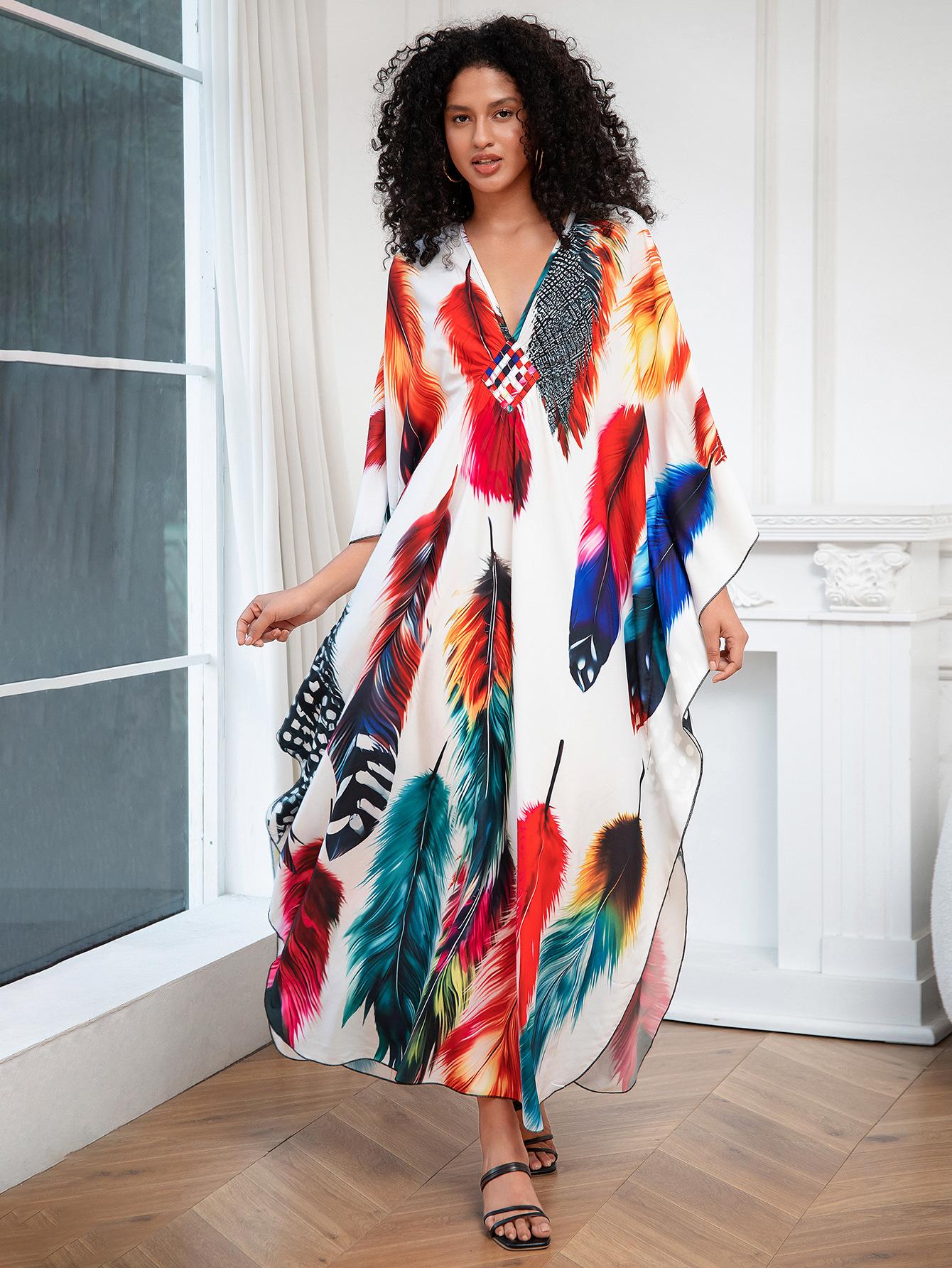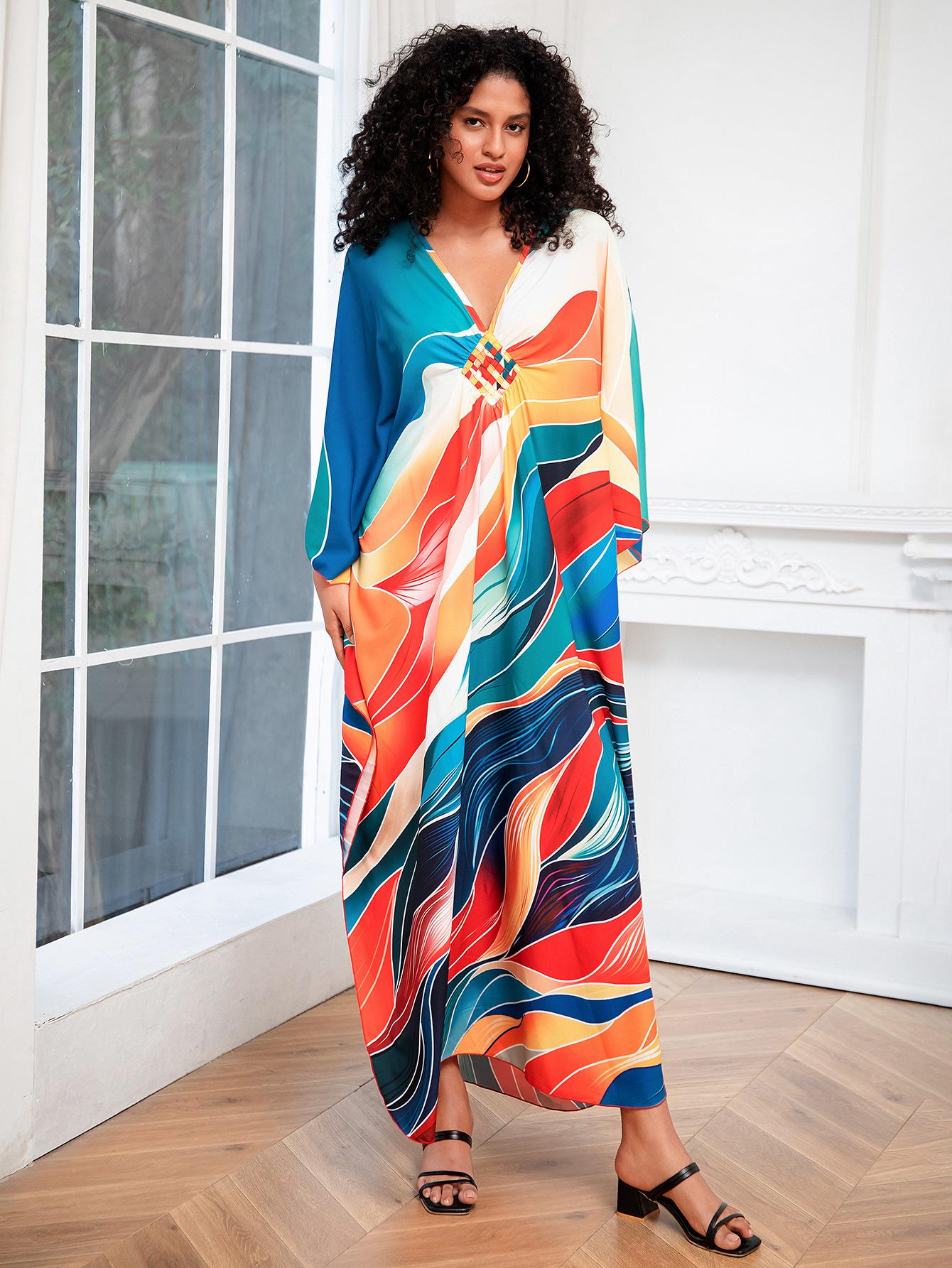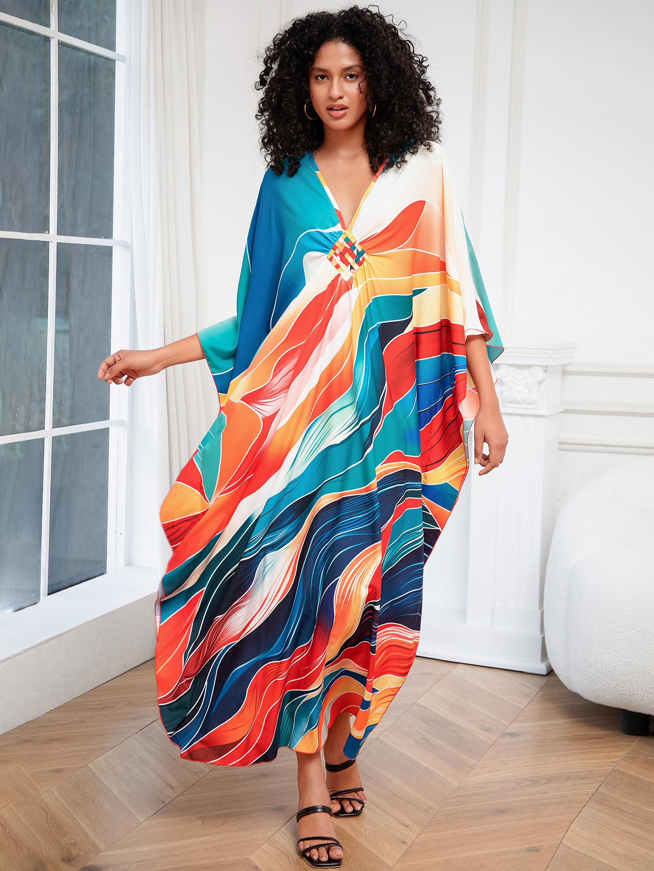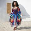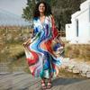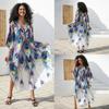 Posicionamiento Transfronterizo Europeo y Americano Estampado Vacacional Suelto Talla Grande Bata Vestido Cubre Bikini para Mujer