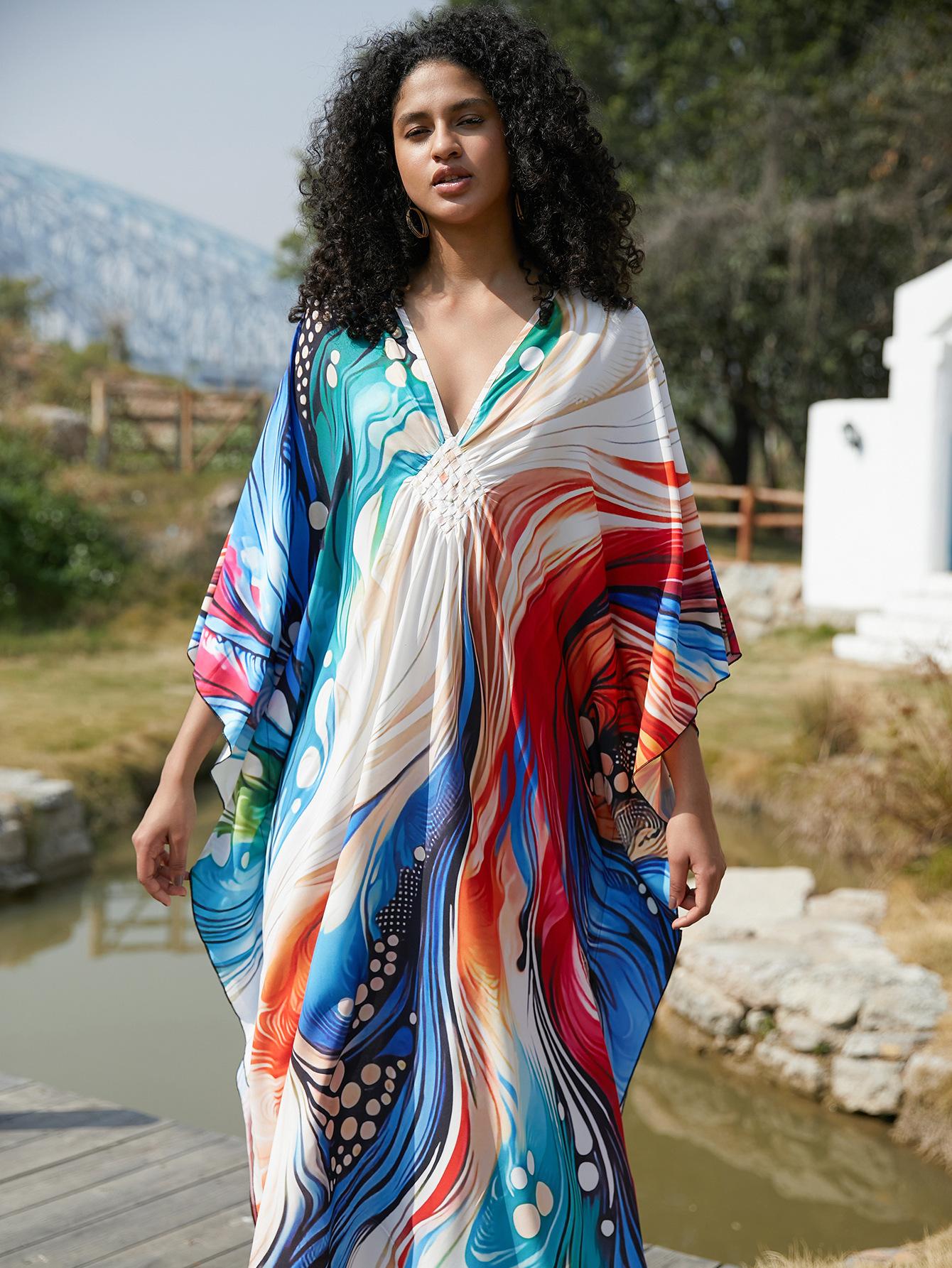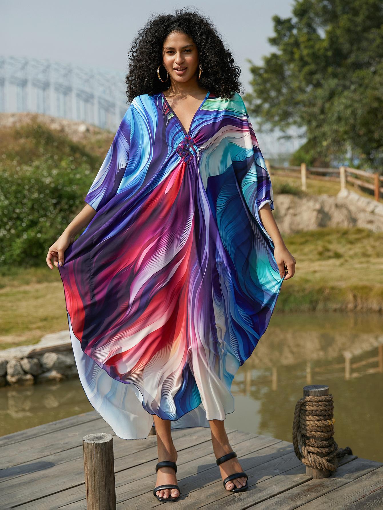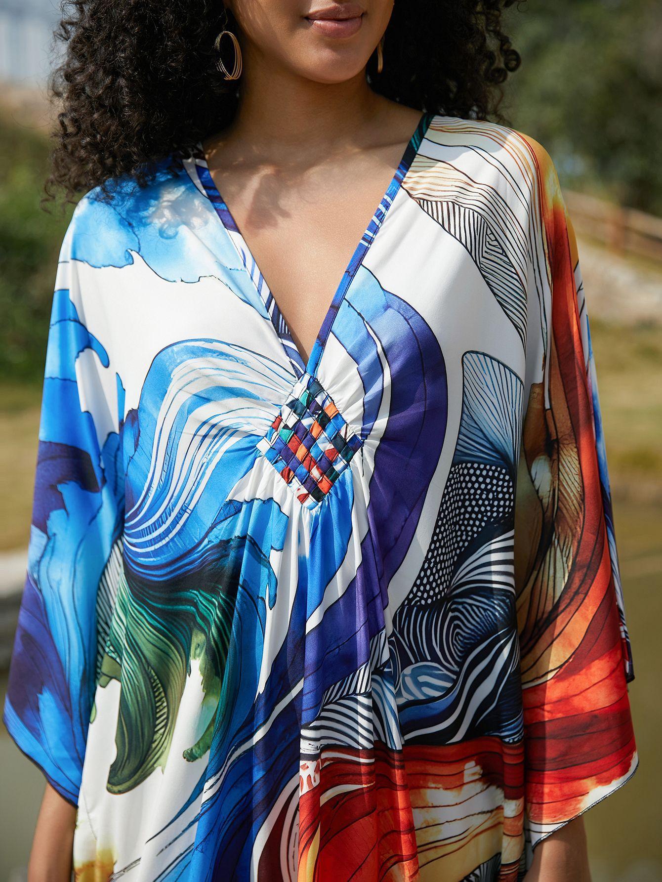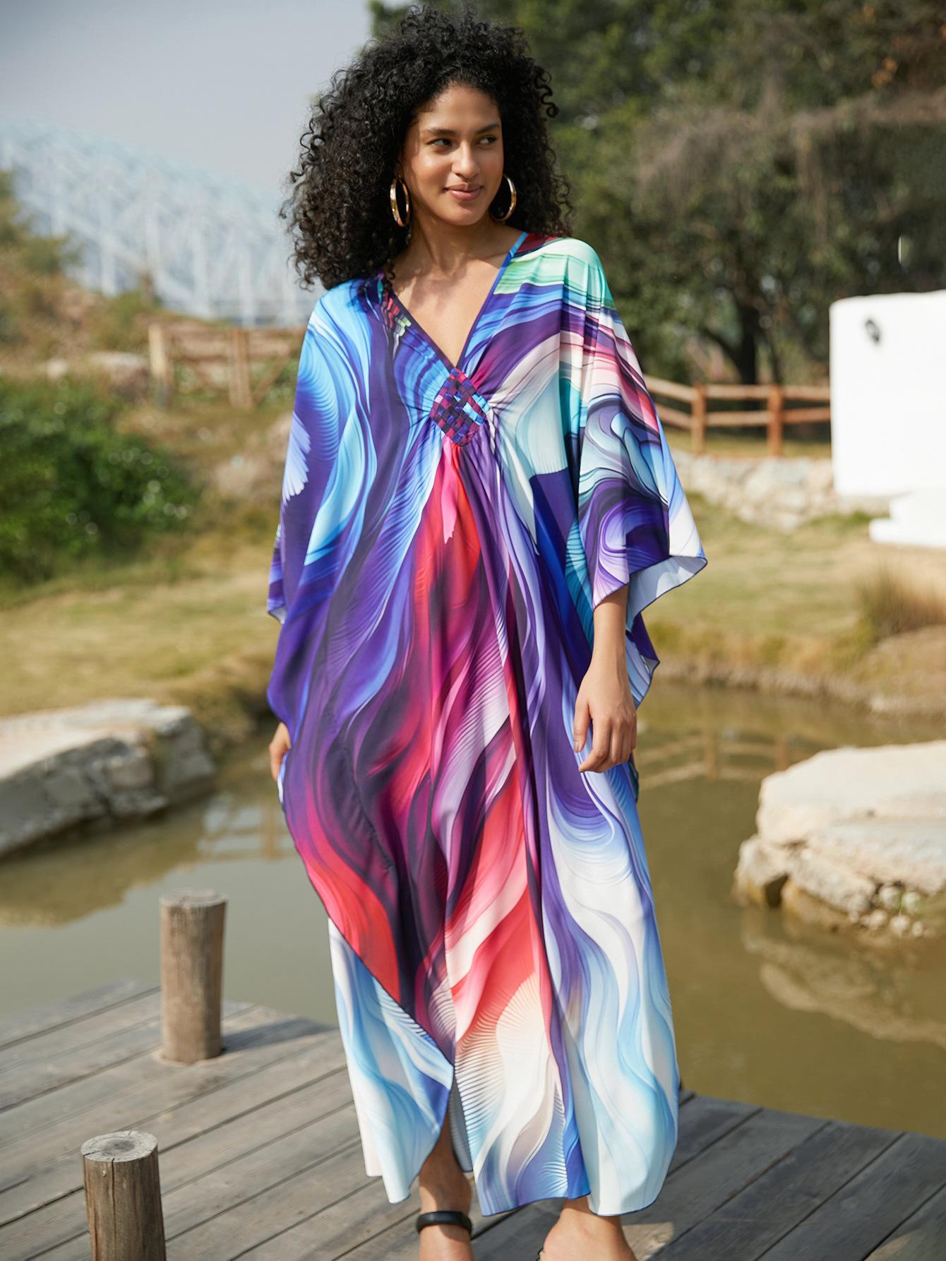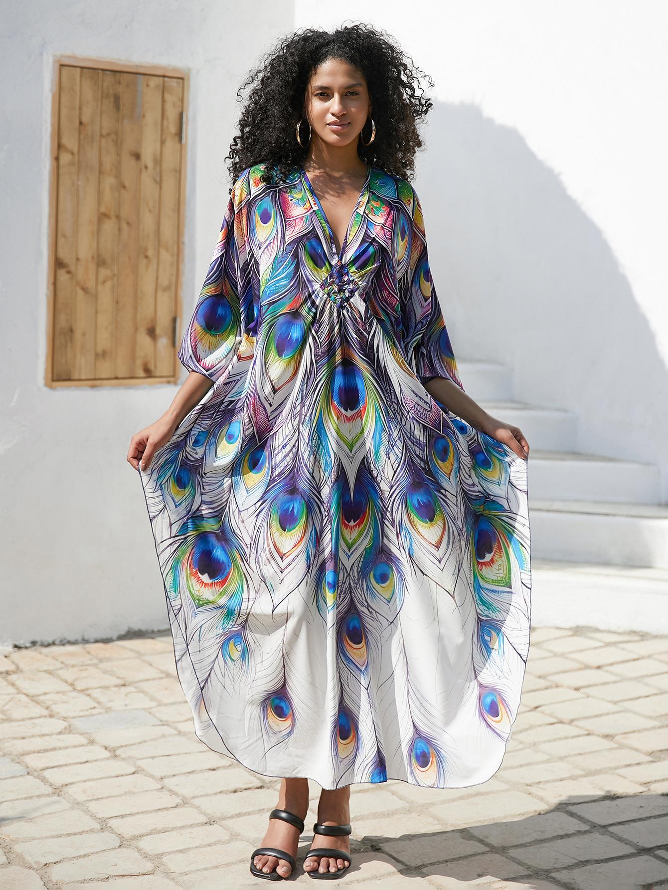 Posicionamiento Transfronterizo Europeo y Americano Estampado Vacacional Suelto Talla Grande Bata Vestido Cubre Bikini para Mujer