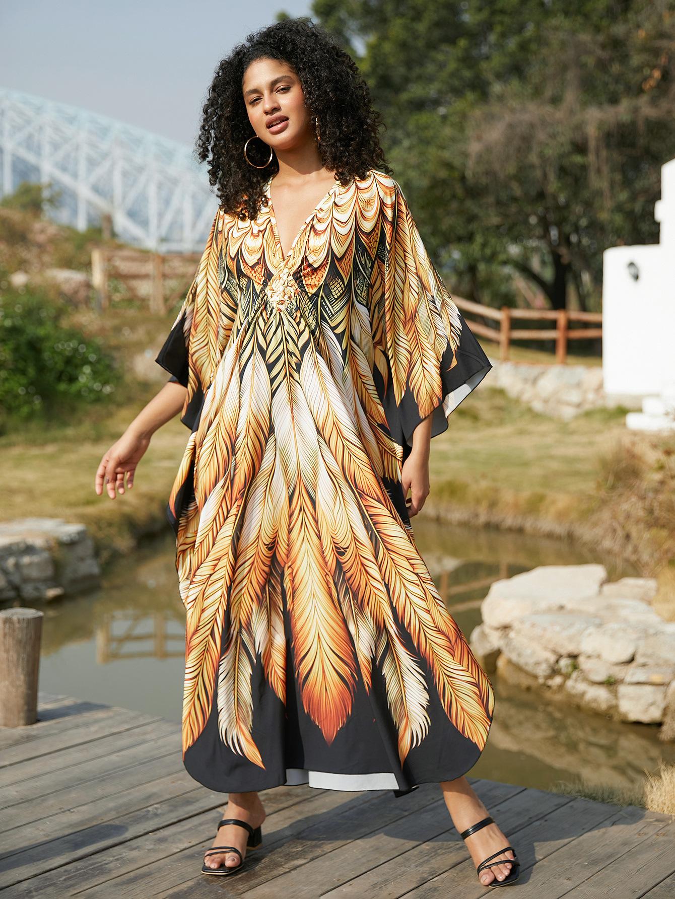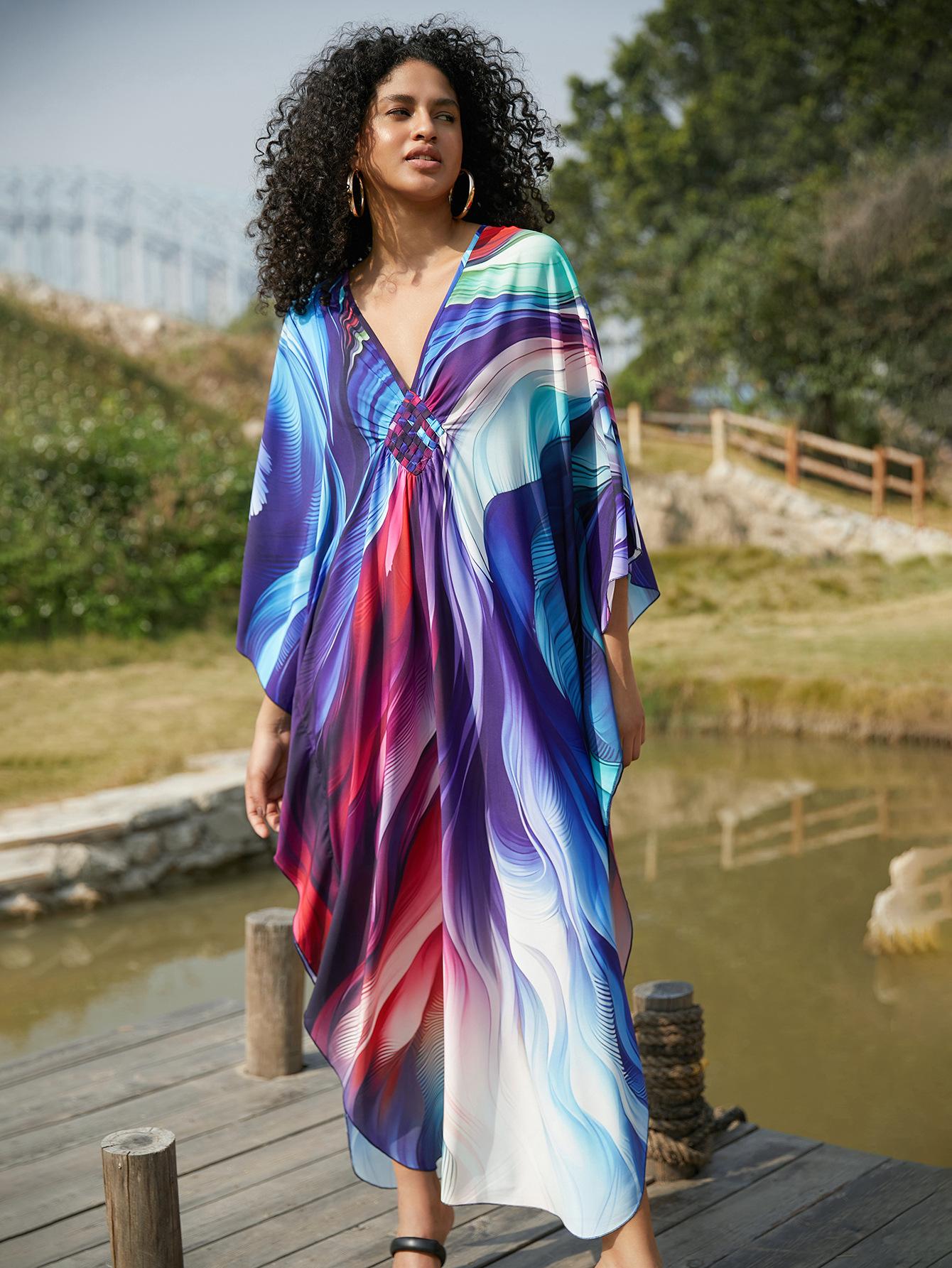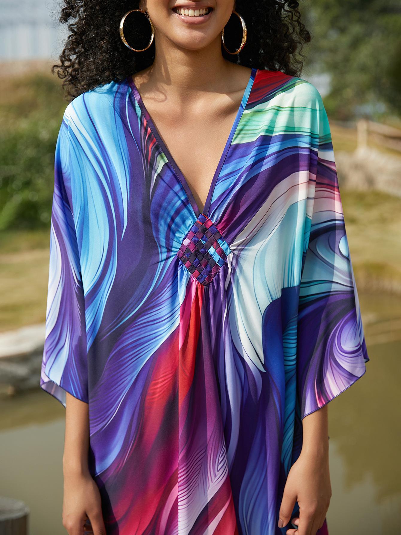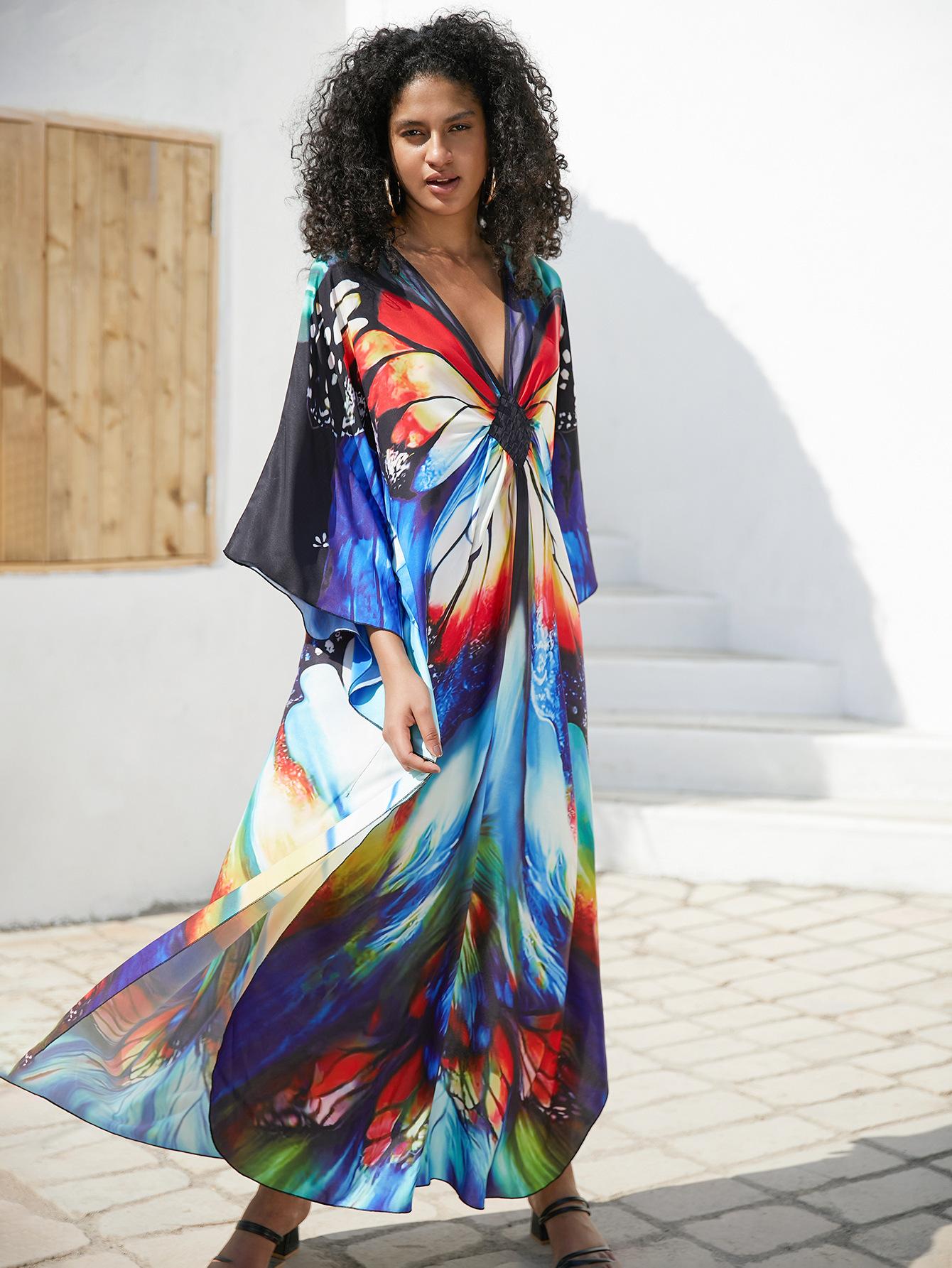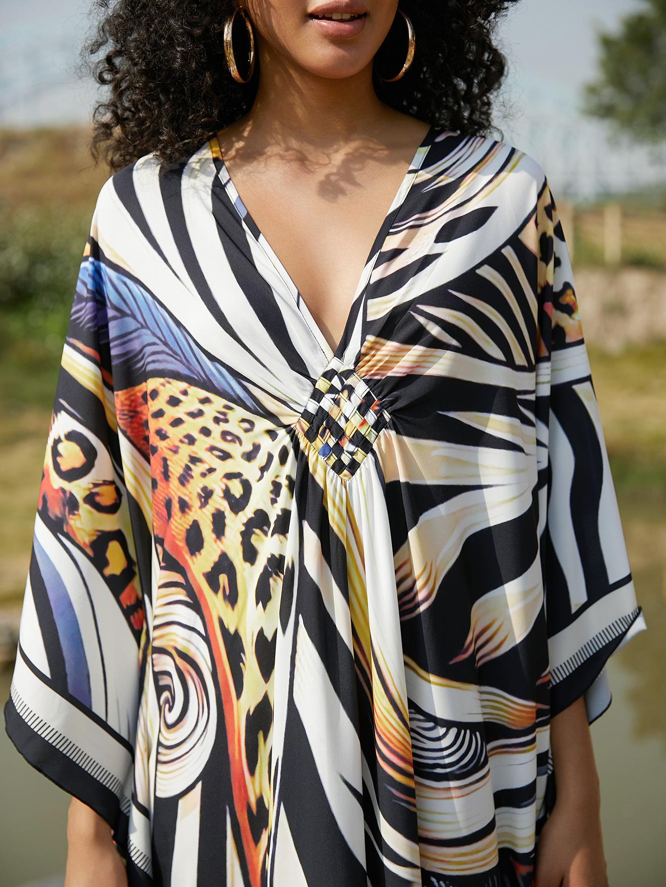 Posicionamiento Transfronterizo Europeo y Americano Estampado Vacacional Suelto Talla Grande Bata Vestido Cubre Bikini para Mujer
