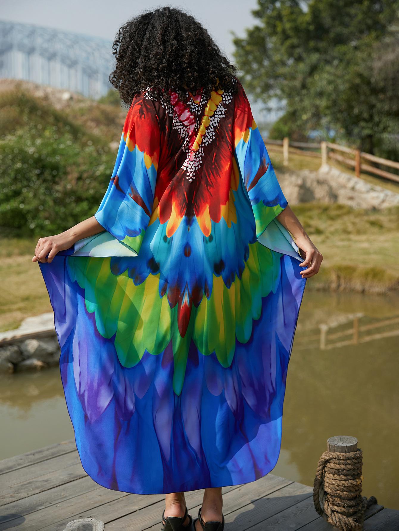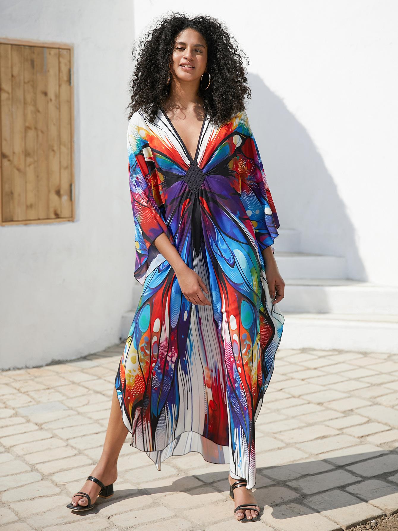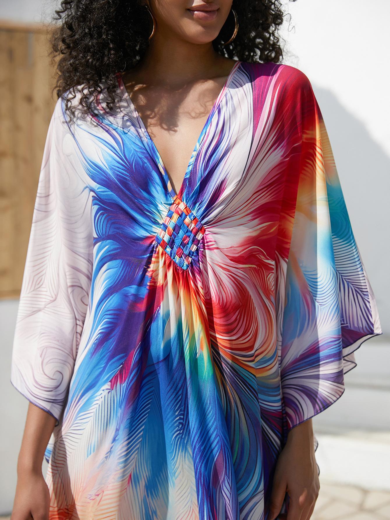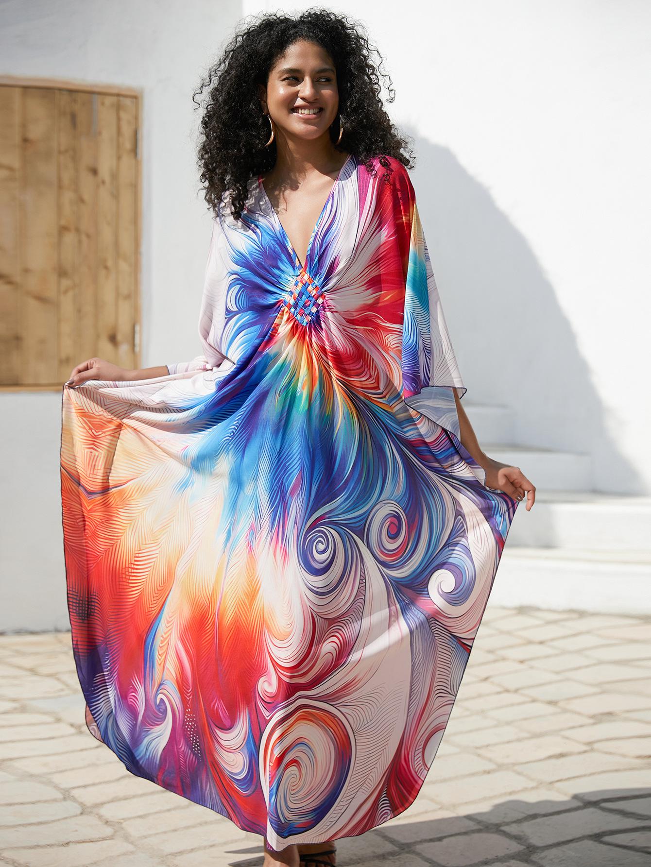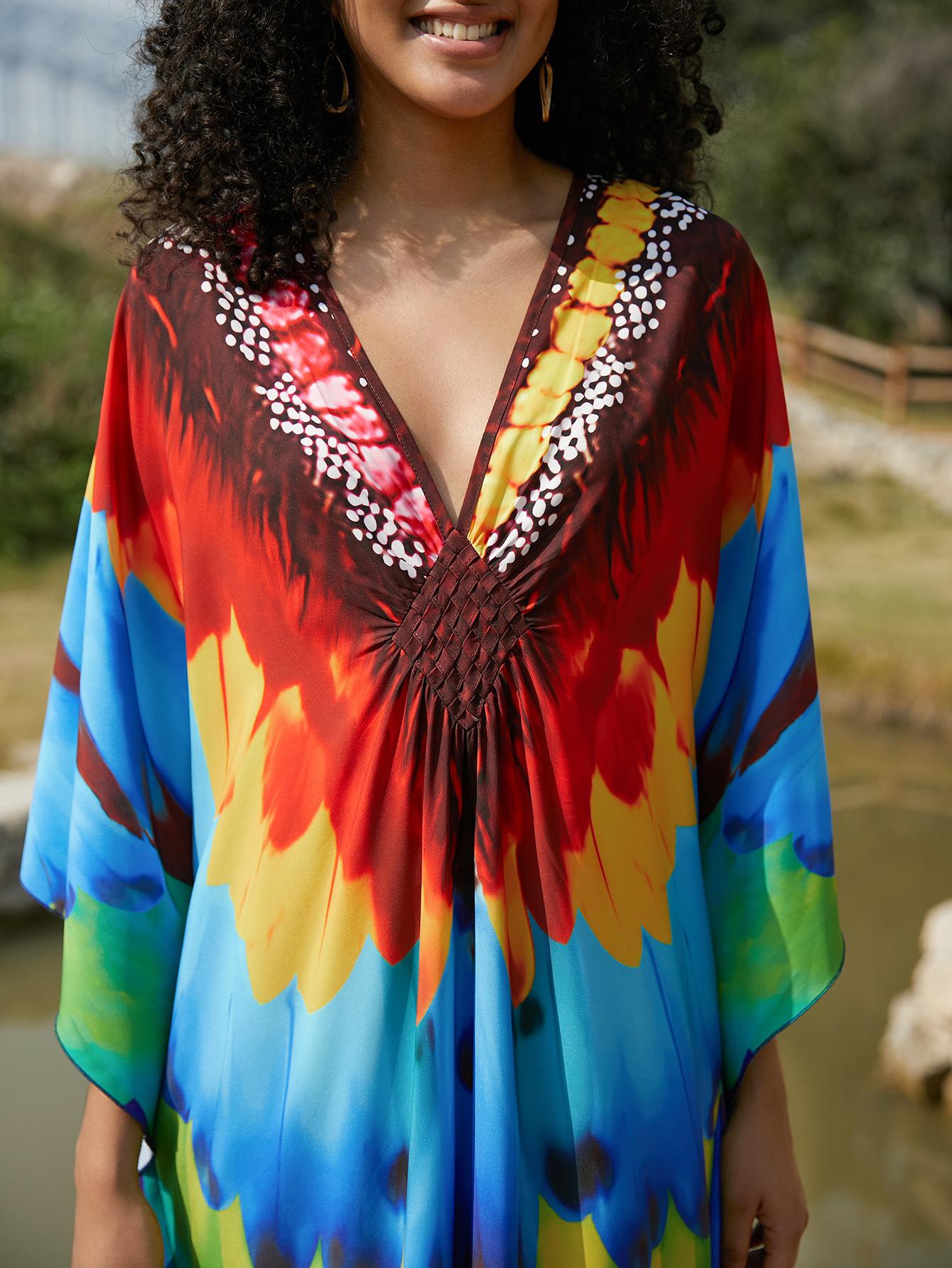 Posicionamiento Transfronterizo Europeo y Americano Estampado Vacacional Suelto Talla Grande Bata Vestido Cubre Bikini para Mujer