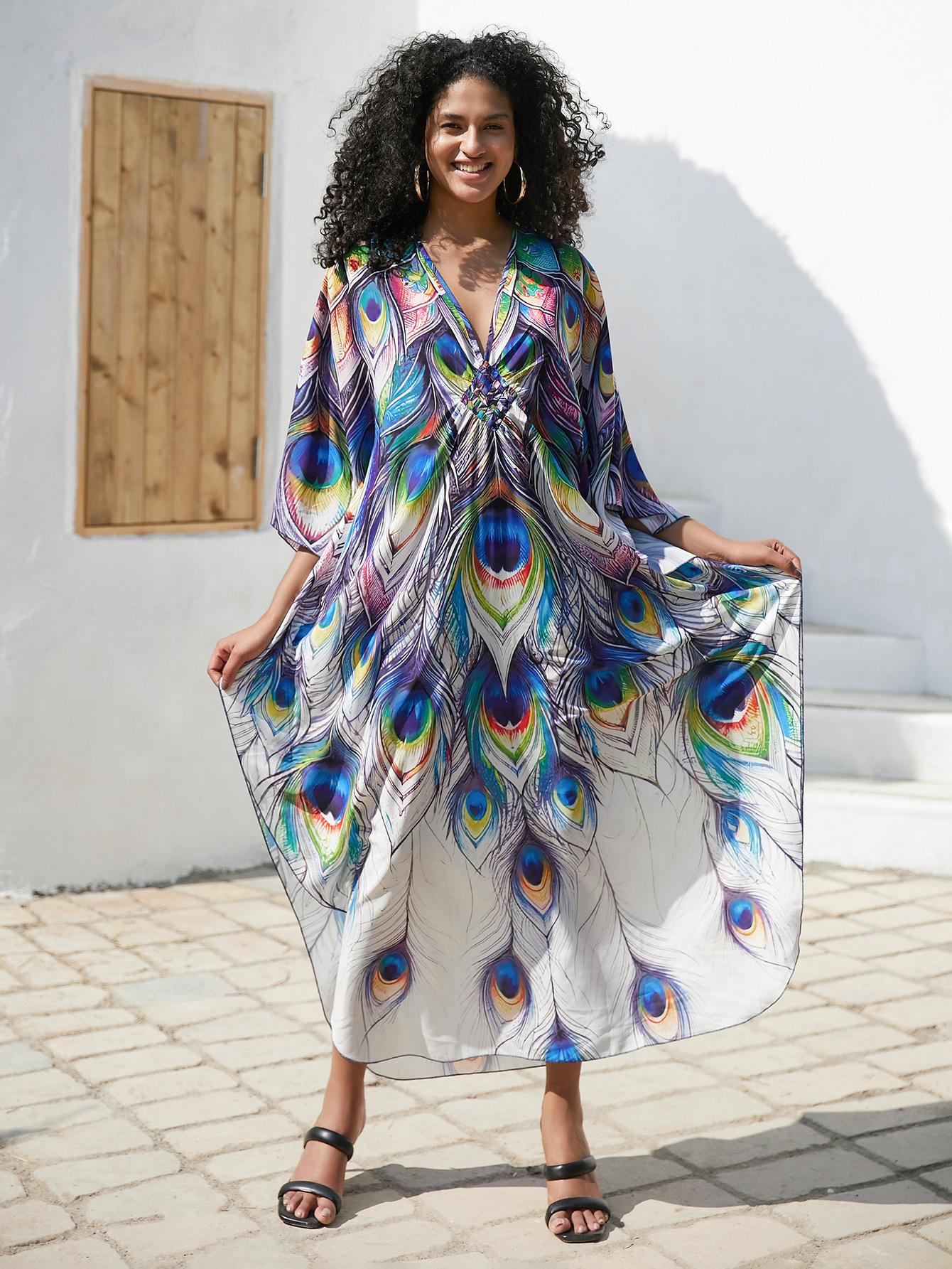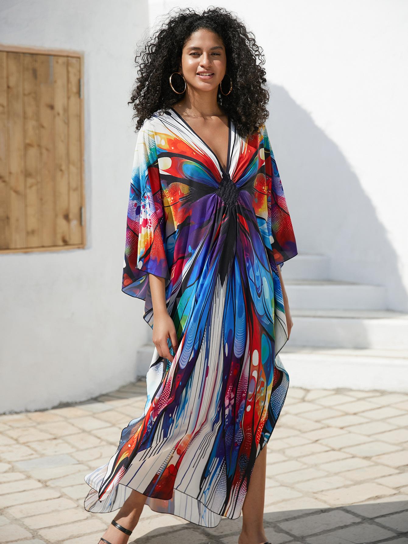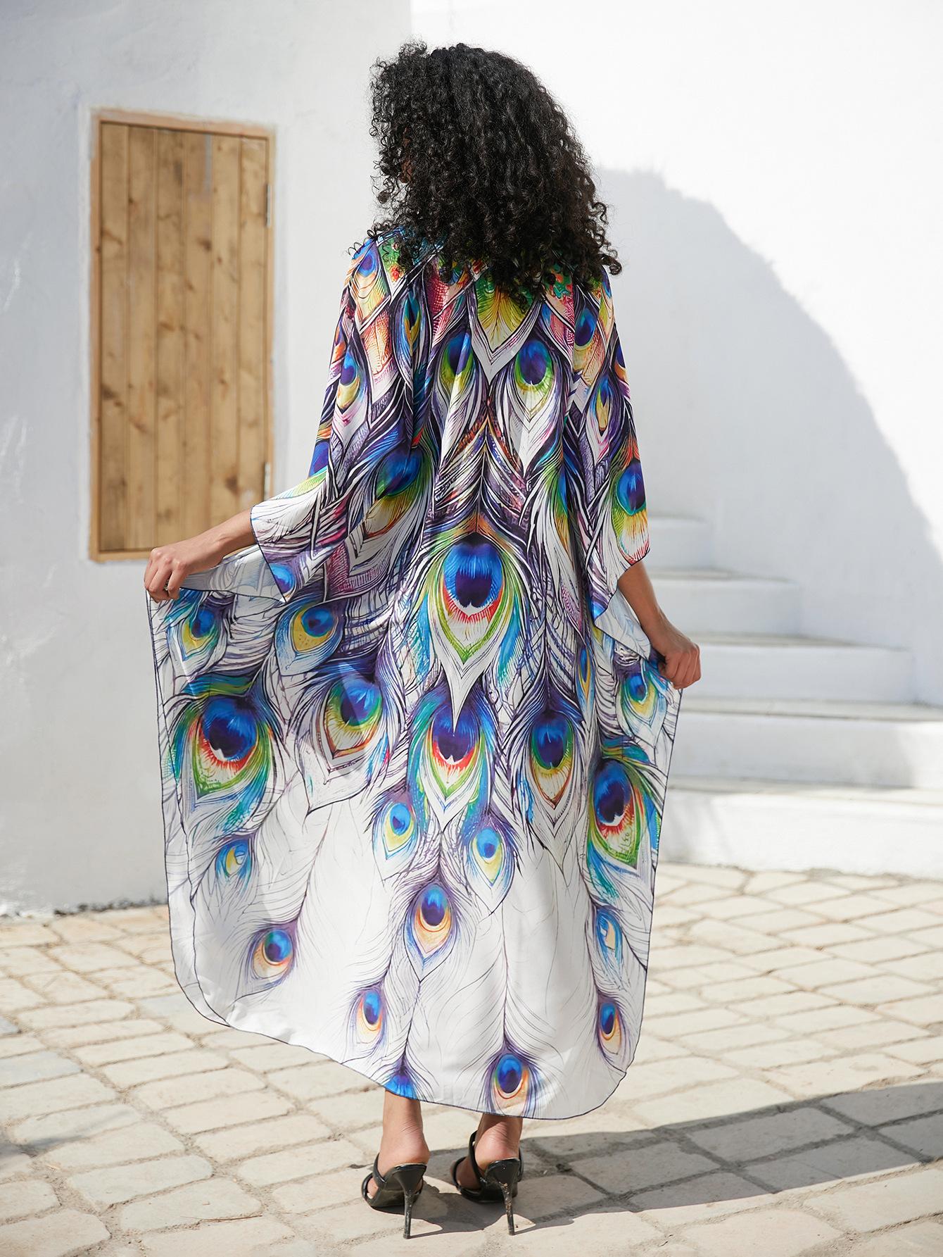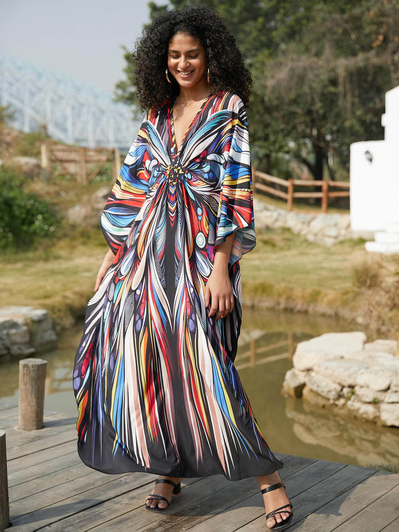 Posicionamiento Transfronterizo Europeo y Americano Estampado Vacacional Suelto Talla Grande Bata Vestido Cubre Bikini para Mujer