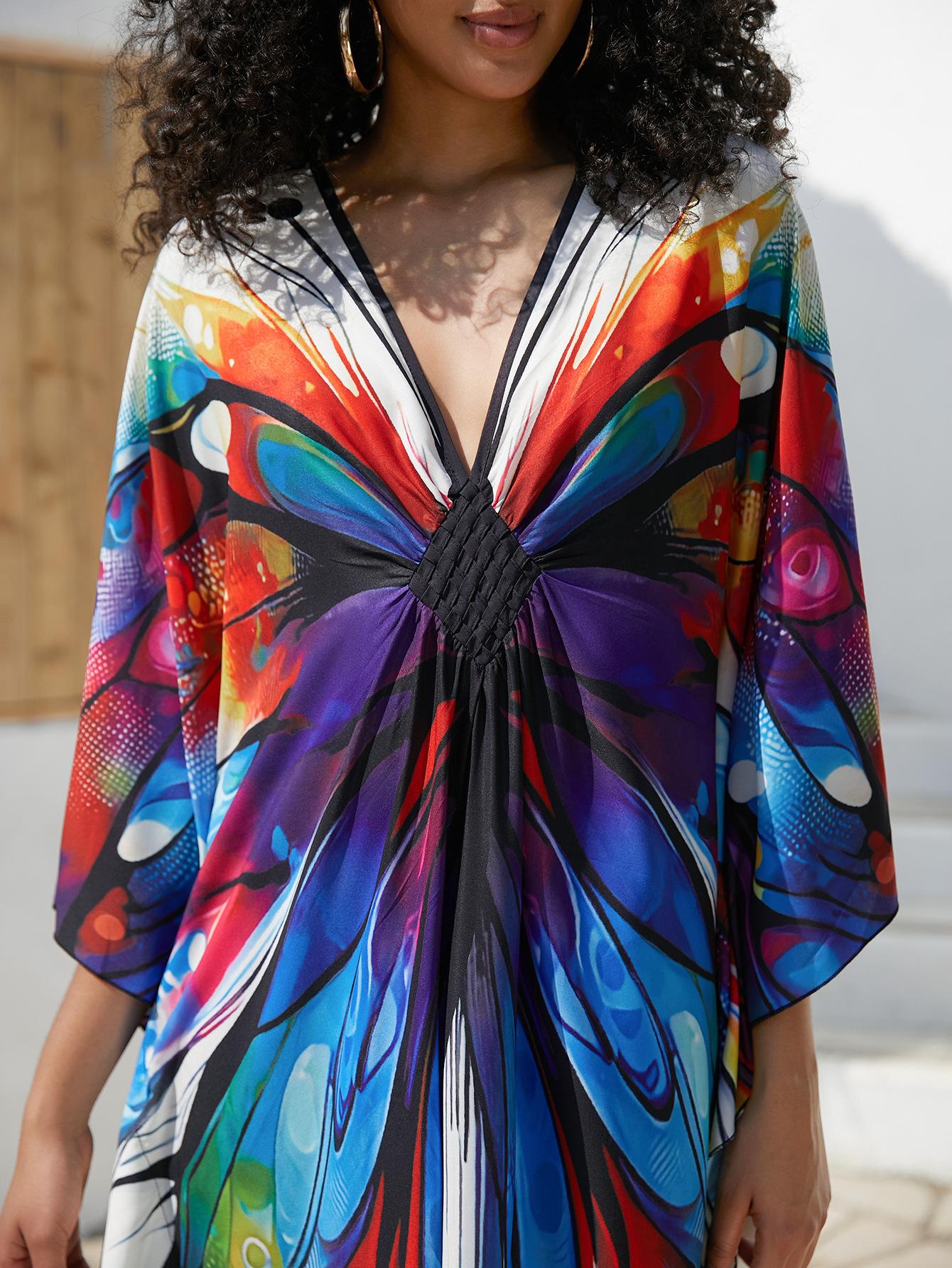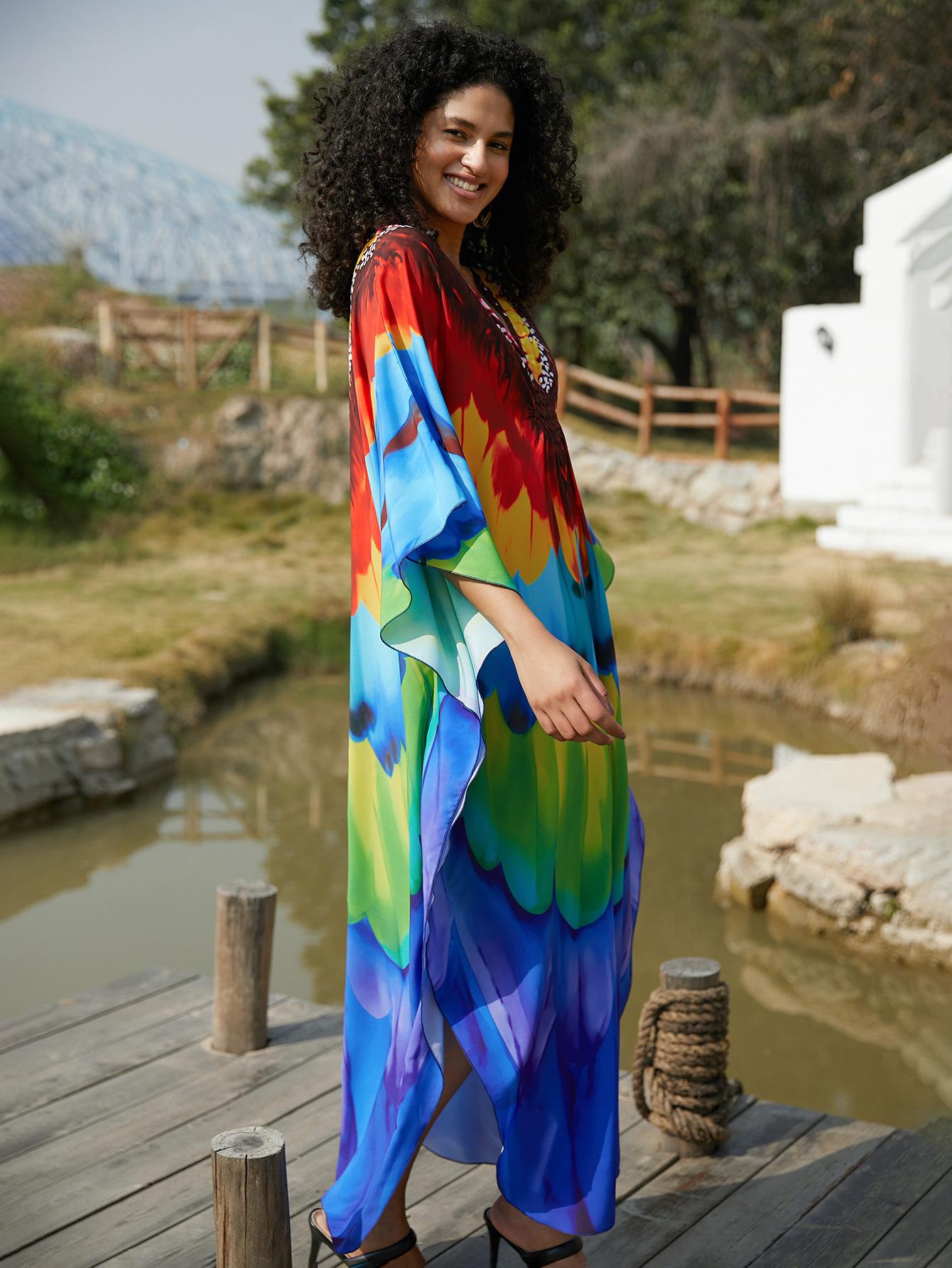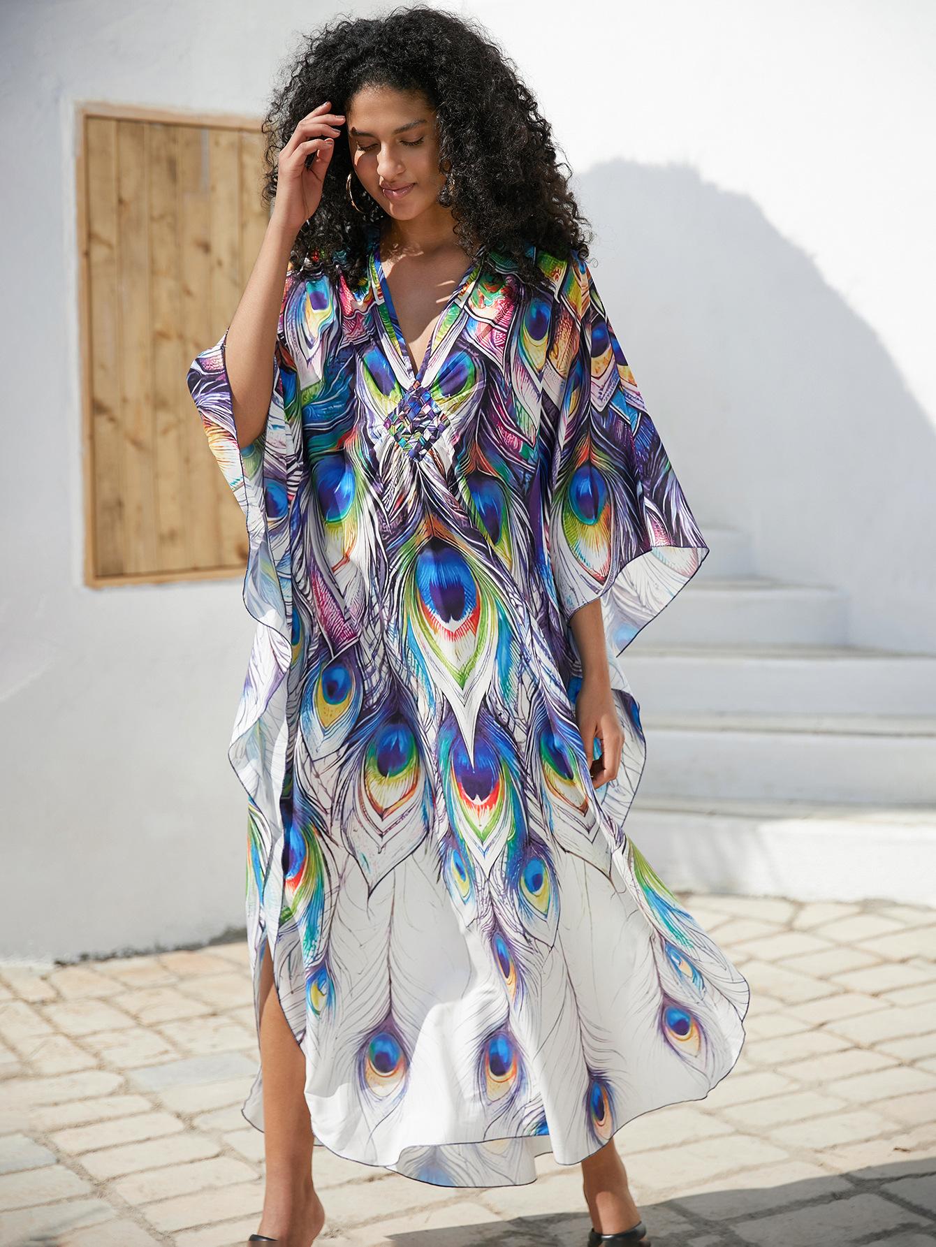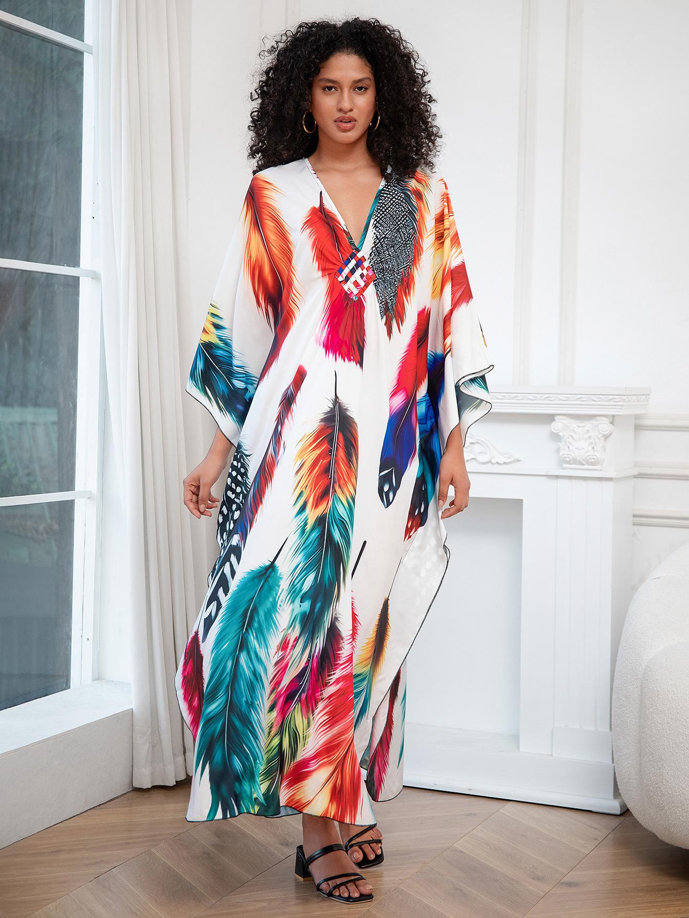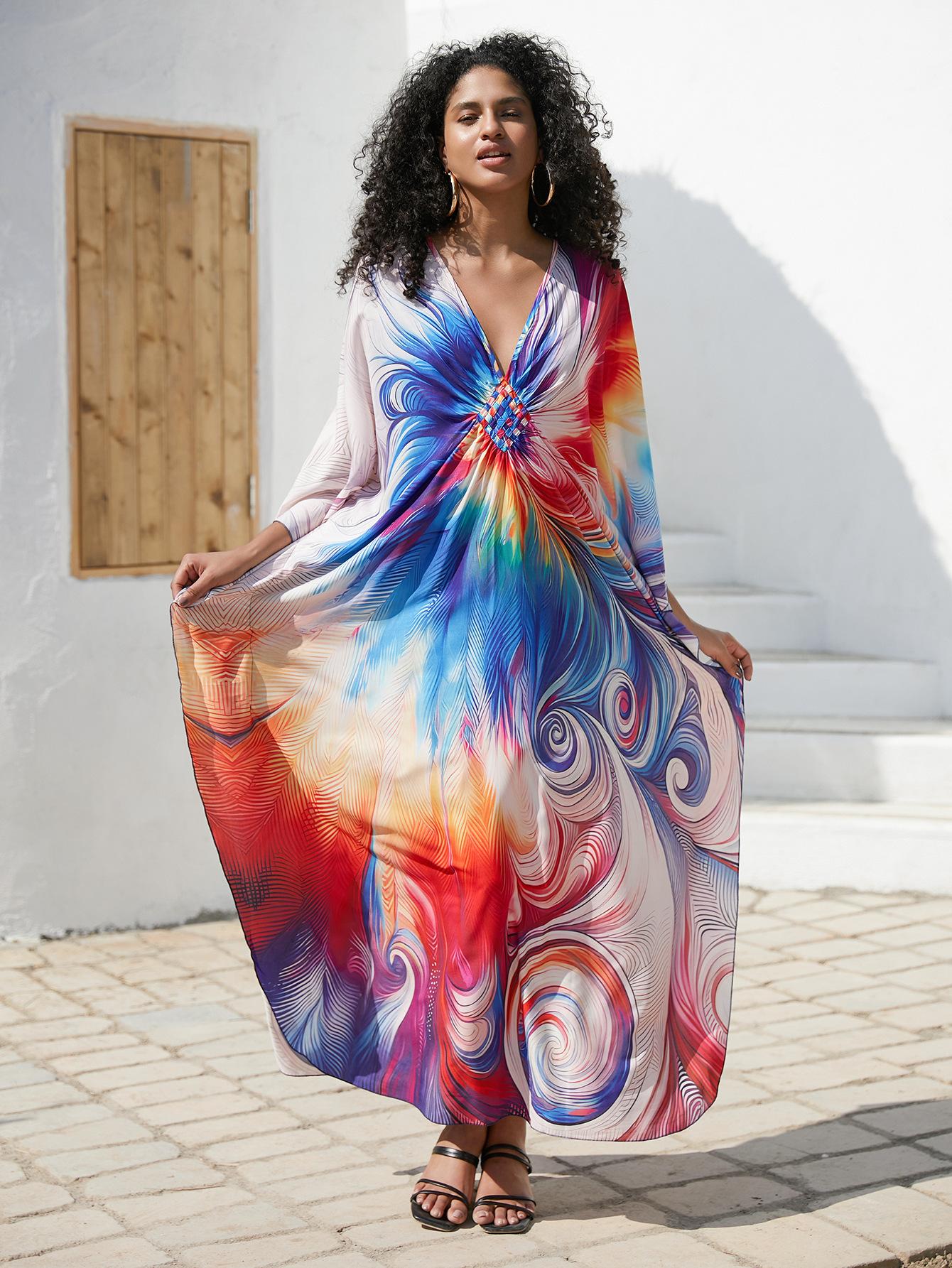 Posicionamiento Transfronterizo Europeo y Americano Estampado Vacacional Suelto Talla Grande Bata Vestido Cubre Bikini para Mujer