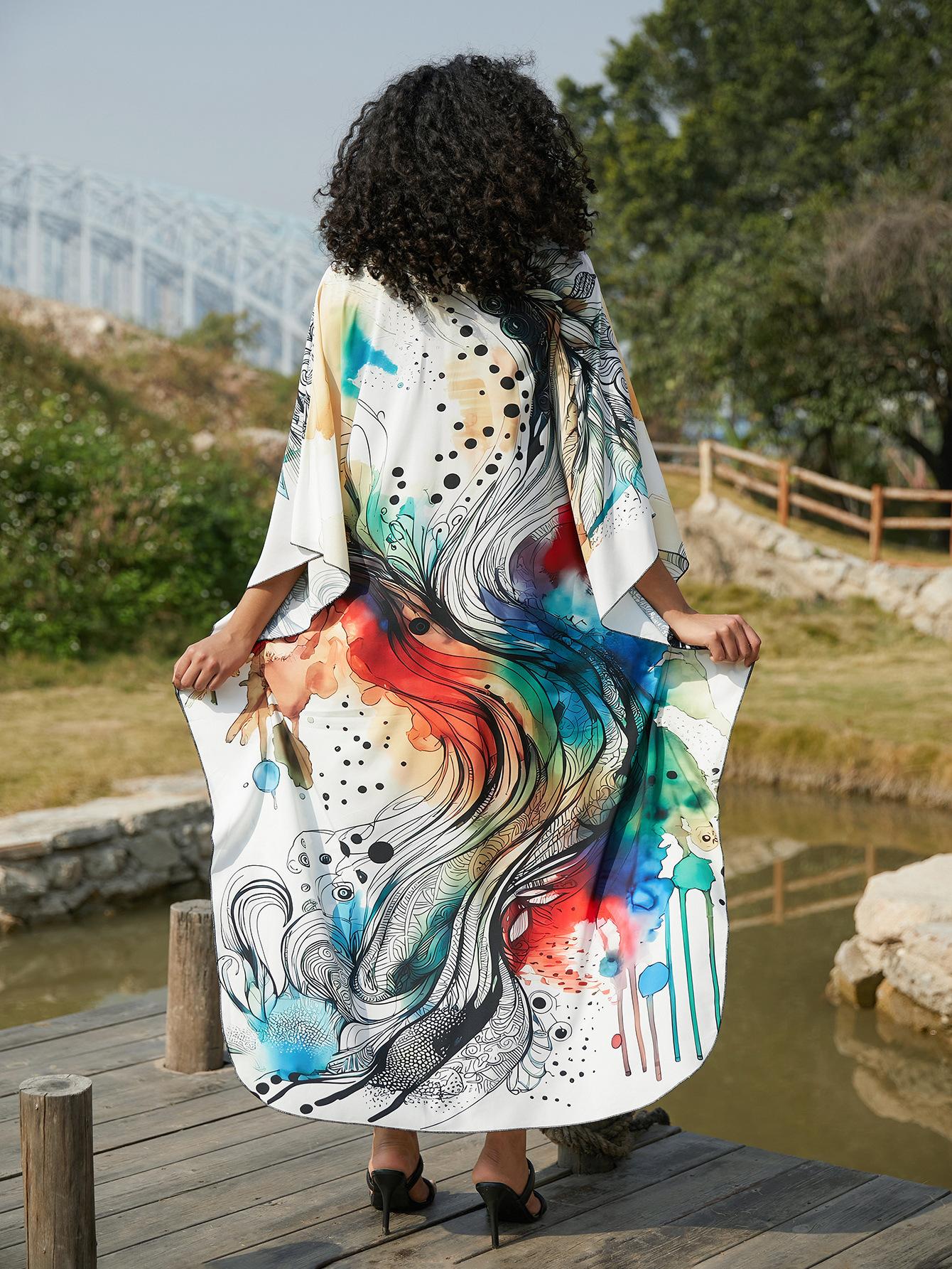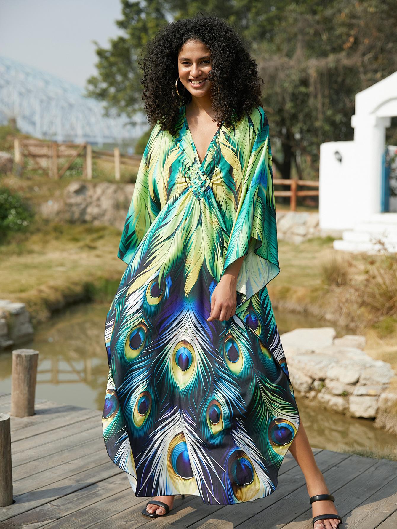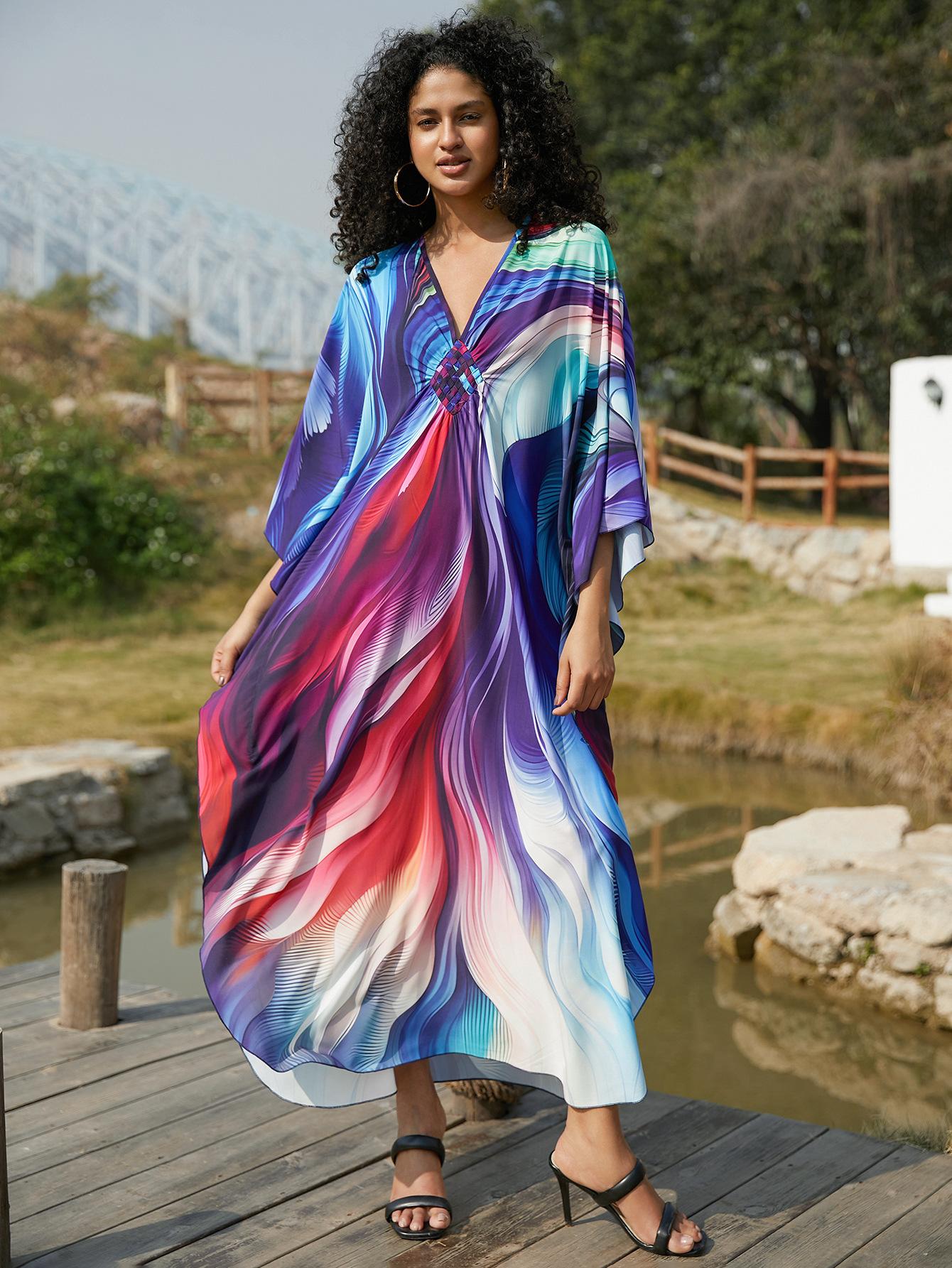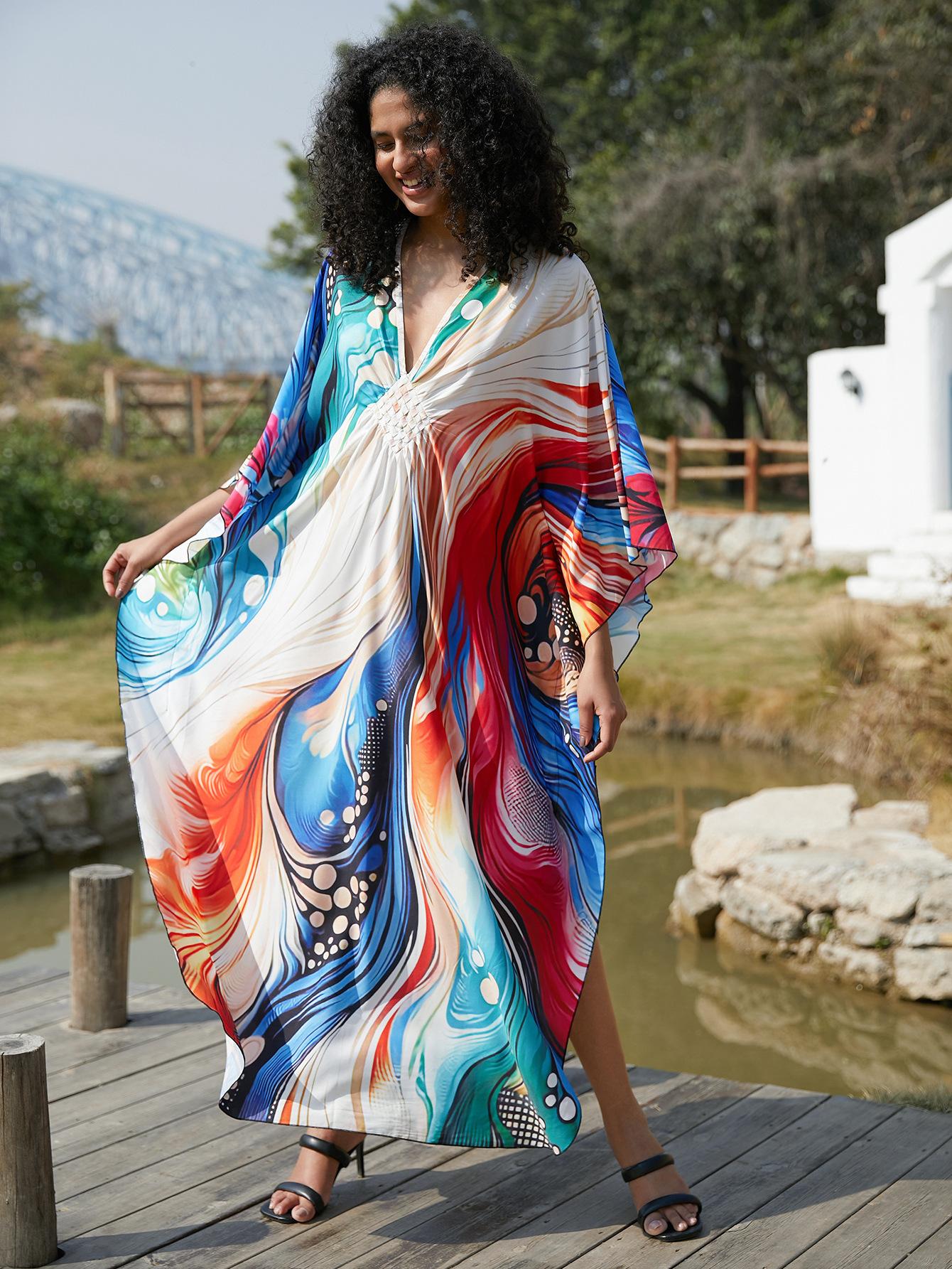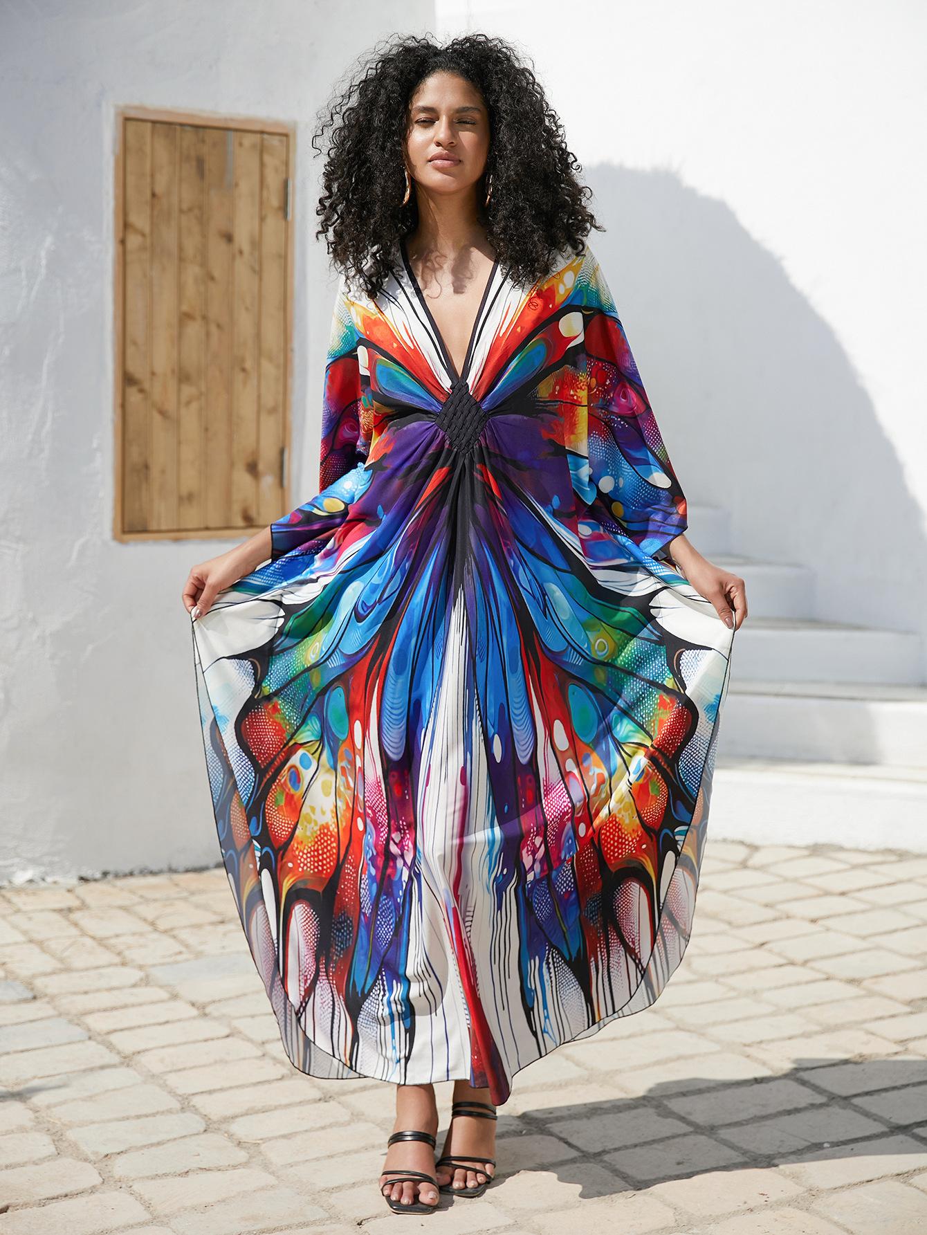 Posicionamiento Transfronterizo Europeo y Americano Estampado Vacacional Suelto Talla Grande Bata Vestido Cubre Bikini para Mujer