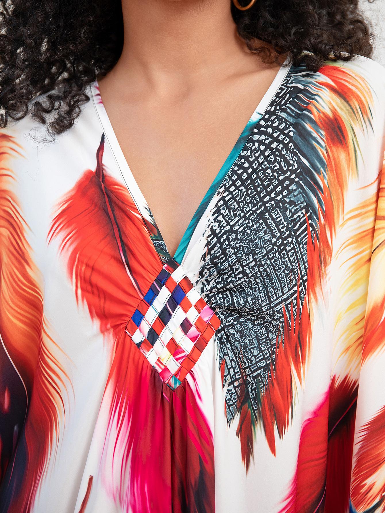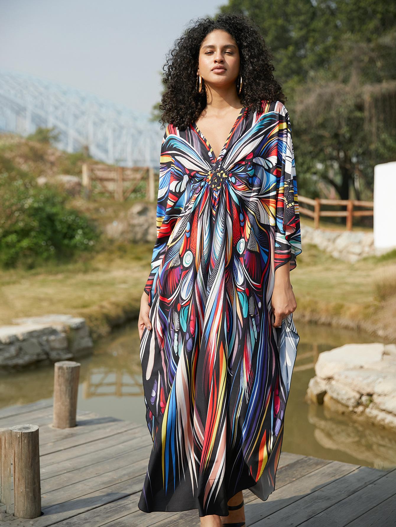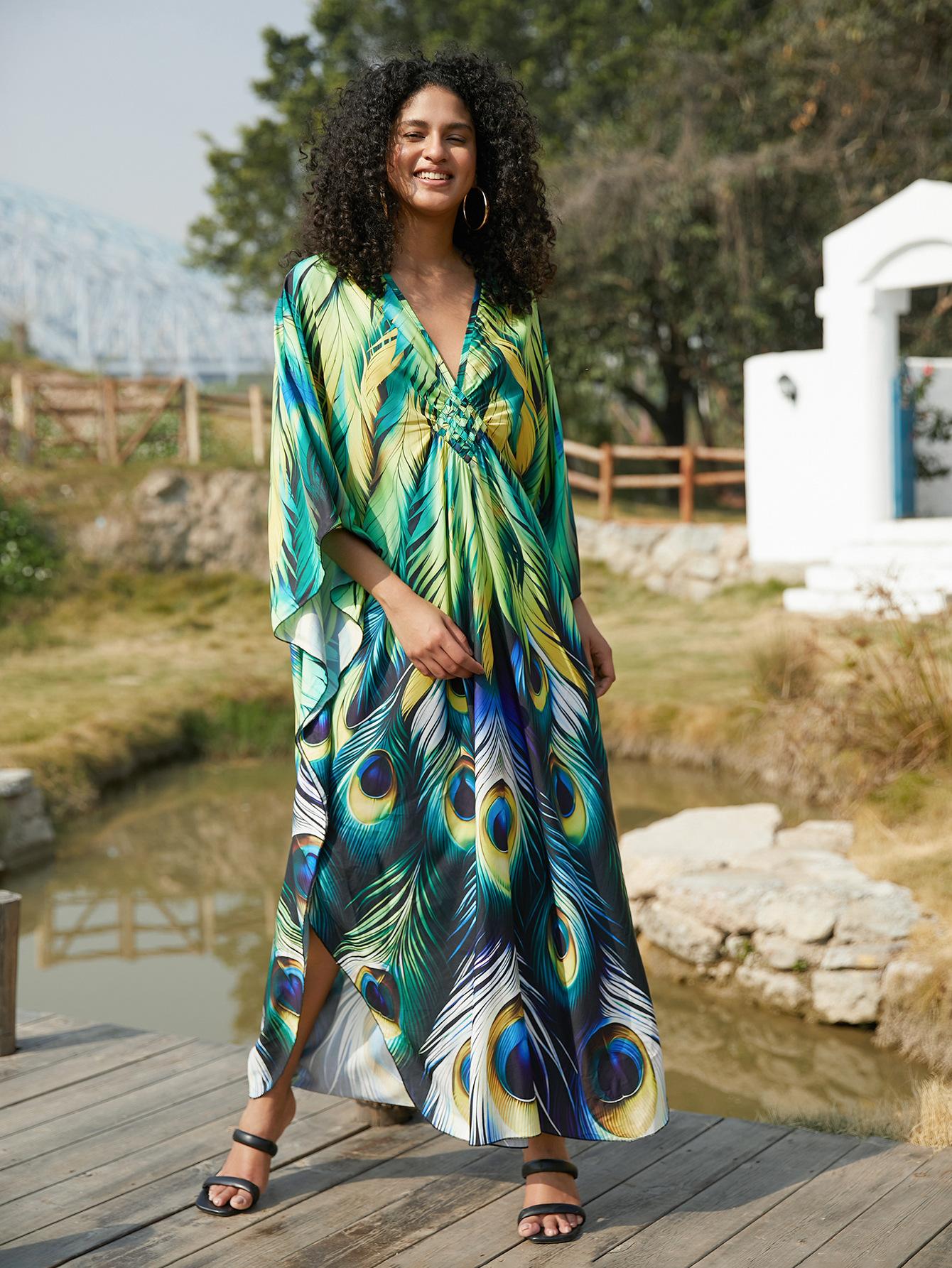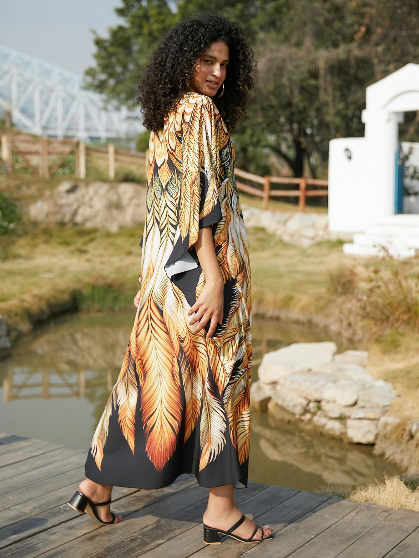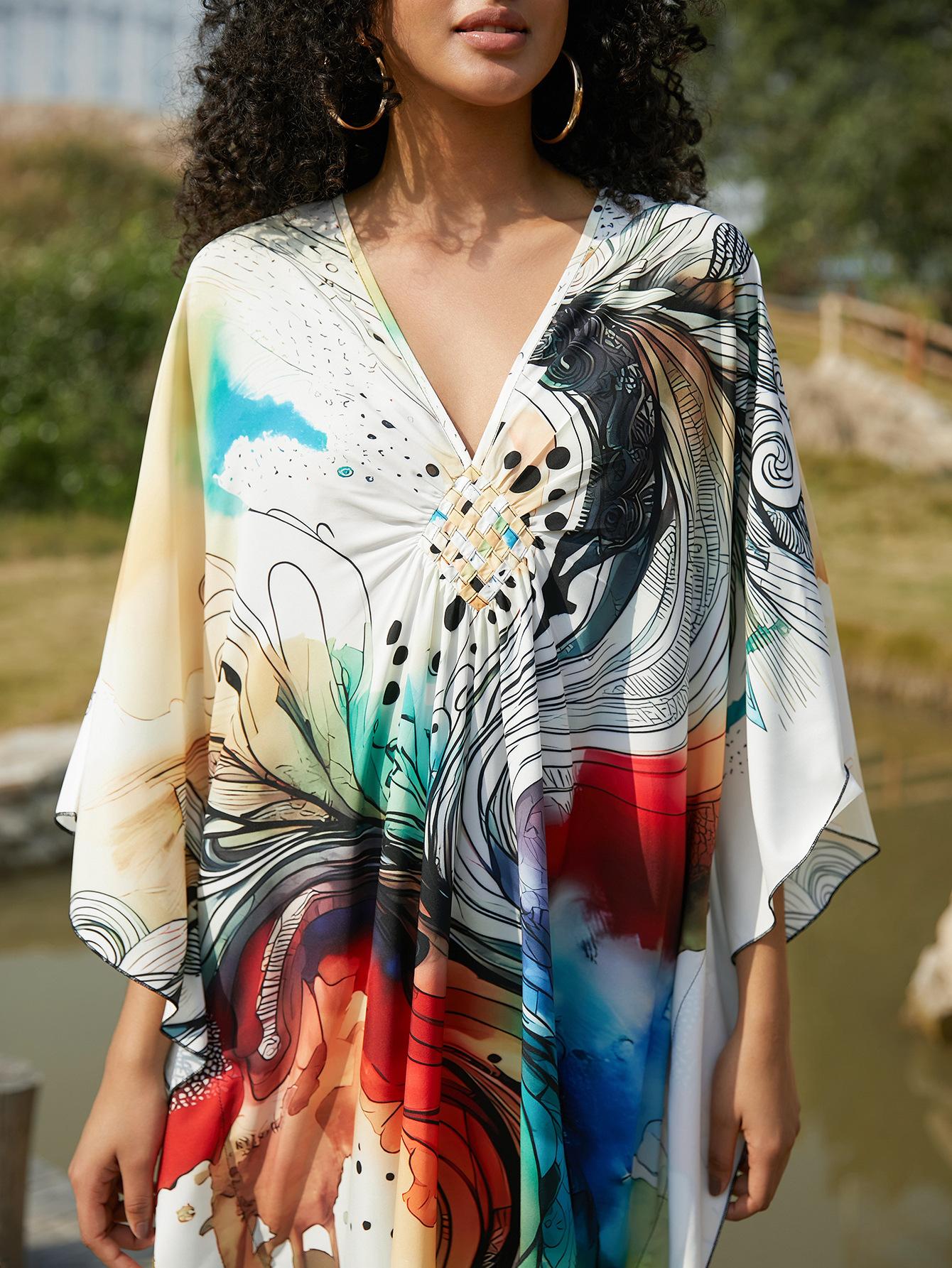 Posicionamiento Transfronterizo Europeo y Americano Estampado Vacacional Suelto Talla Grande Bata Vestido Cubre Bikini para Mujer