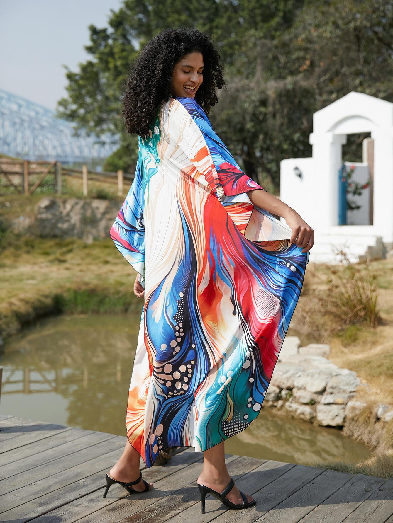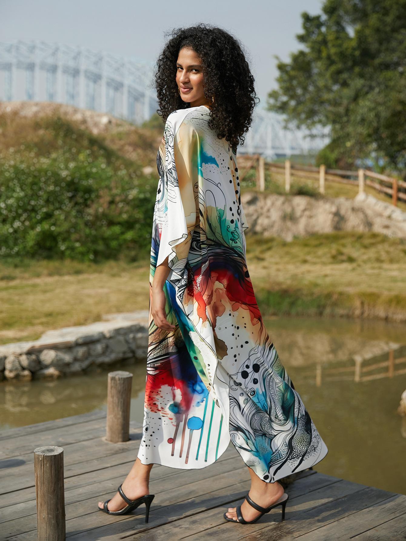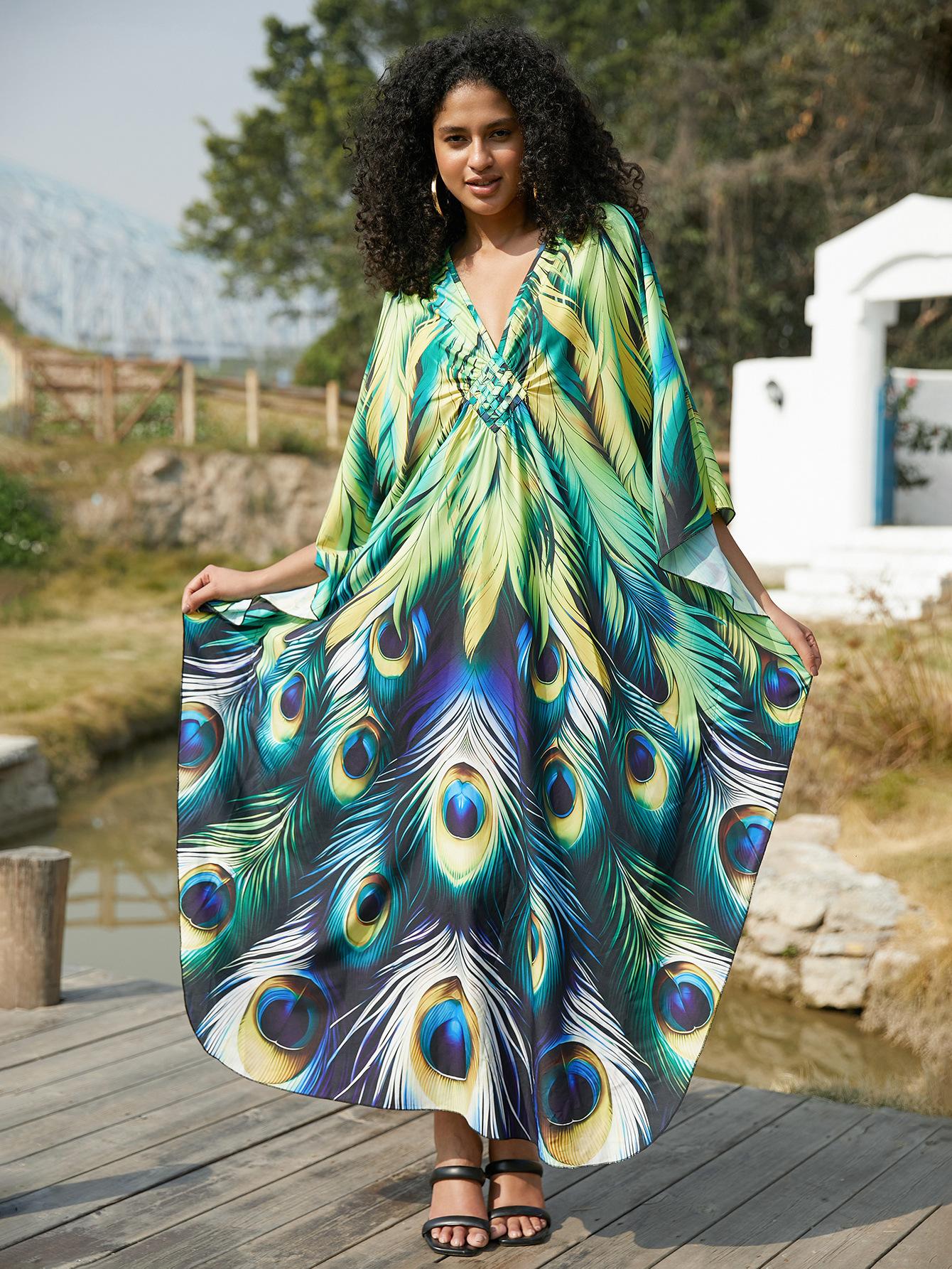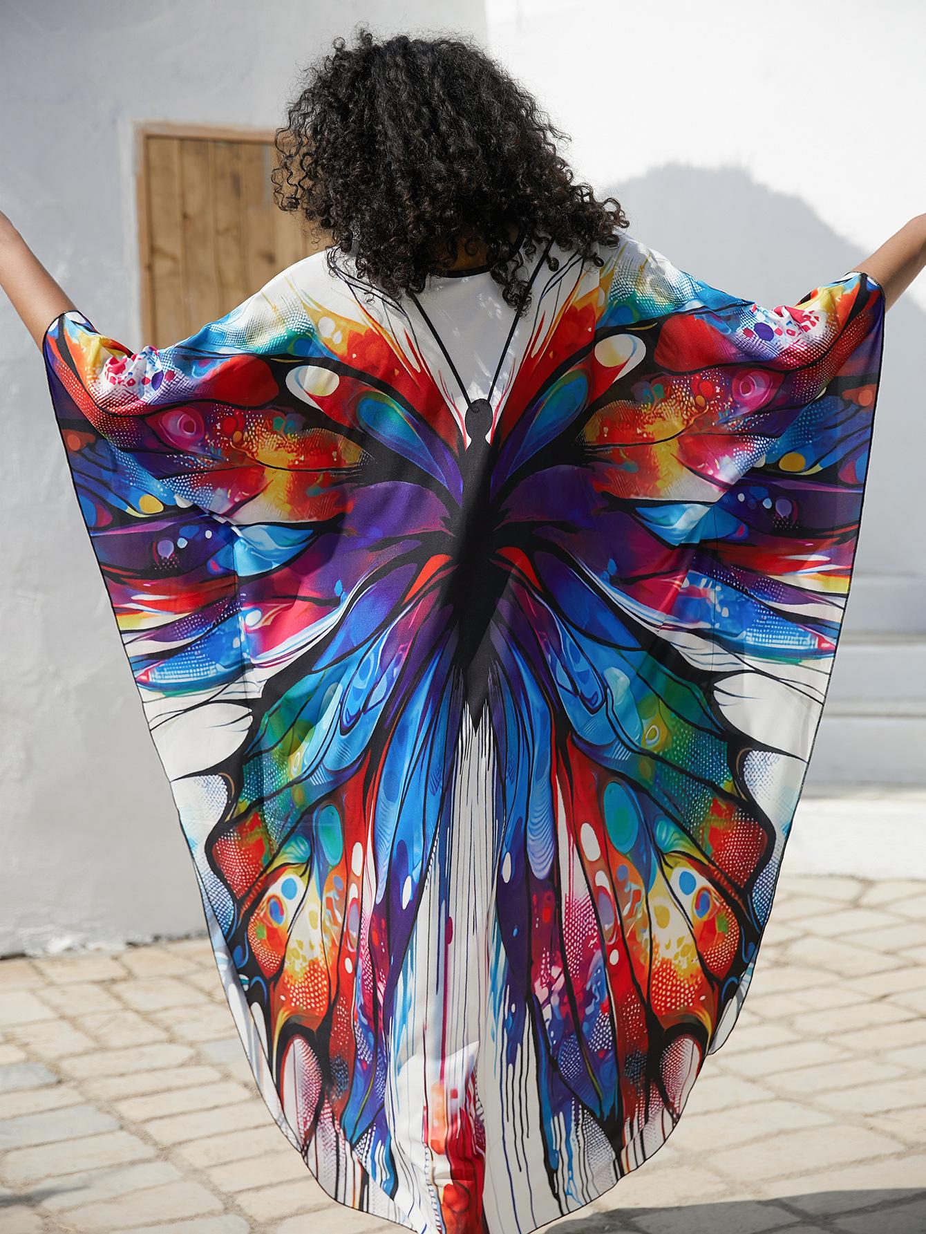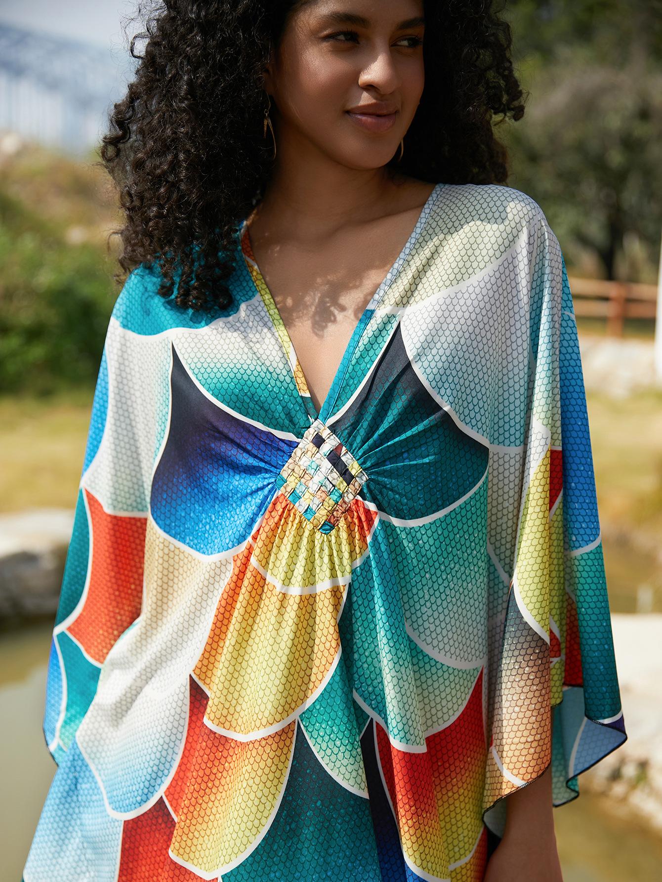Posicionamiento Transfronterizo Europeo y Americano Estampado Vacacional Suelto Talla Grande Bata Vestido Cubre Bikini para Mujer