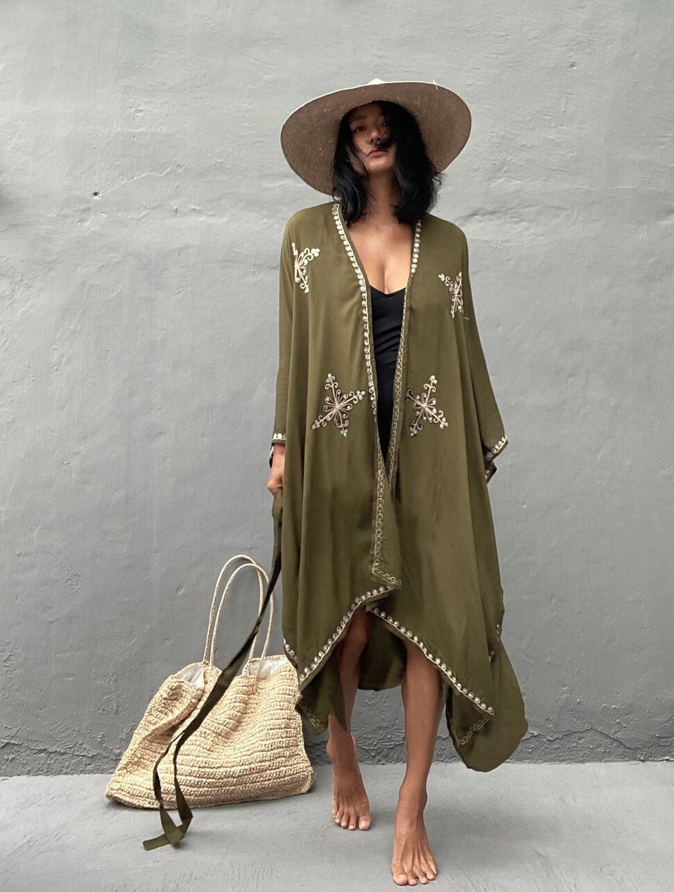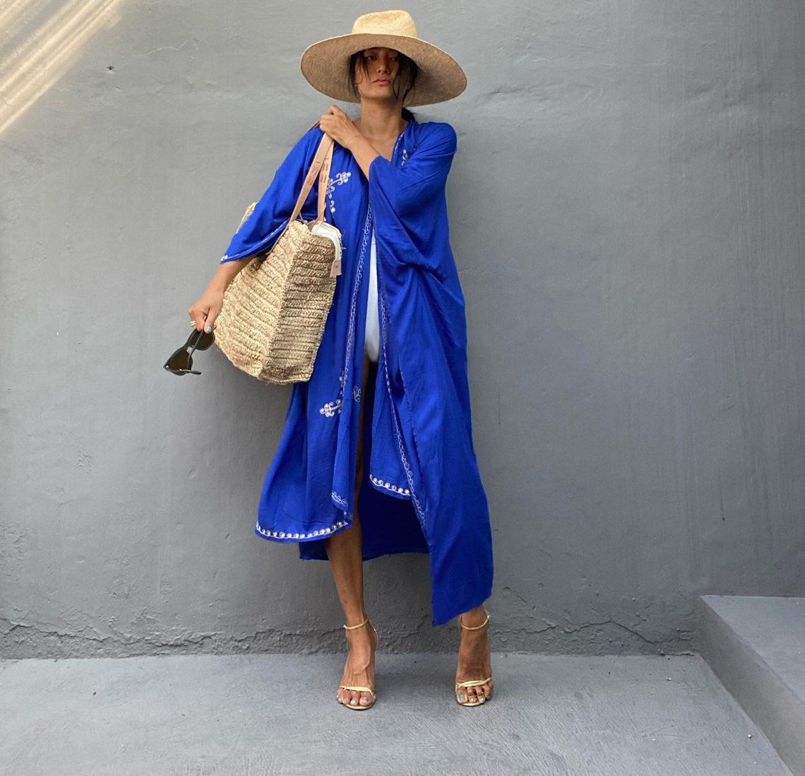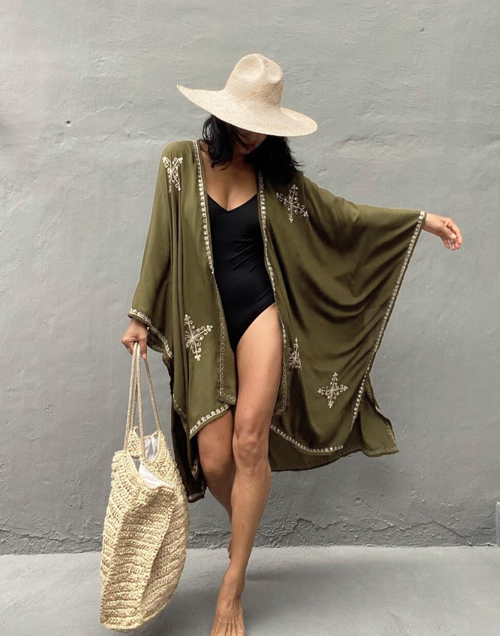 Nuevo cárdigan largo holgado con bordado de rayón europeo y americano, abrigo de playa con protección solar, blusa de bikini, traje de baño para mujer