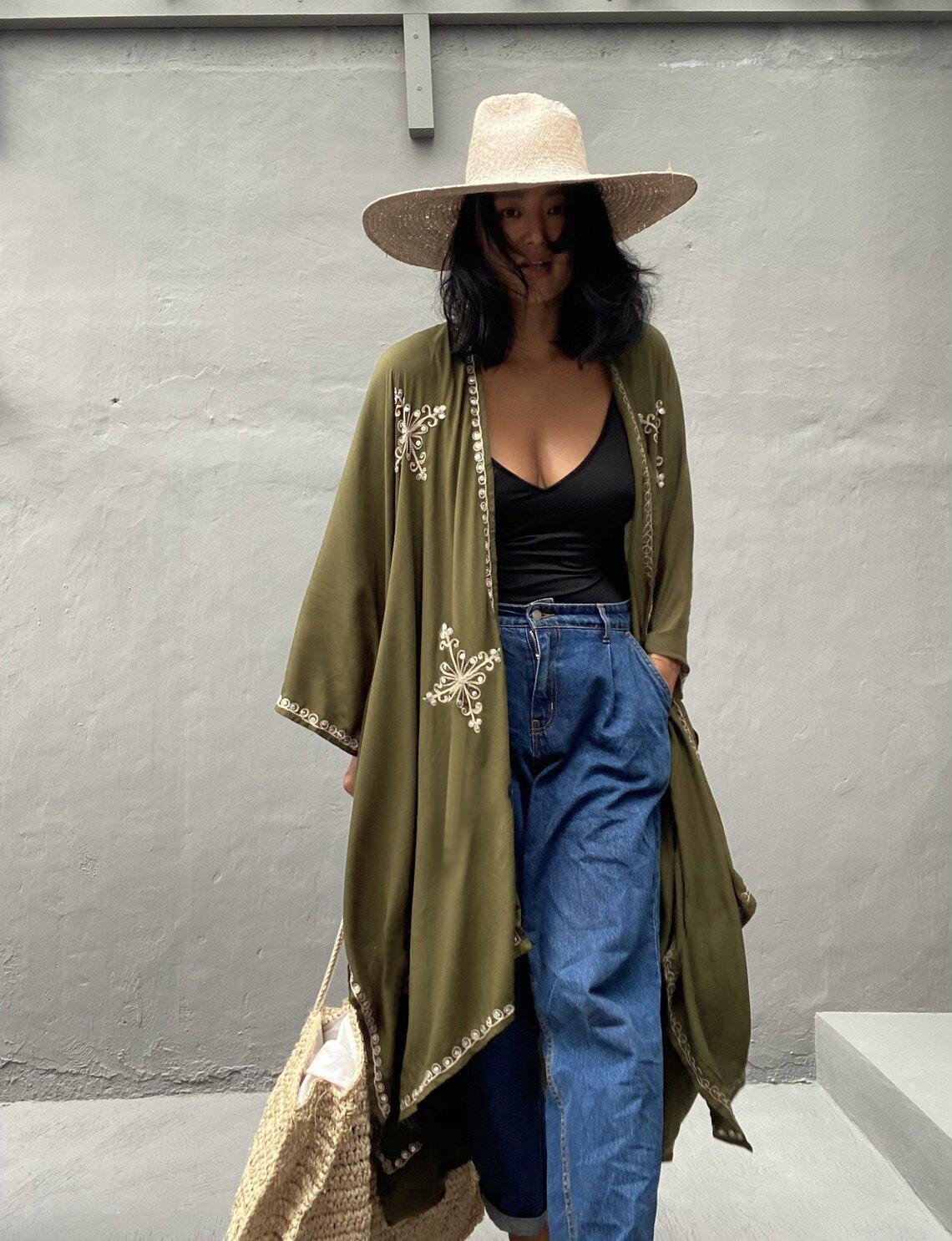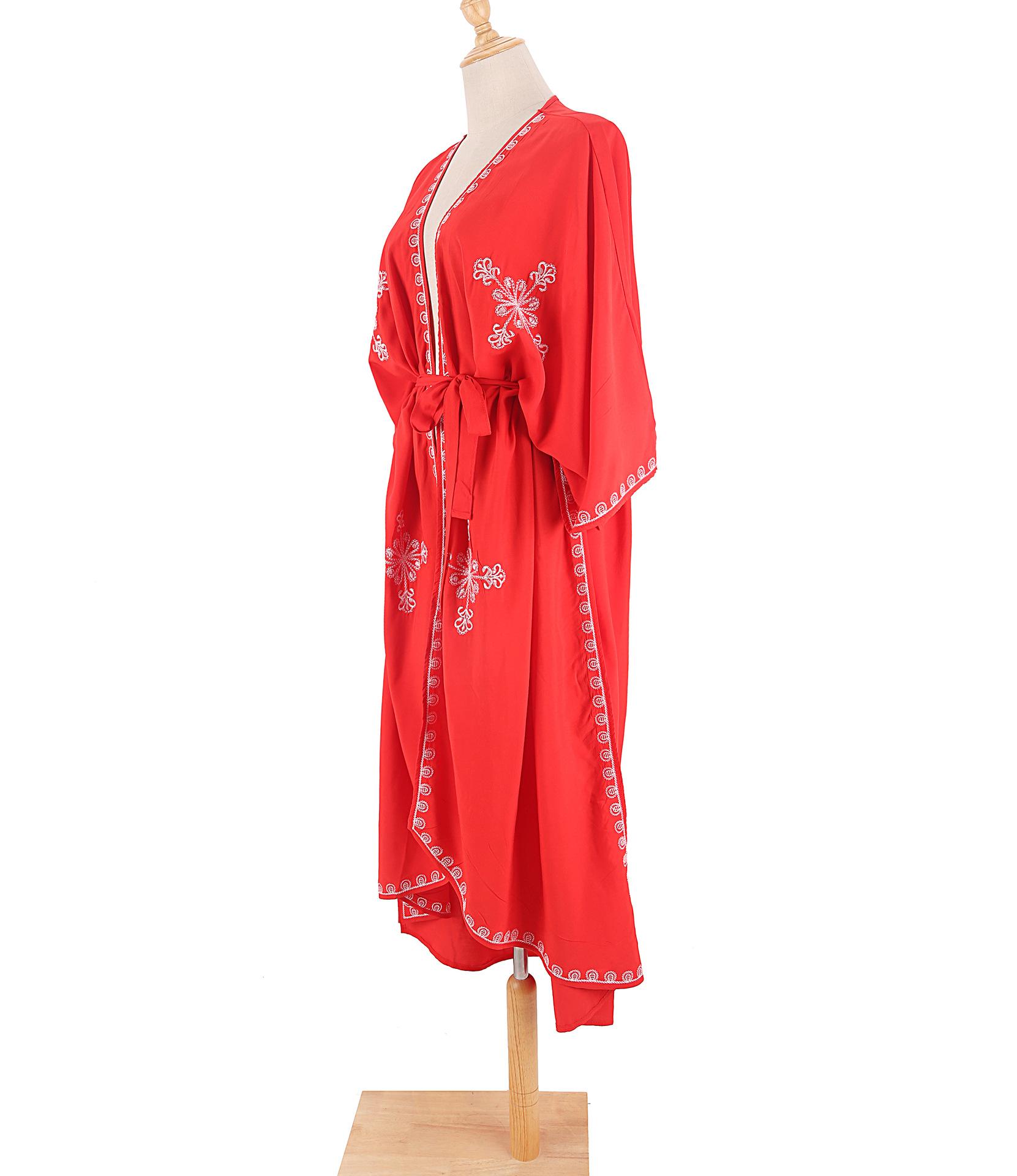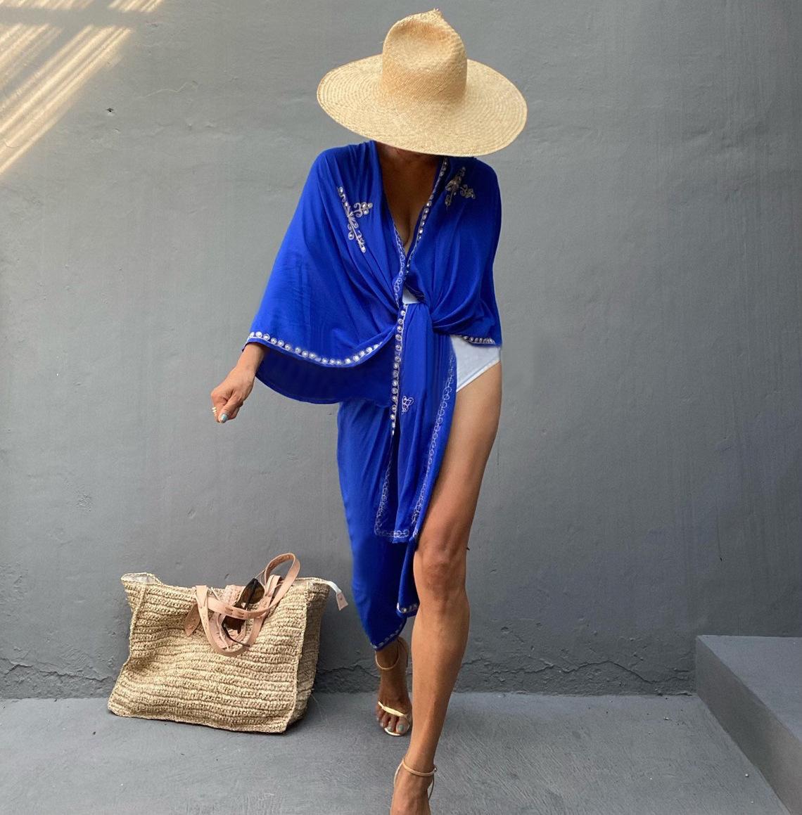 Nuevo cárdigan largo holgado con bordado de rayón europeo y americano, abrigo de playa con protección solar, blusa de bikini, traje de baño para mujer