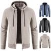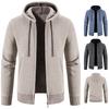 Chaqueta tipo cárdigan transfronteriza para hombre, otoño e invierno, con capucha, de punto, forro polar, gruesa, de color sólido, informal, para hombre