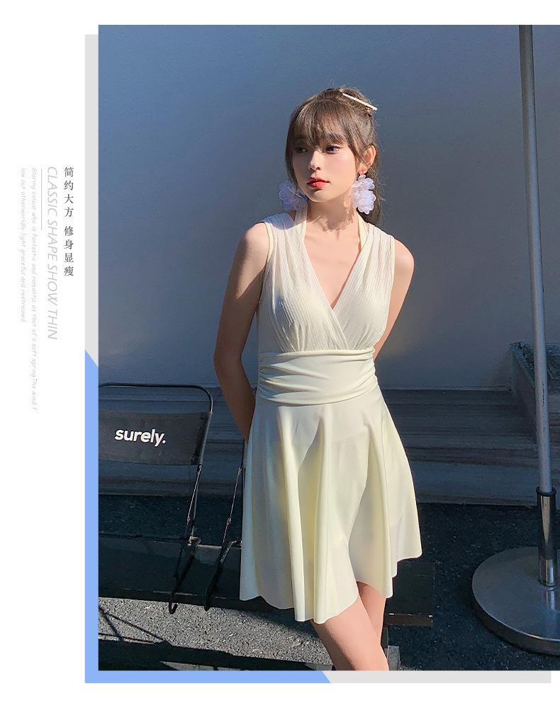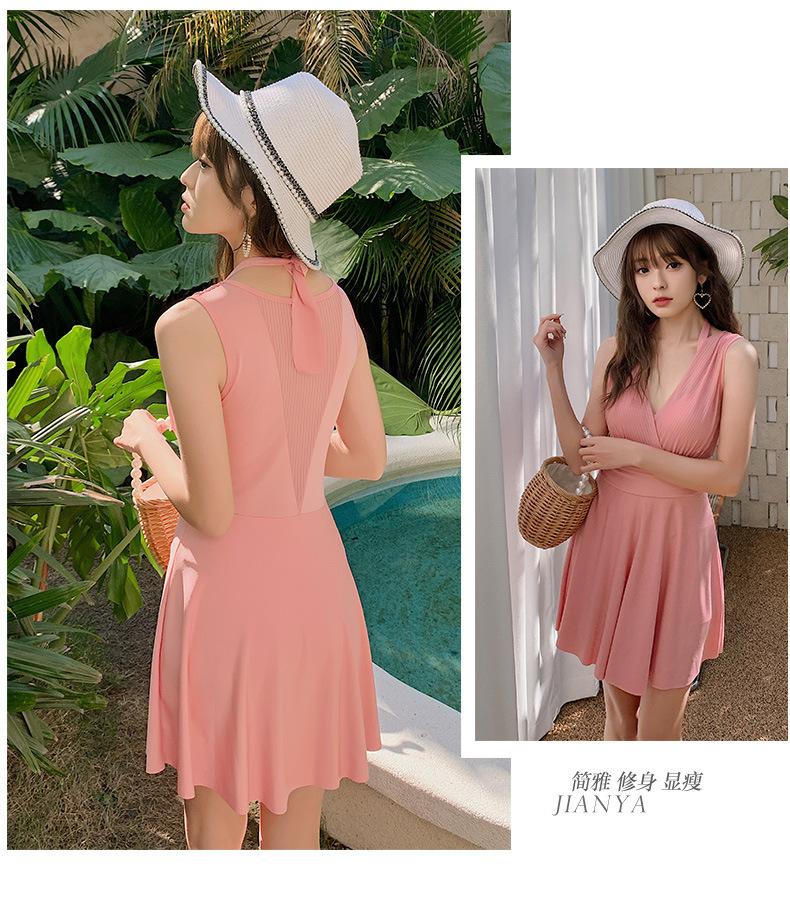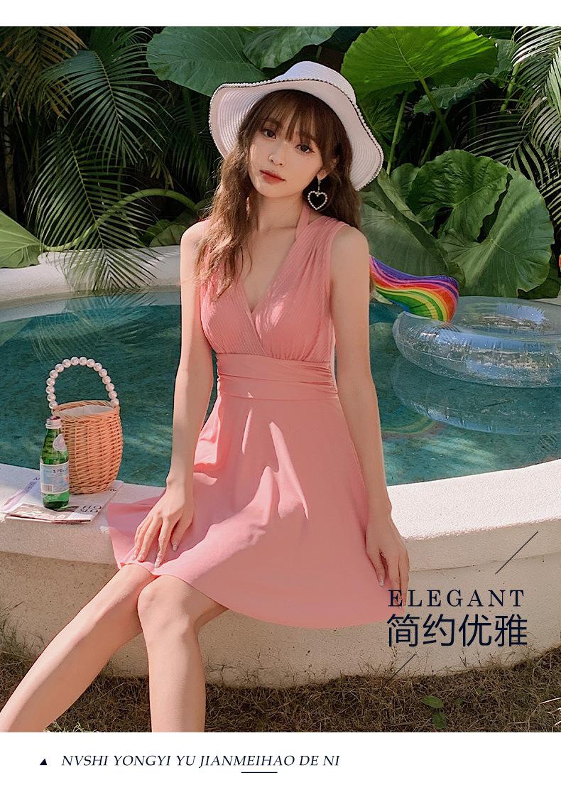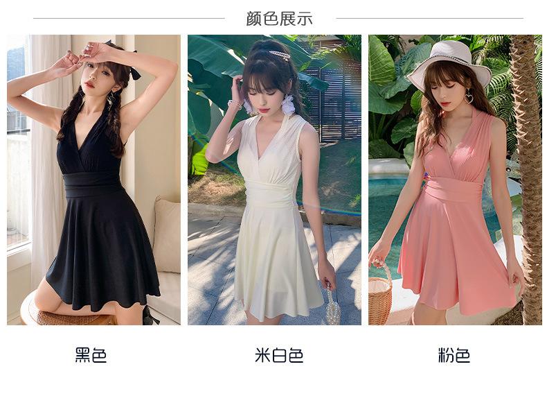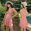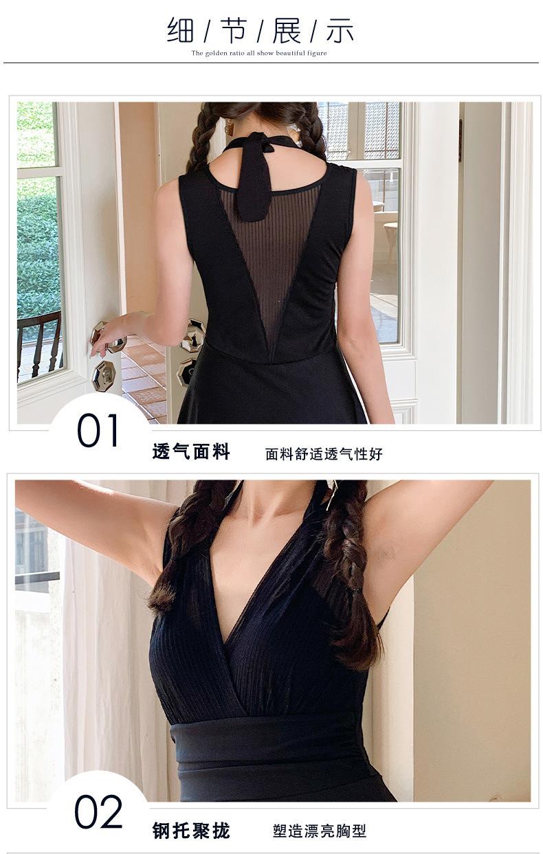 Traje de Baño de Aguas Termales para Mujer Adelgazante Cubre Vientre Moda Nuevo Estilo Pecho Pequeño Varilla de Acero Recogido Conservador Bóxer Falda Traje de Baño