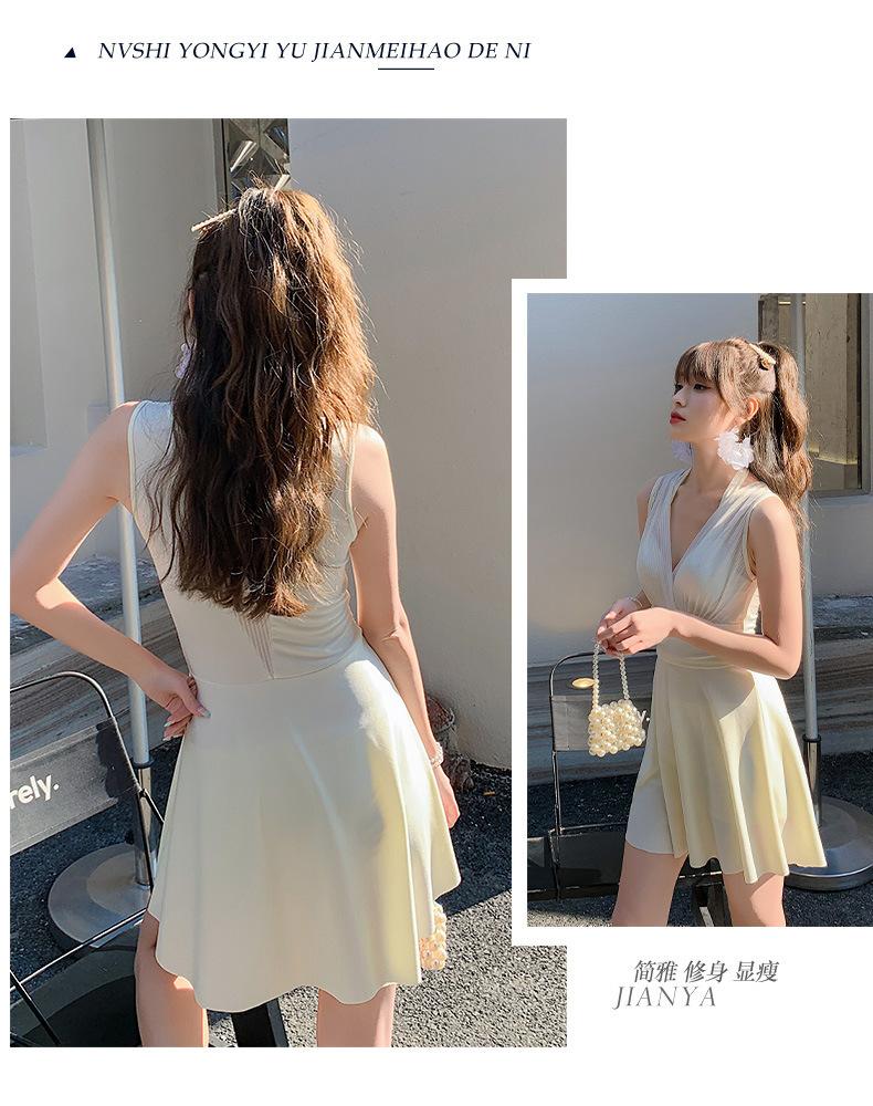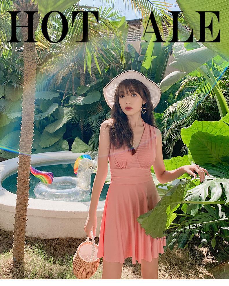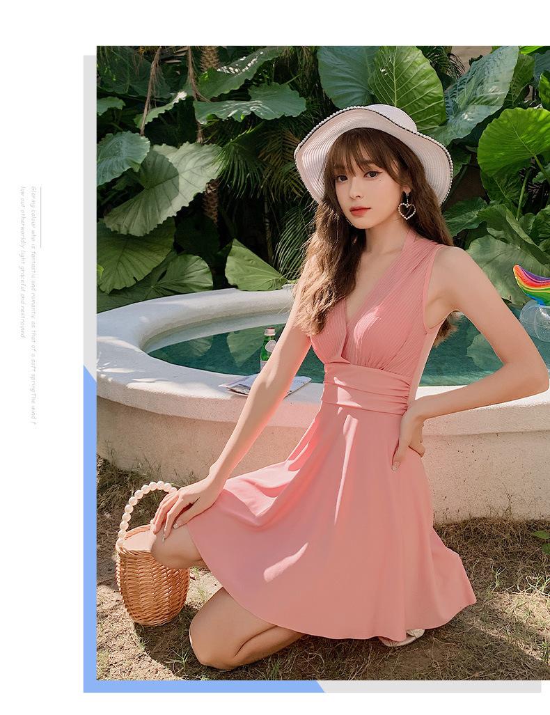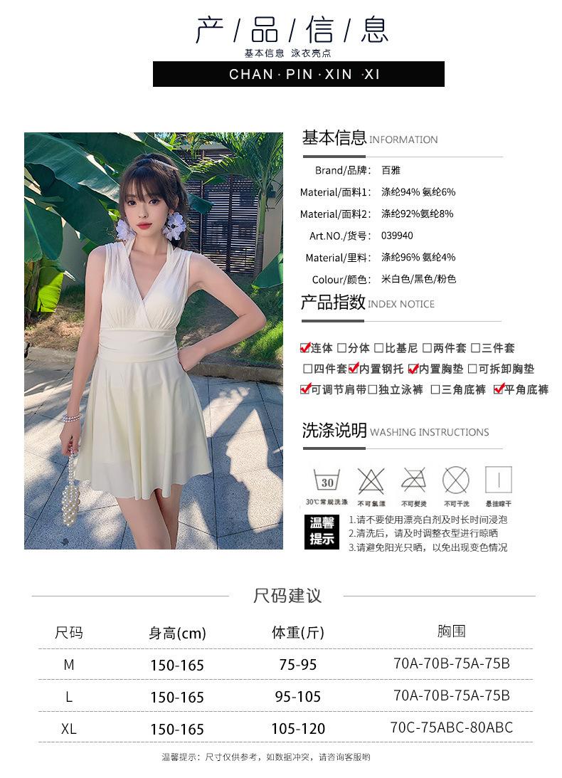 Traje de Baño de Aguas Termales para Mujer Adelgazante Cubre Vientre Moda Nuevo Estilo Pecho Pequeño Varilla de Acero Recogido Conservador Bóxer Falda Traje de Baño