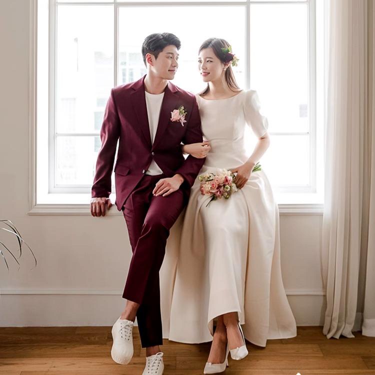 Vestido de Novia Nuevo Satén Ligero 2025 Estilo Coreano Tirantes Delgados Boda Novia Falda Larga hasta el Suelo Vestido Casual para Salir Velo