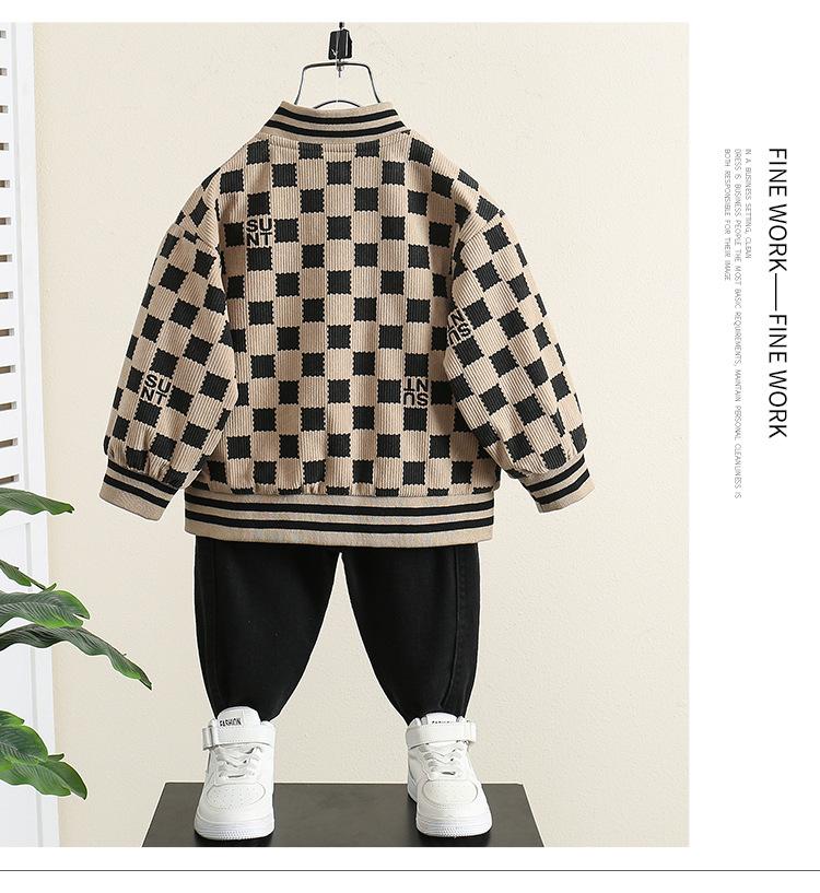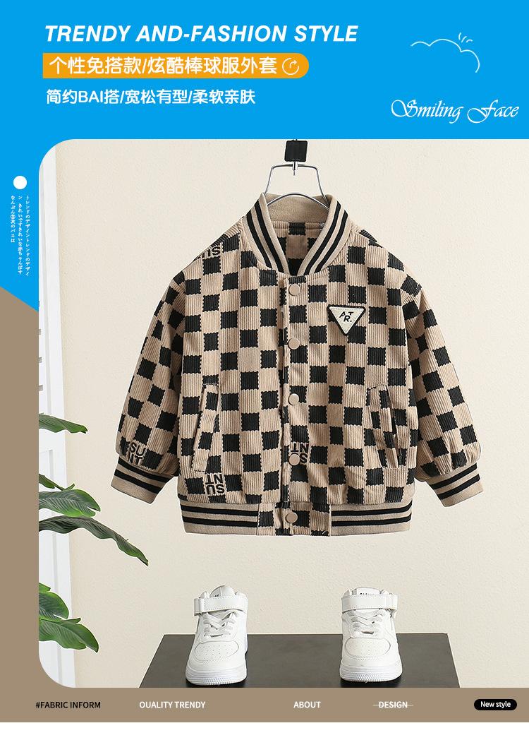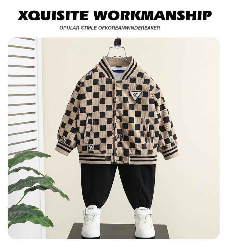 Chaqueta de Cuadros Nueva para Niño 2024 Primavera y Otoño Estilo Occidental Bebé Chaqueta Coreana Ropa de Béisbol Infantil de Moda Otoñal