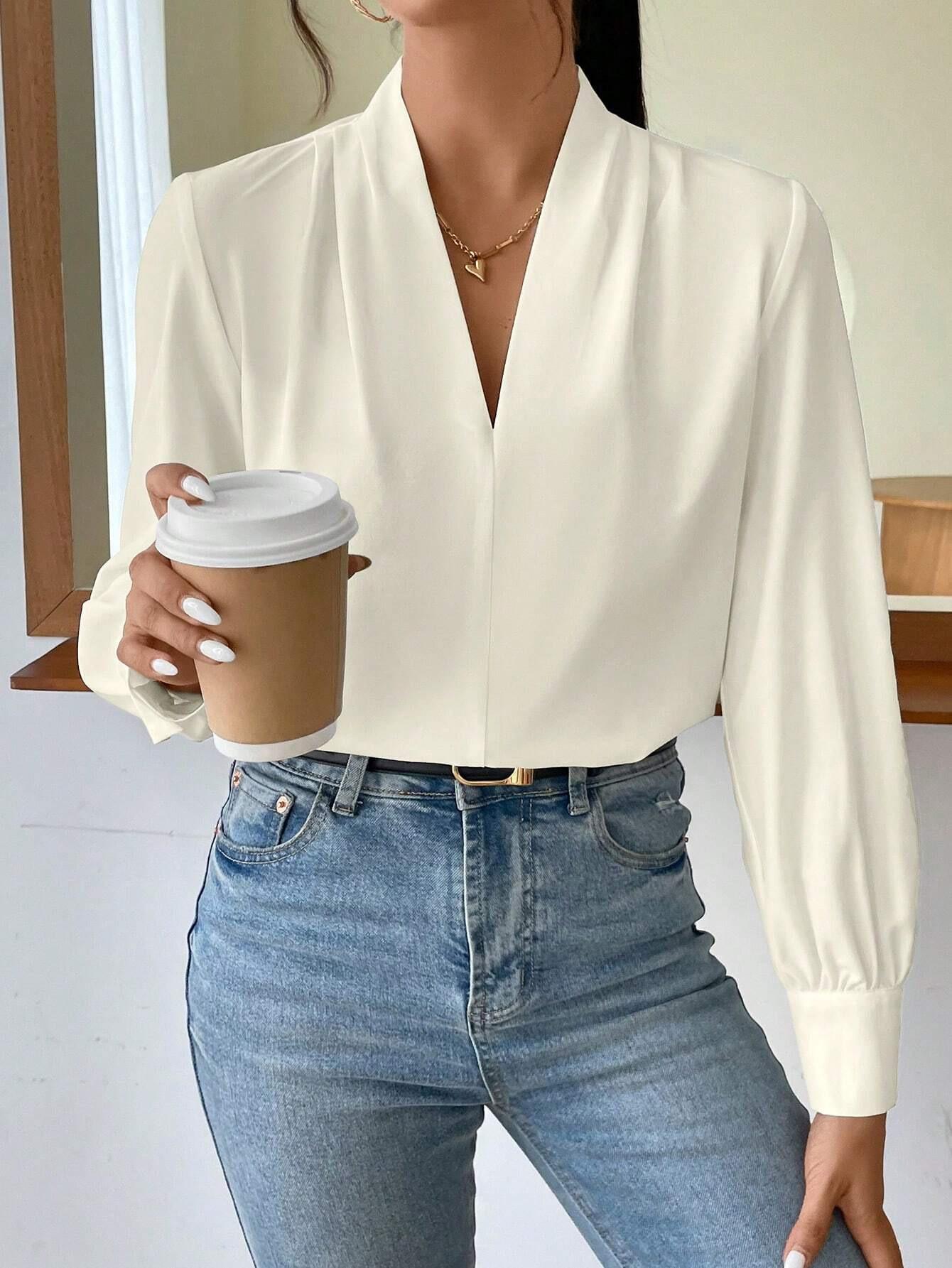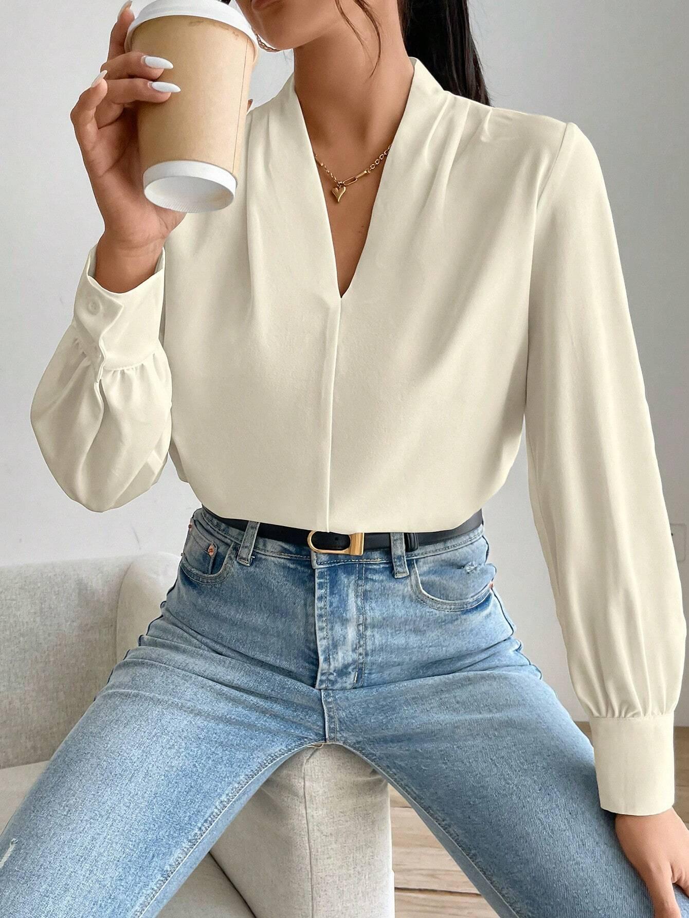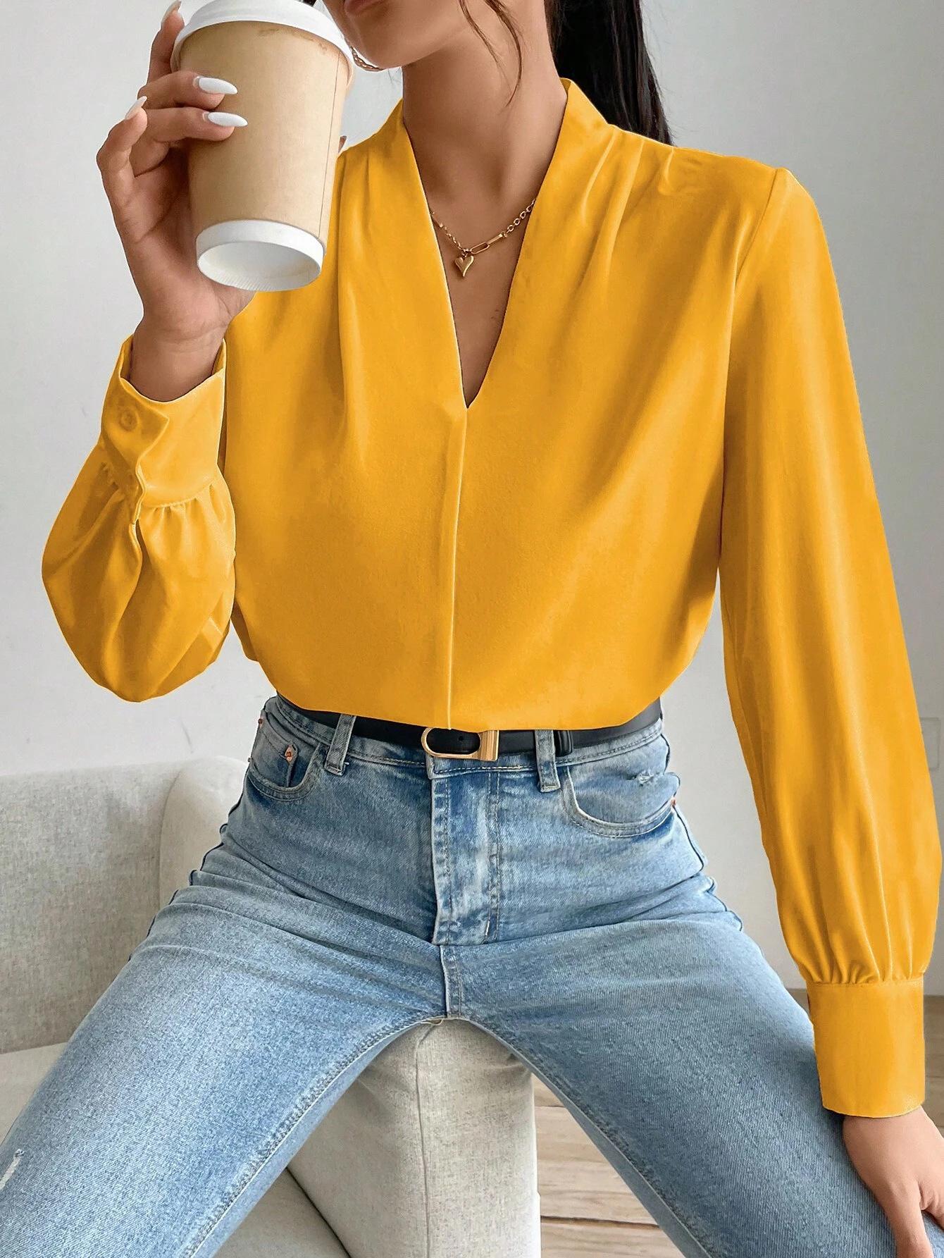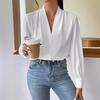 Camisa de manga larga con cuello en V, color liso, estilo europeo y americano, primavera, otoño e invierno de 2025