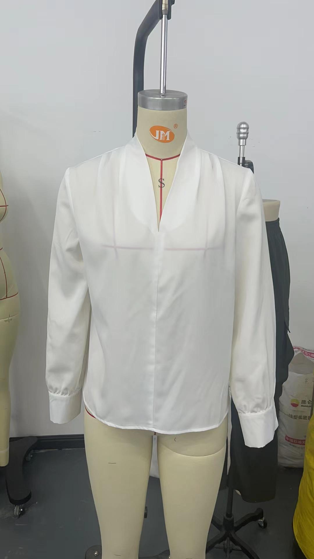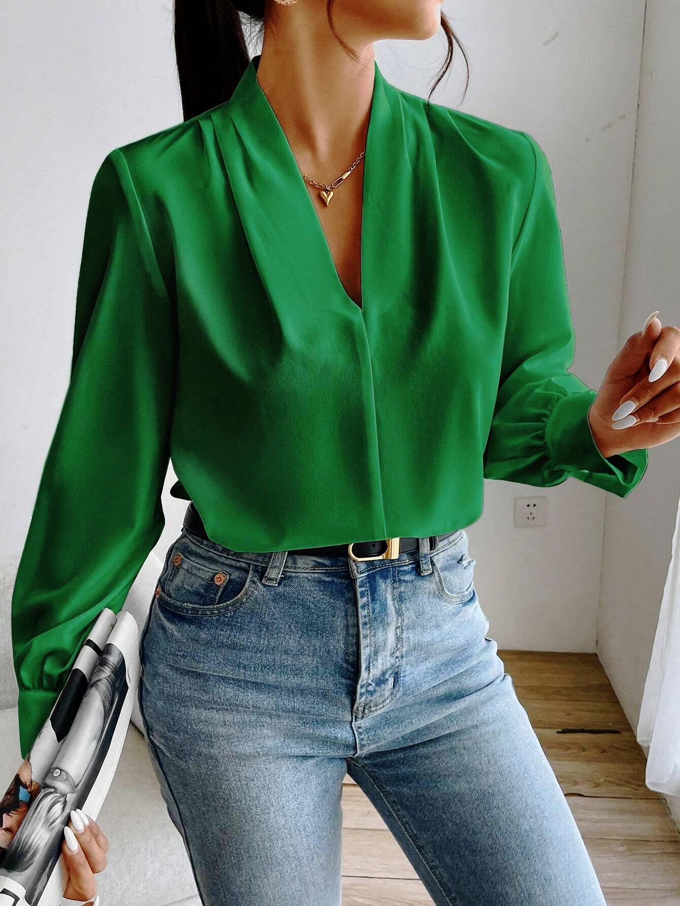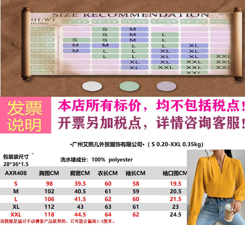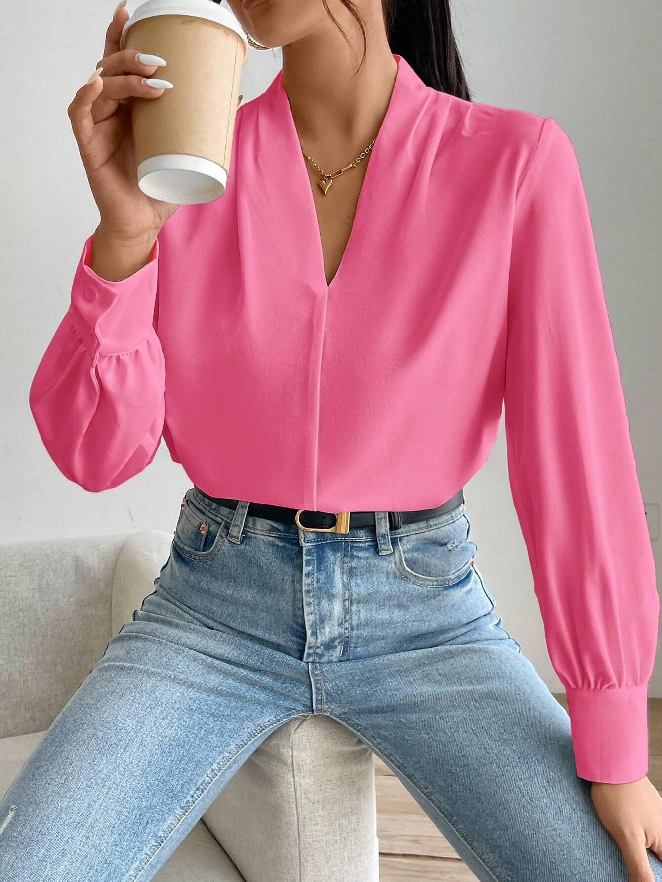Camisa de manga larga con cuello en V, color liso, estilo europeo y americano, primavera, otoño e invierno de 2025