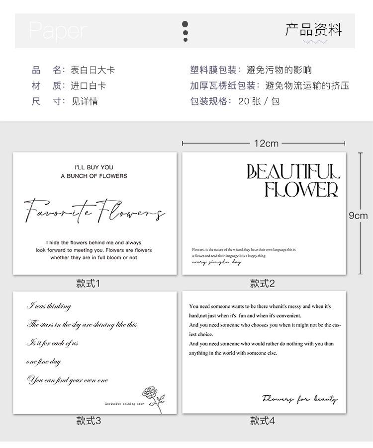 Ins Flor Simple Arte Floral Palabras de Amor Tarjeta Florería Horneado de Pastel Mensaje Universal Bendición Tarjeta de Felicitación Material de Embalaje