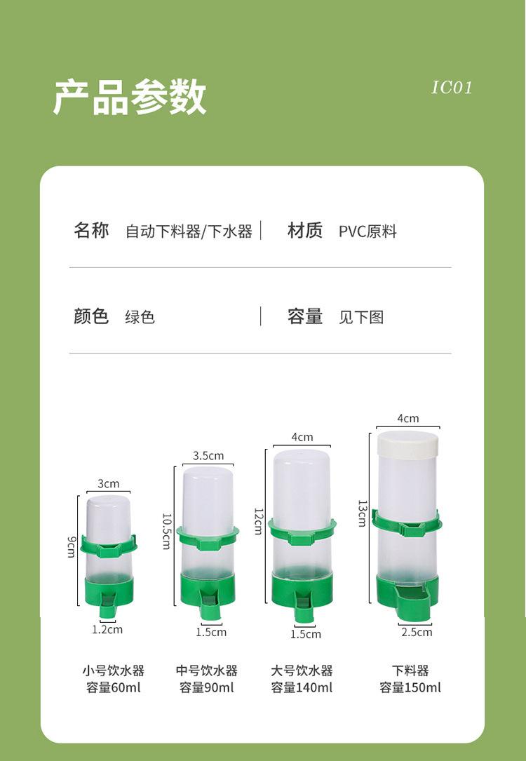 1 small drinking fountain, Medium drinking fountain 1 piece, Large drinking fountain 1, Dispenser 1, Feeder 1