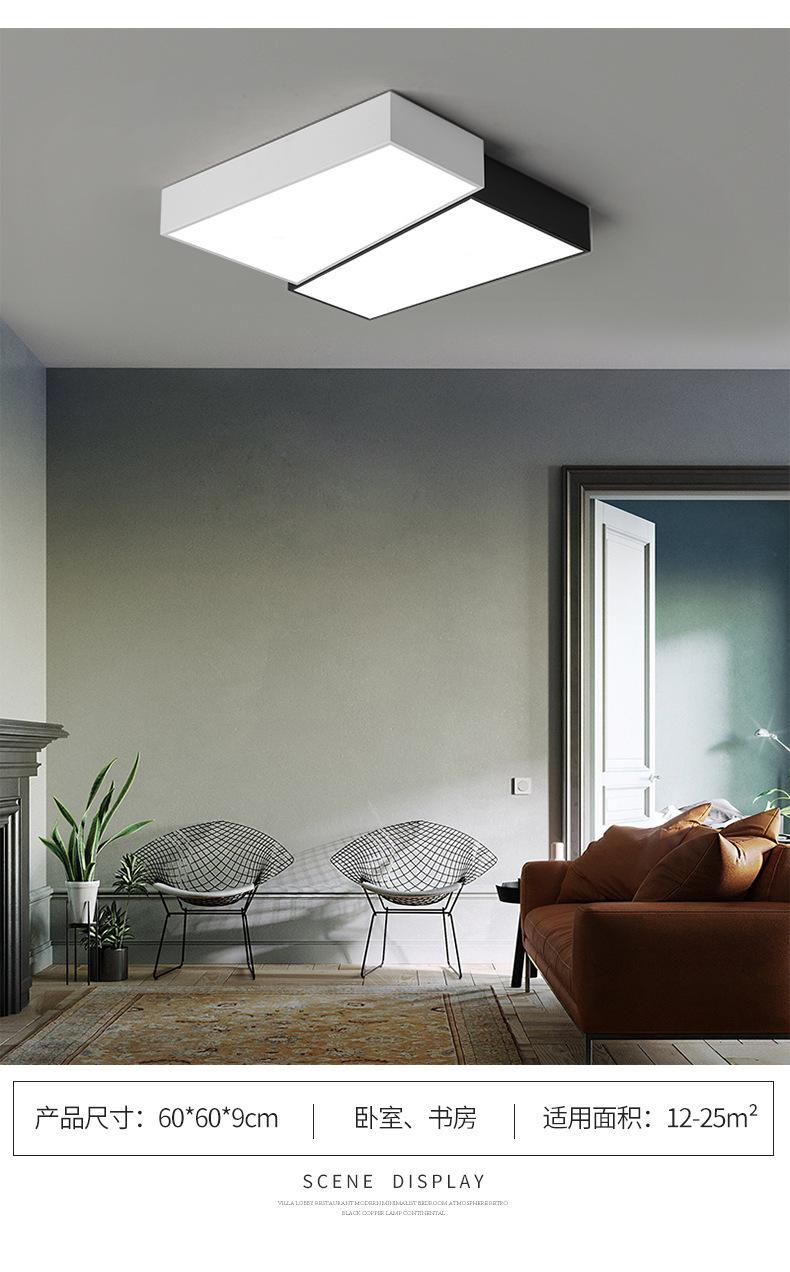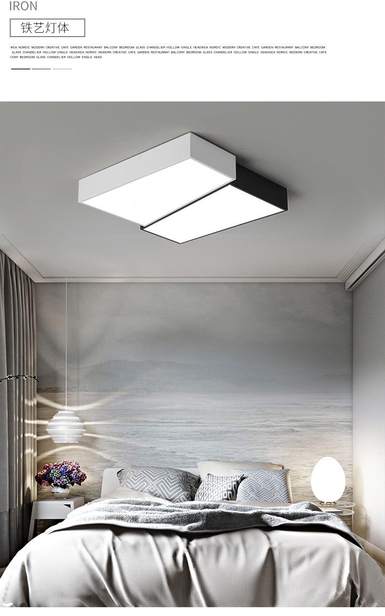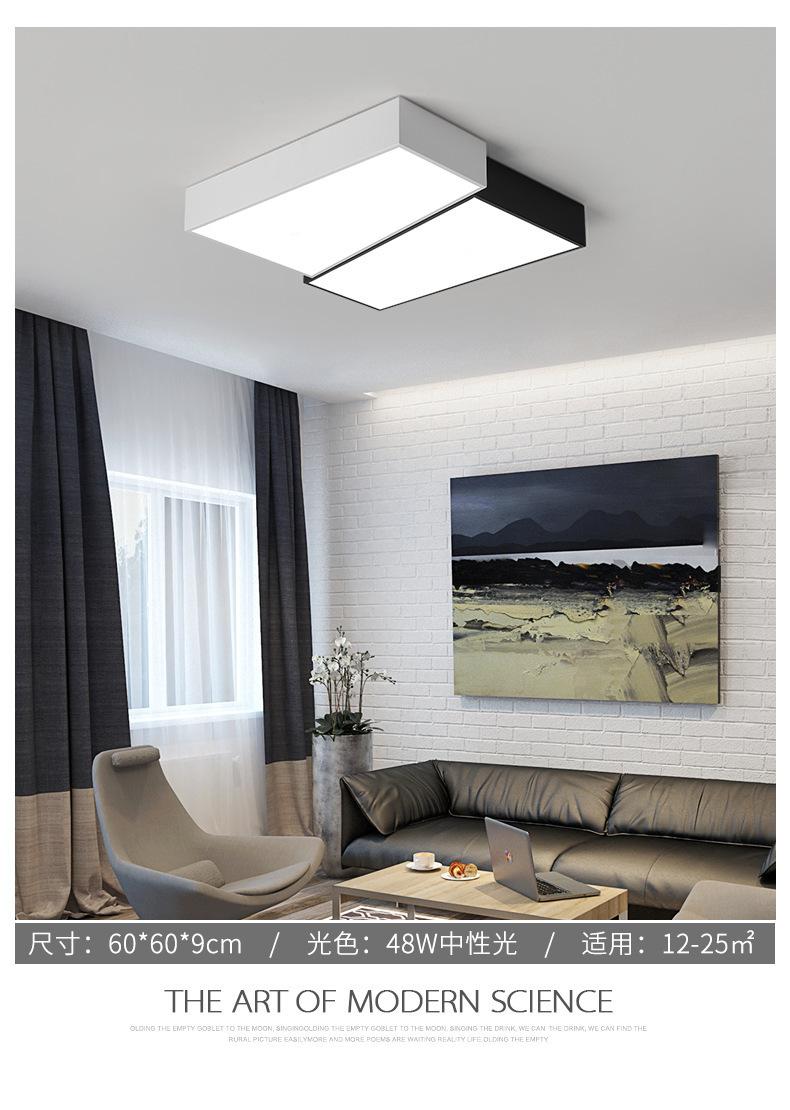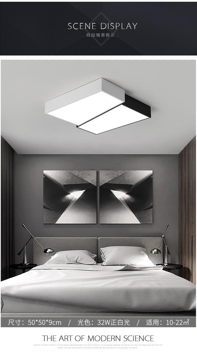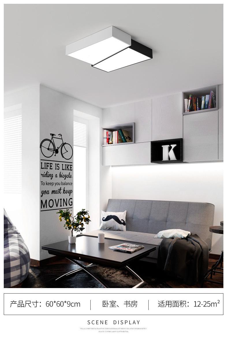 Lámpara de dormitorio, lámpara de techo LED, lámpara principal nórdica para sala de estar, lámpara de estudio cuadrada minimalista en blanco y negro moderna y sencilla para habitación.