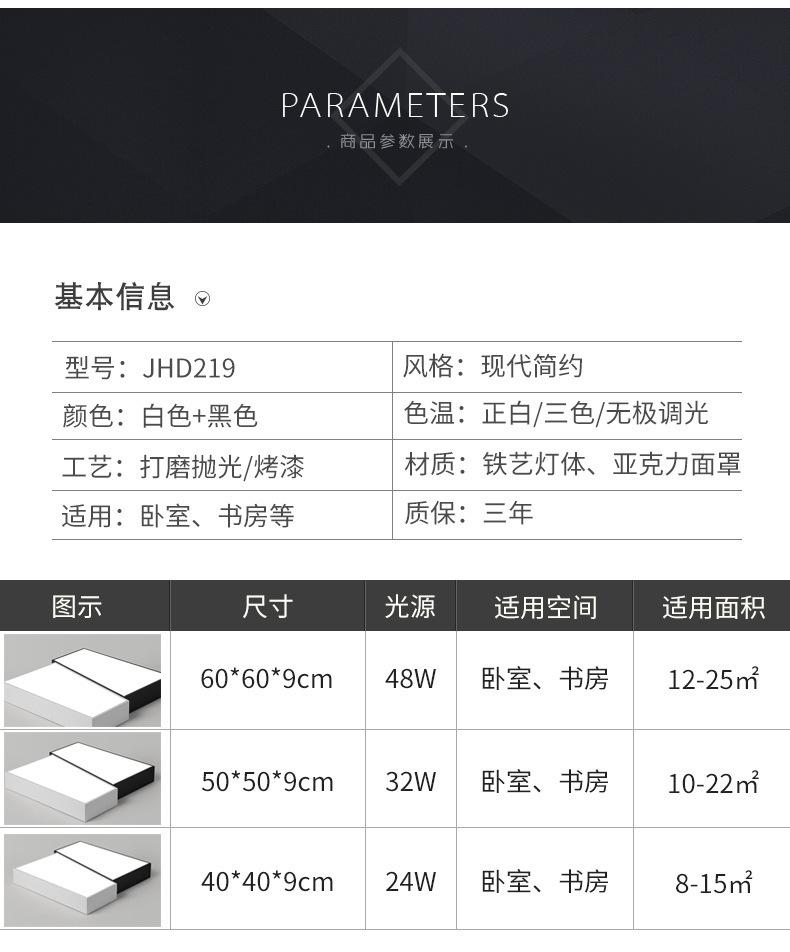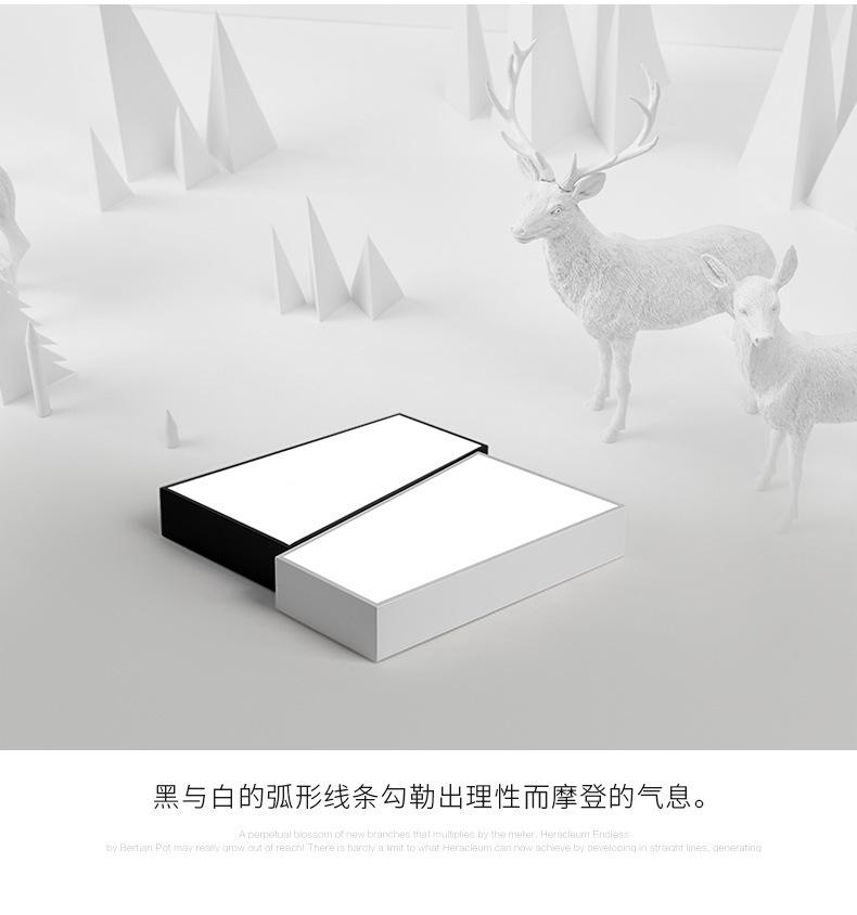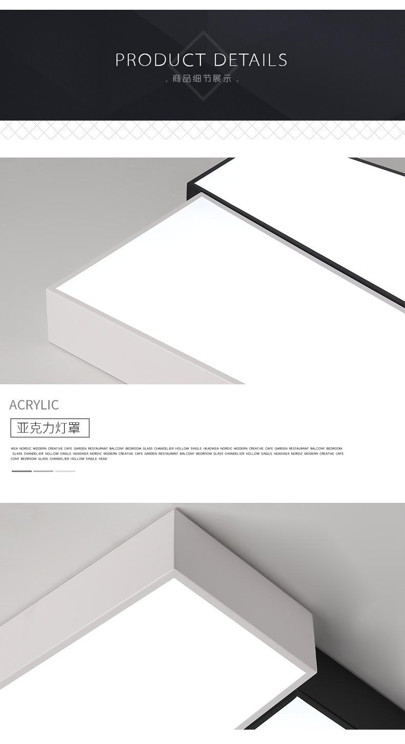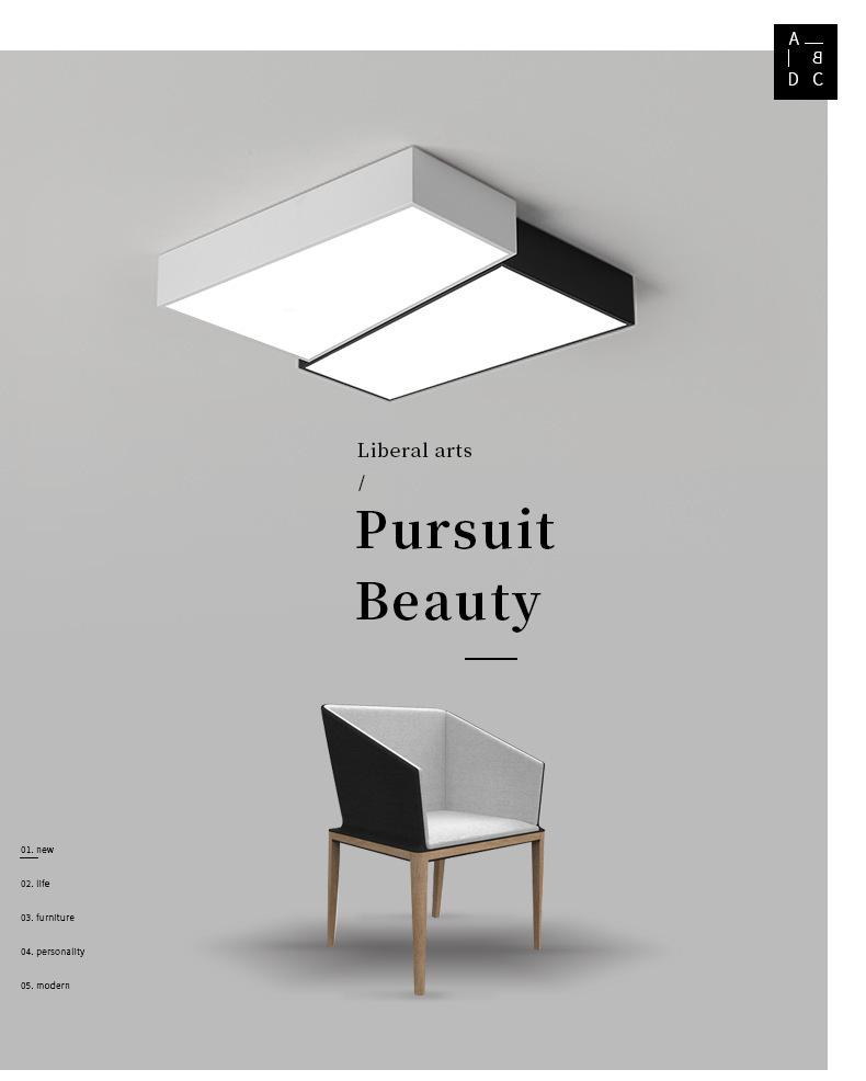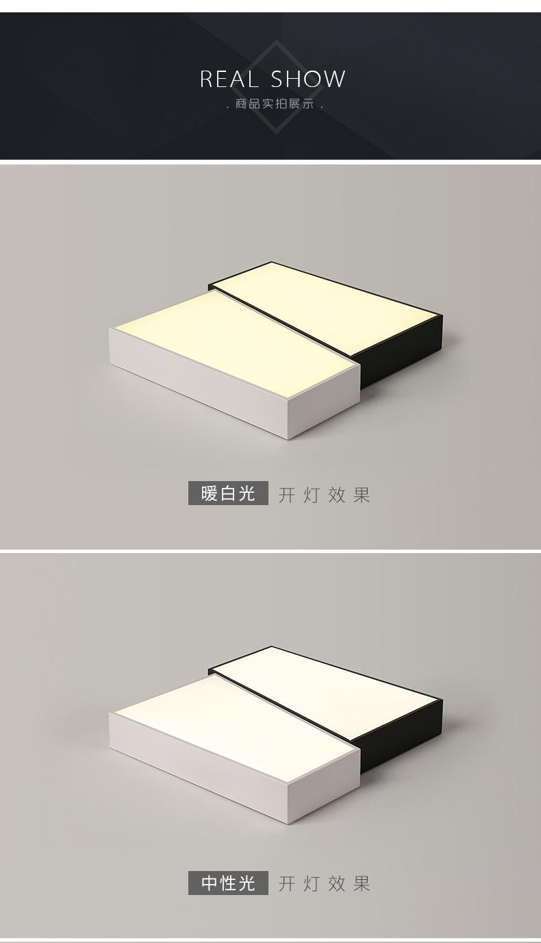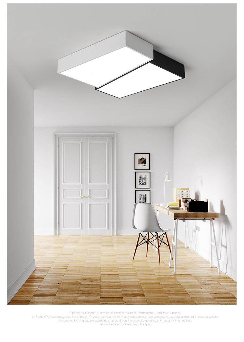 Lámpara de dormitorio, lámpara de techo LED, lámpara principal nórdica para sala de estar, lámpara de estudio cuadrada minimalista en blanco y negro moderna y sencilla para habitación.