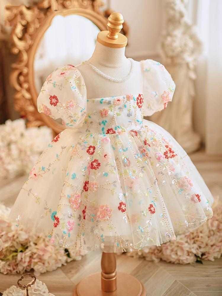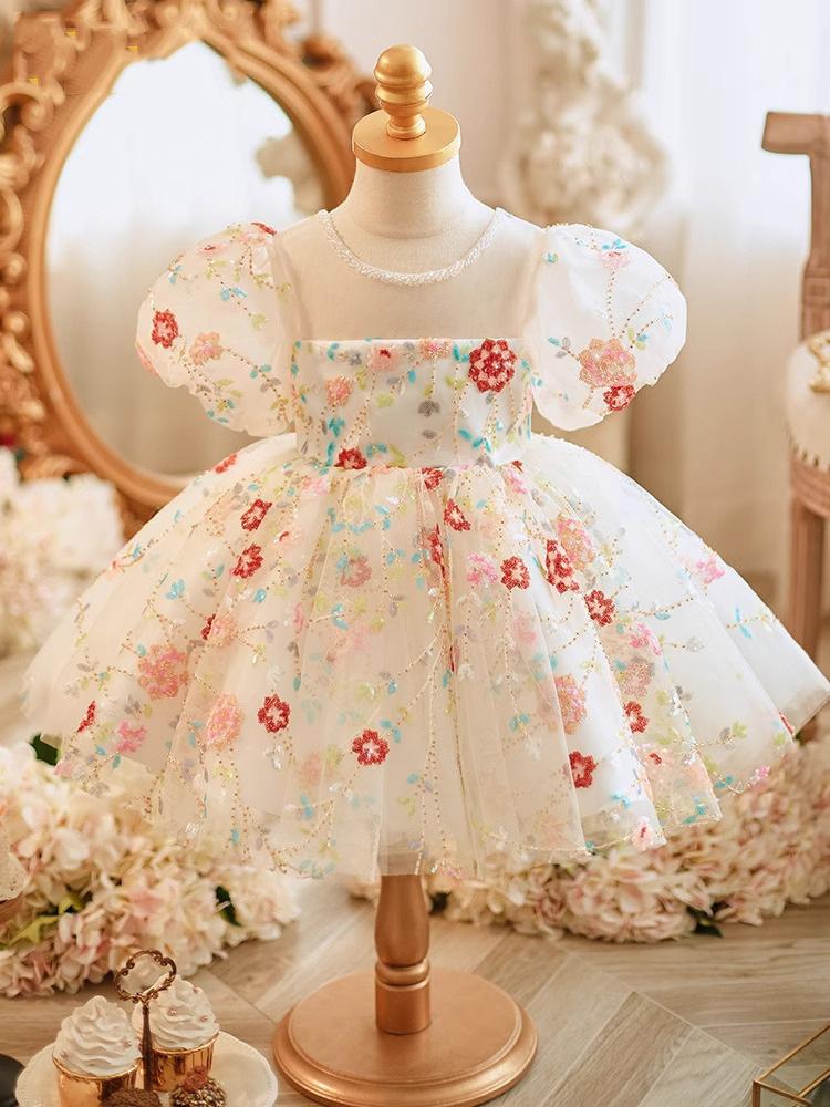 Vestido de niña de un año 2025 nuevo cumpleaños infantil vestido de princesa europea y americana al por mayor vestido de princesa