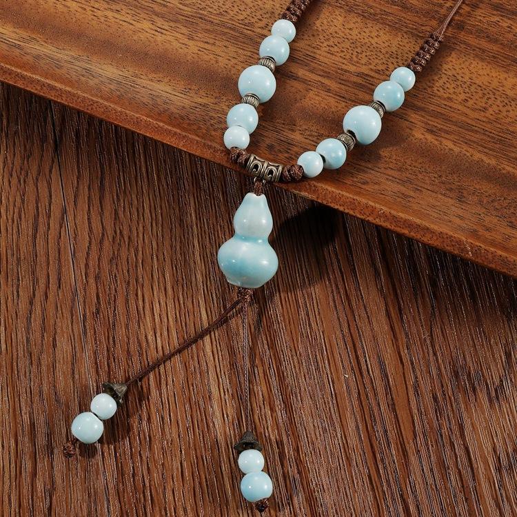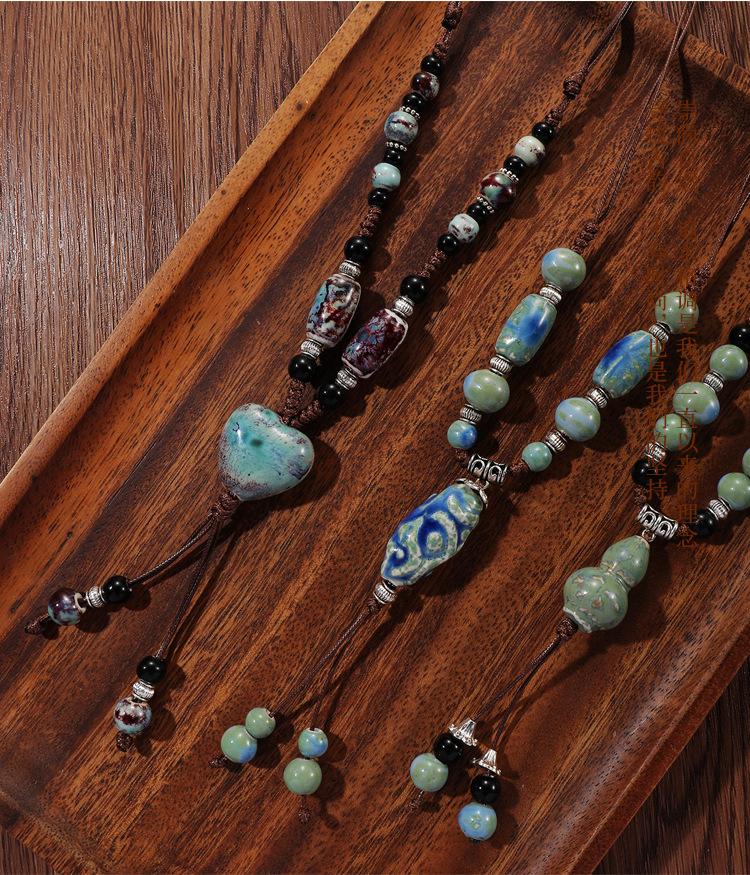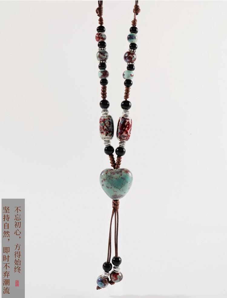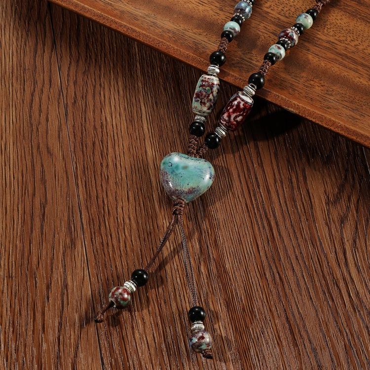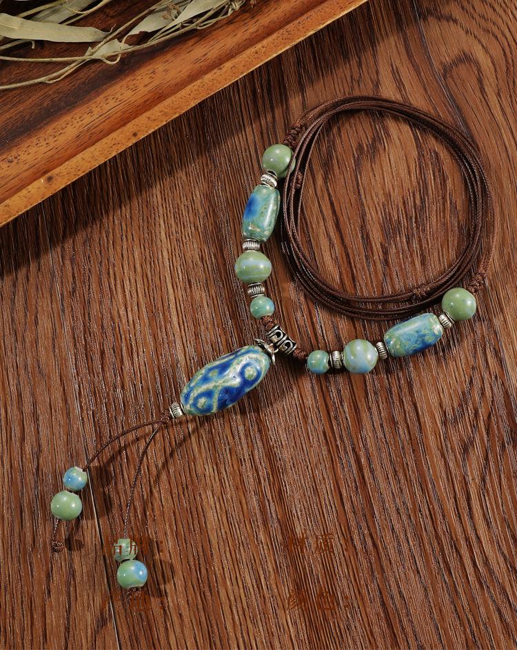 Joyería de cerámica de Jingdezhen, estilo étnico, cadena de suéter antigua, collar largo, joyería ajustable, nueva transmisión en vivo en línea