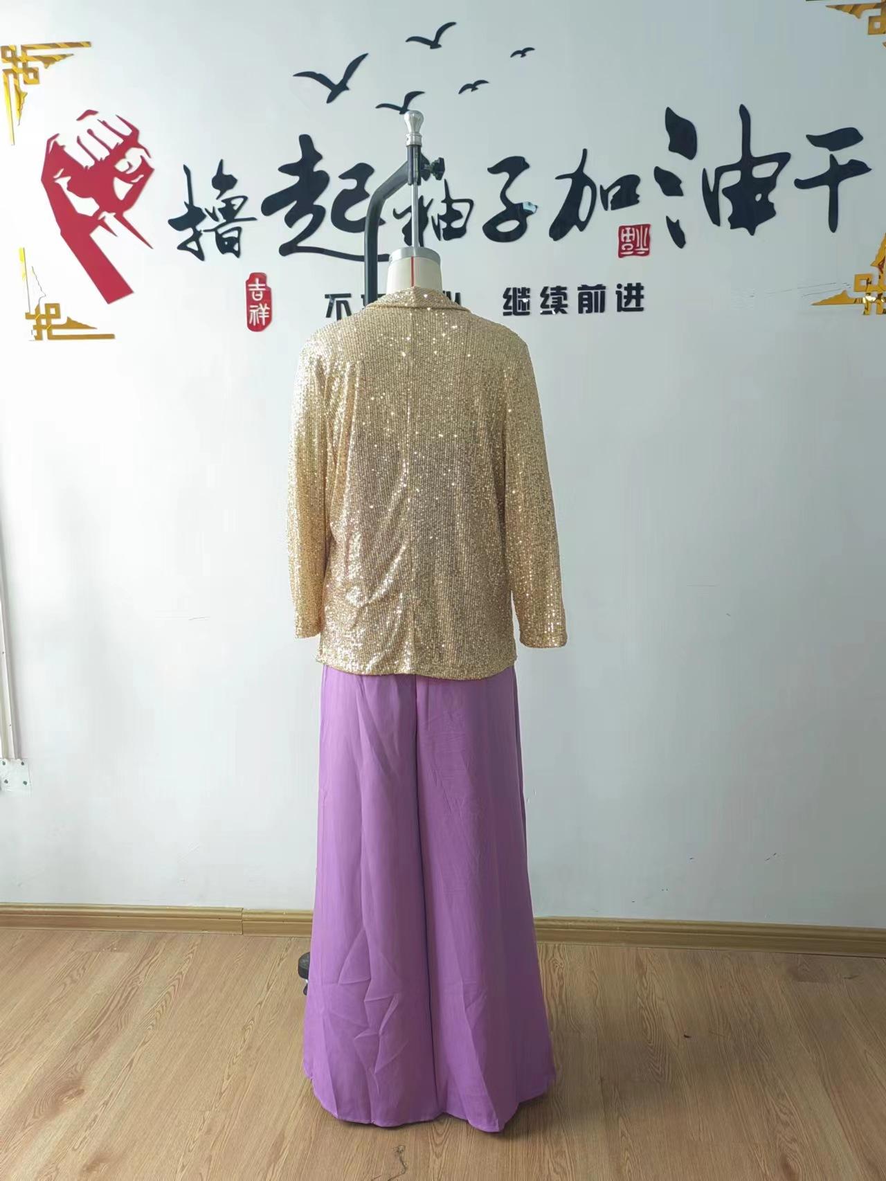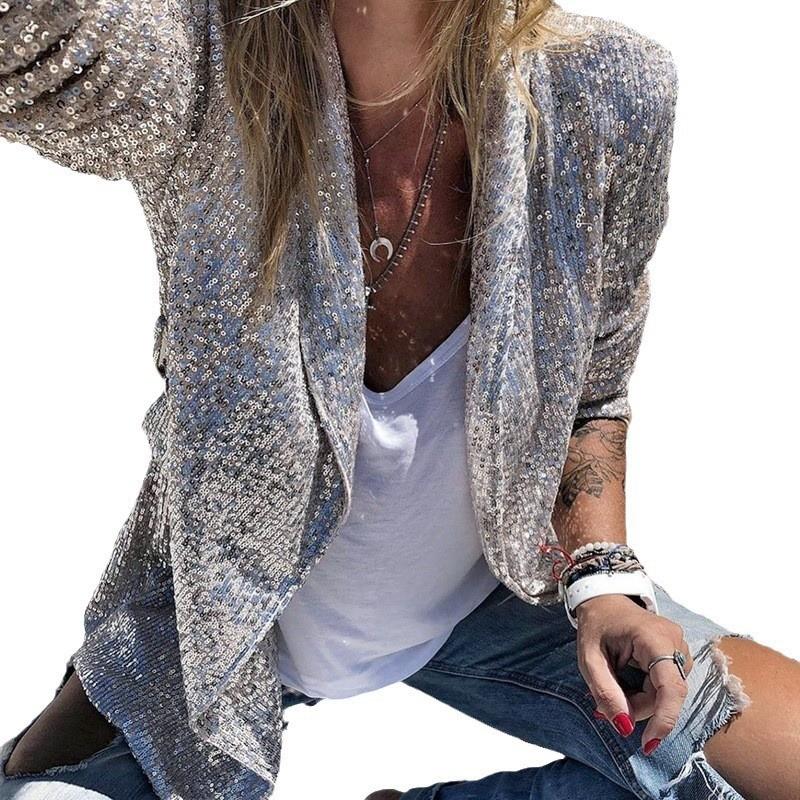 2025 Primavera Nuevo Europeo y Americano Amazon Lentejuelas Manga Larga Elegante Largo Medio Traje Pequeño Solapa Chaqueta Color Puro para Mujer