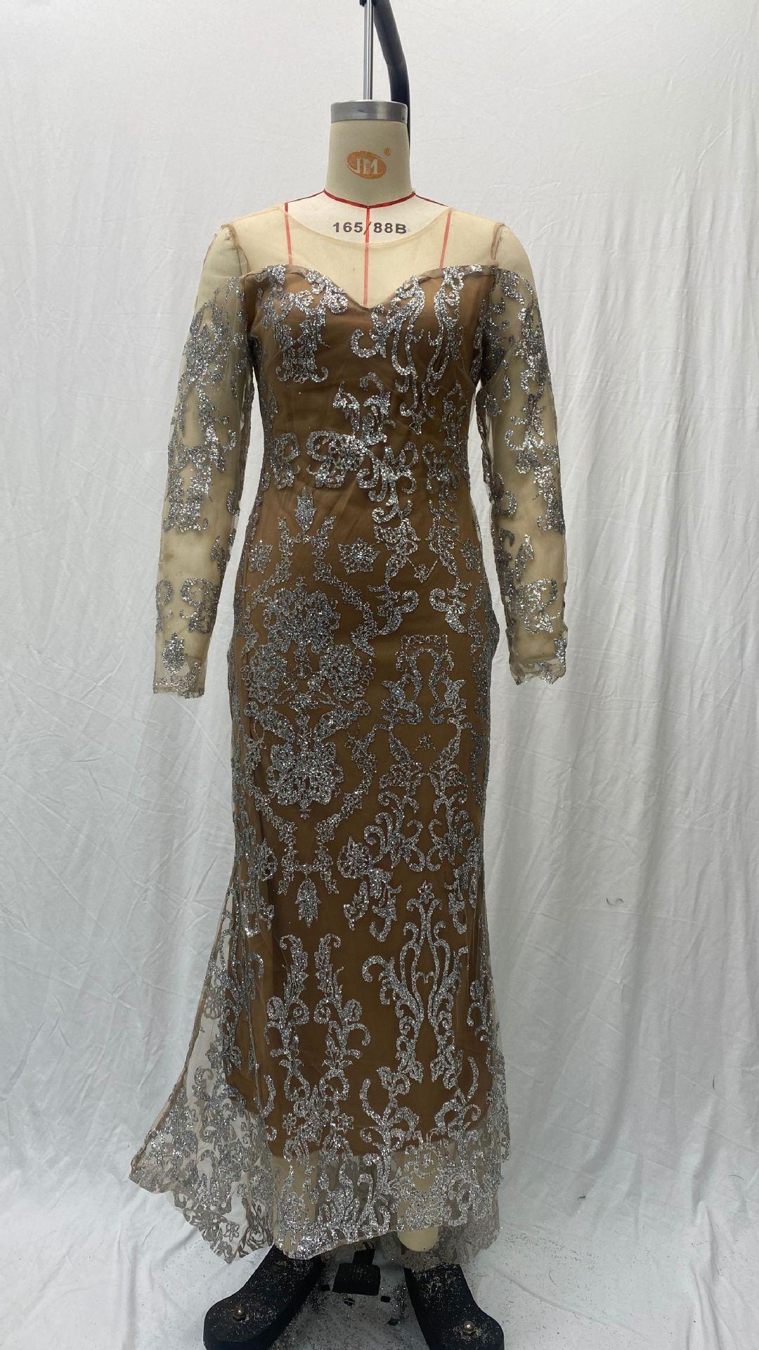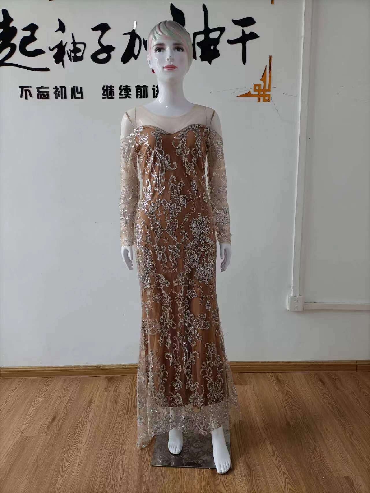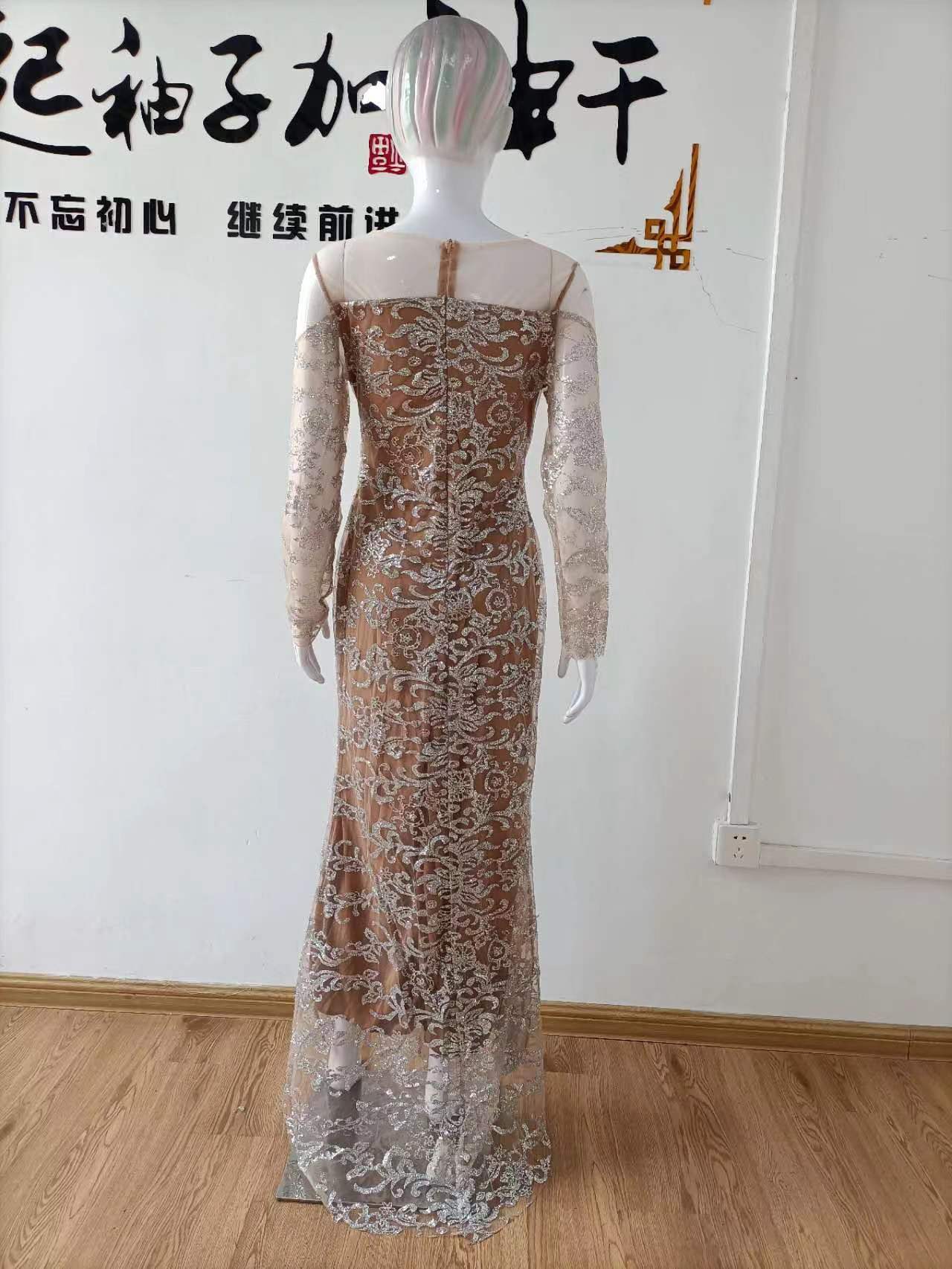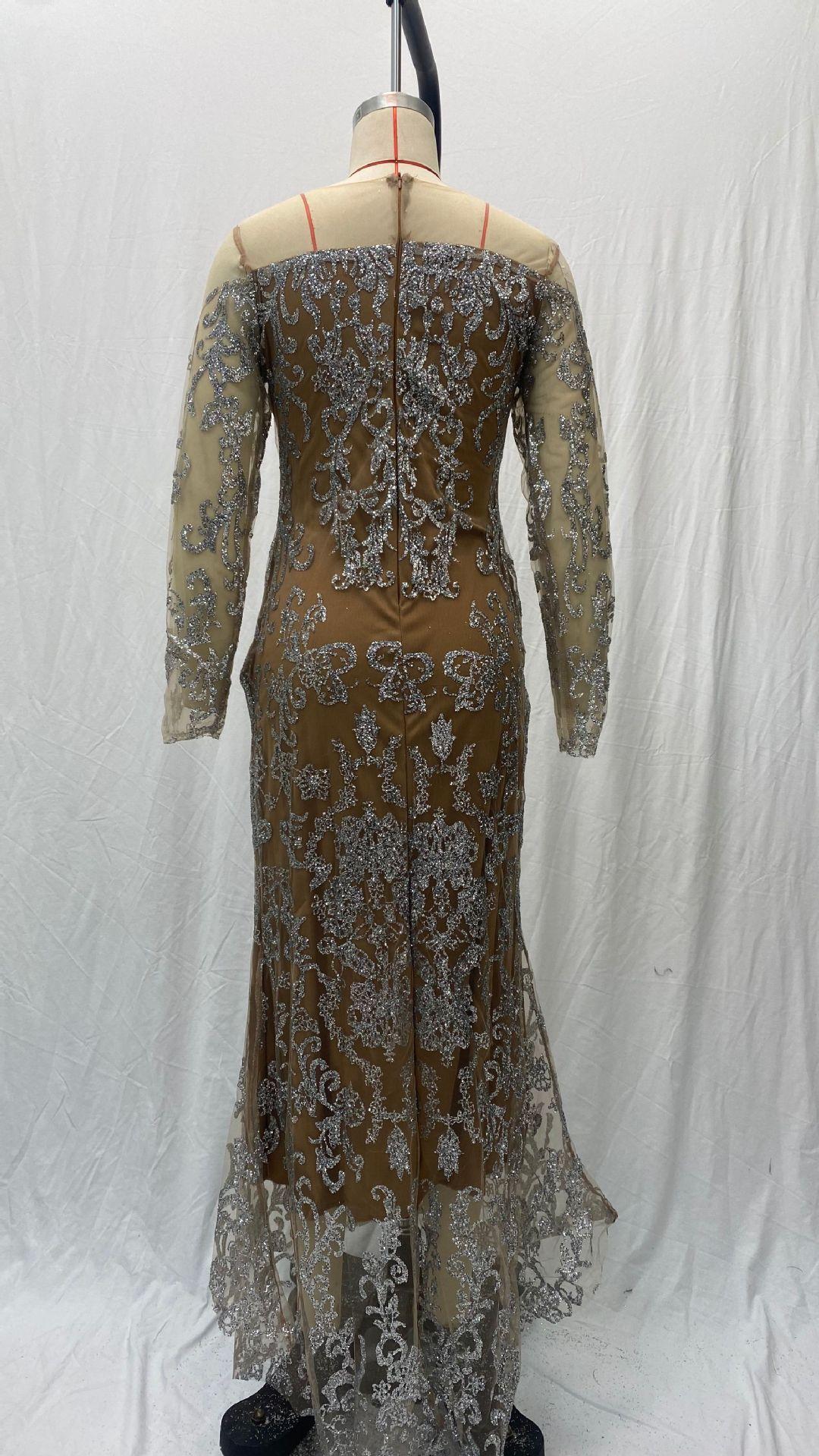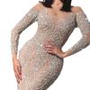 2025 Primavera Transfronteriza Nuevo Exportación Europea y Americana Ropa de Mujer Bronceado Manga Larga Ajustado Sexy Falda Larga Vestido de Noche de Banquete