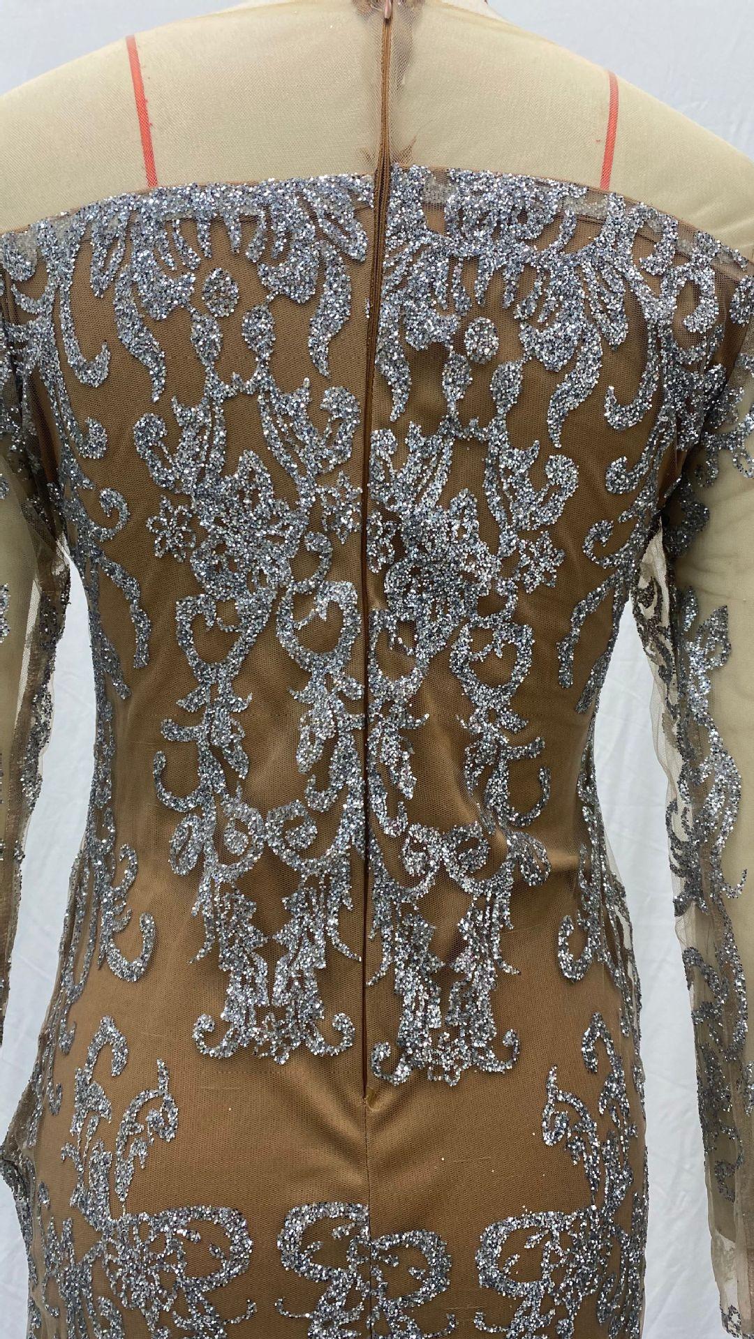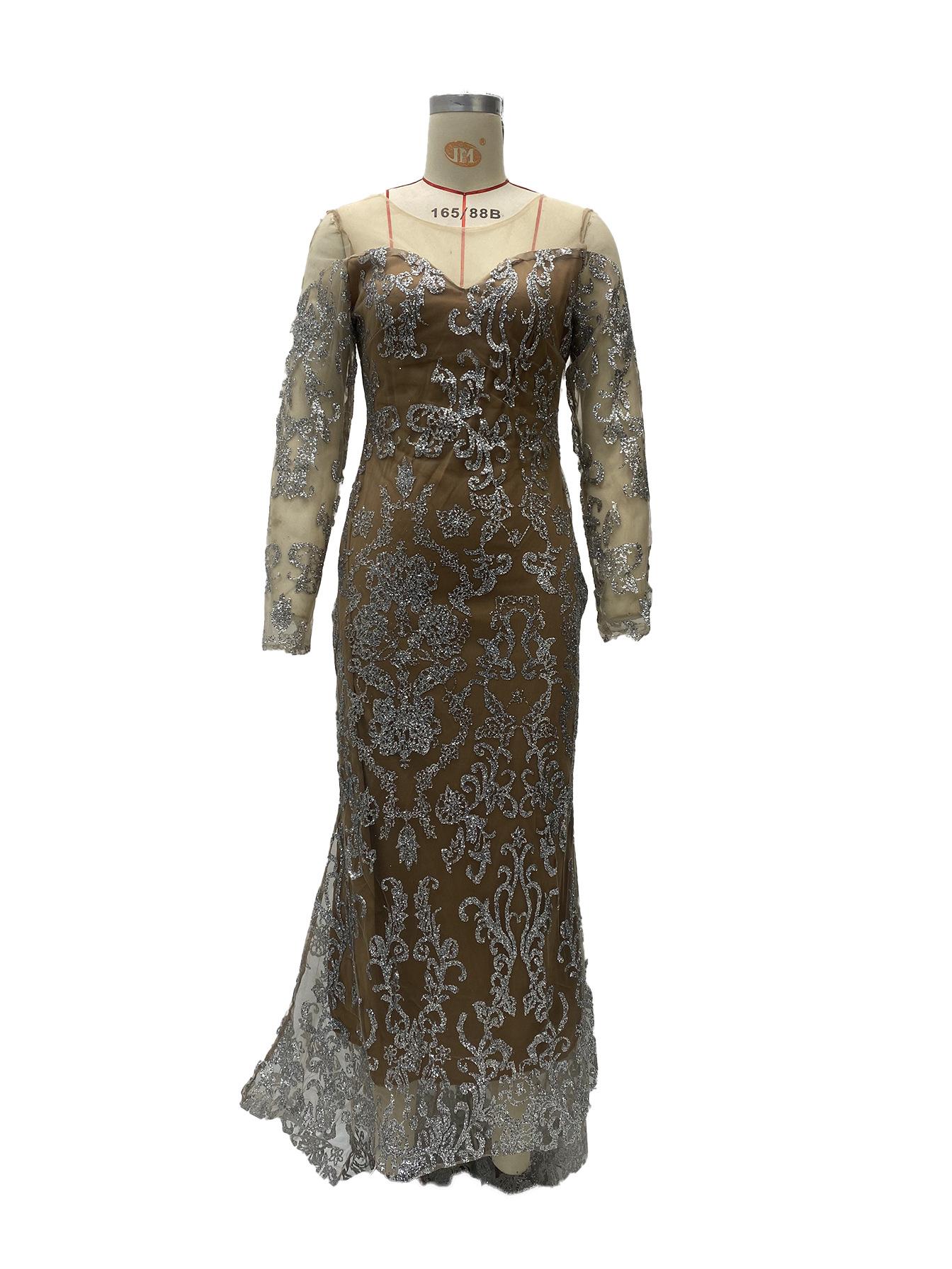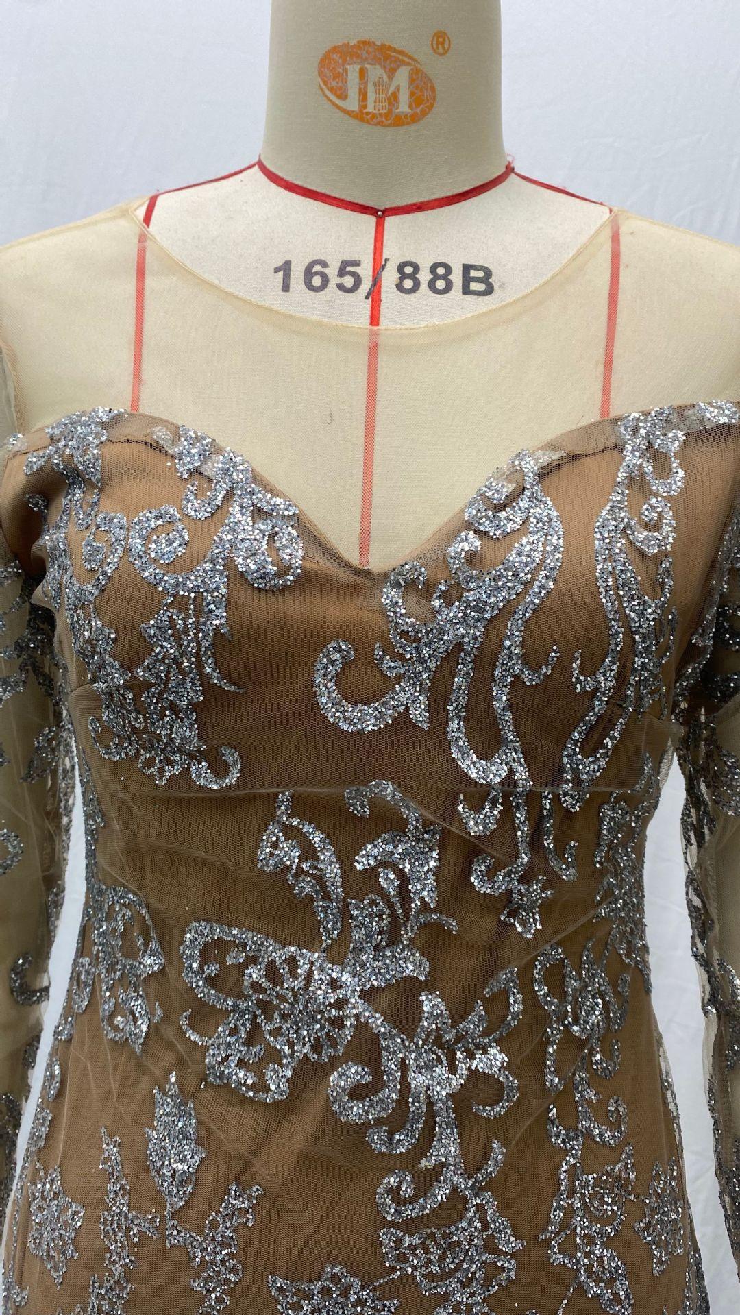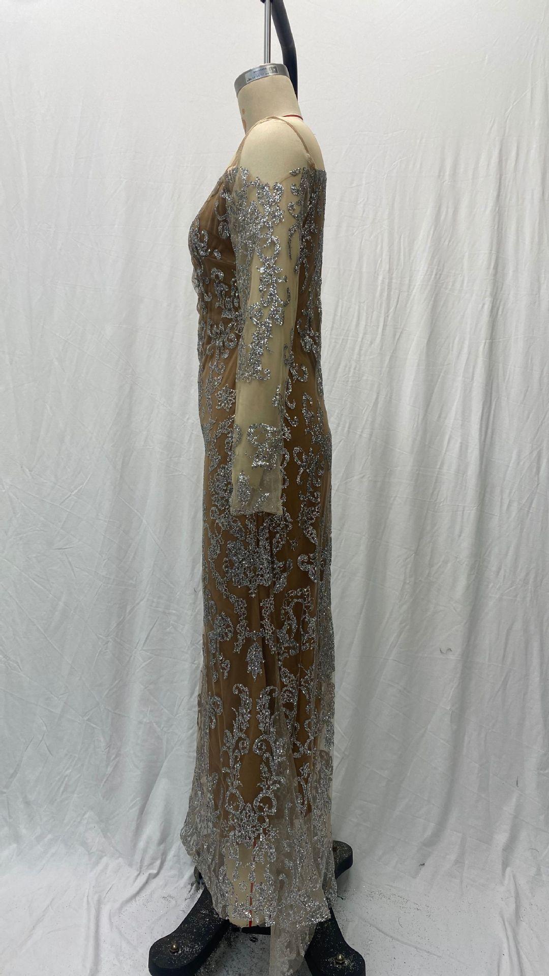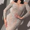 2025 Primavera Transfronteriza Nuevo Exportación Europea y Americana Ropa de Mujer Bronceado Manga Larga Ajustado Sexy Falda Larga Vestido de Noche de Banquete