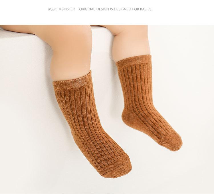 Calcetines para niños 2024 nuevos calcetines de tubo de color sólido para bebés de otoño, calcetines finos de algodón para niños y niñas.