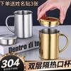Taza de Café Transfronteriza de Acero Inoxidable 304, Asa de Alambre, Vaso Termo con Pajita, Vaso para Saliva de Doble Bebida, Taza Aislante Térmica