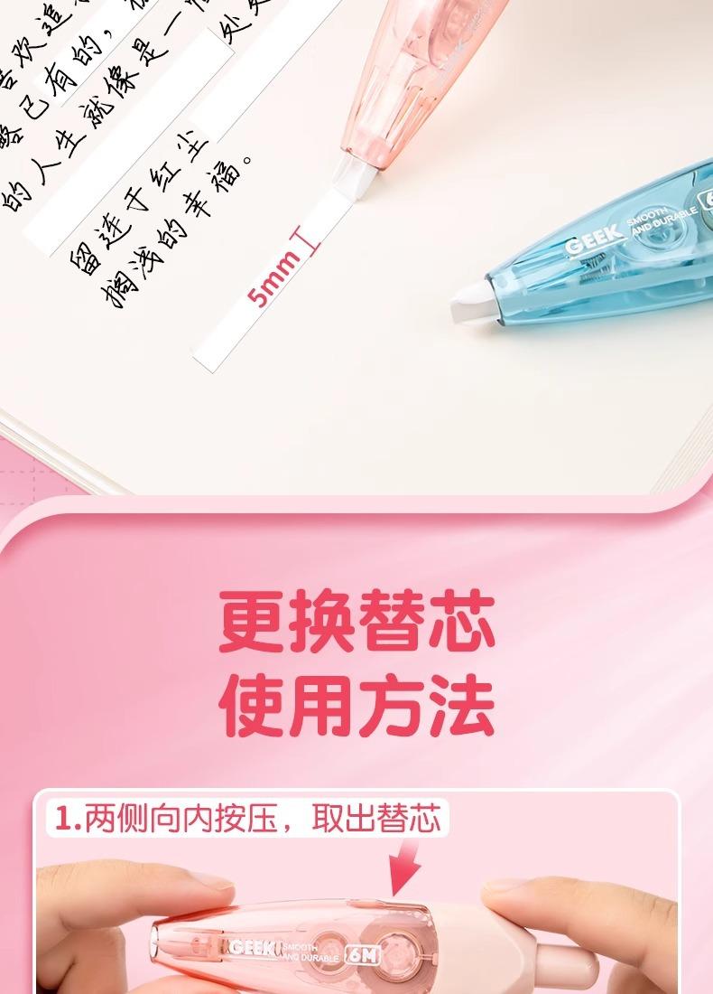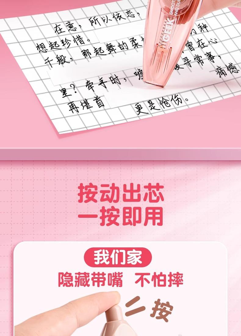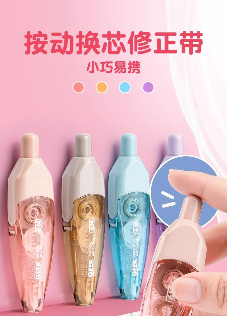 Presione la cinta correctora para que los estudiantes usen una cinta correctora de caracteres de gran capacidad con núcleo reemplazable de alto valor para niñas.