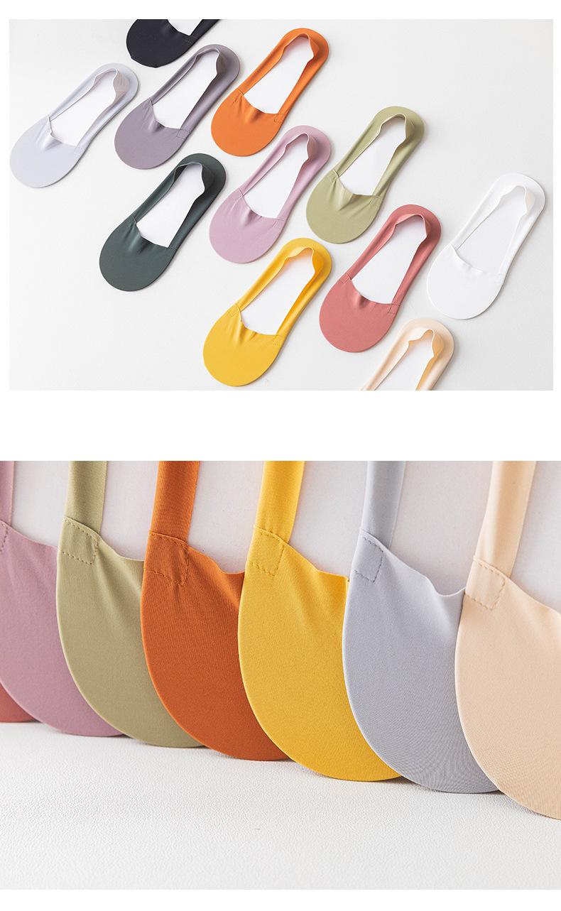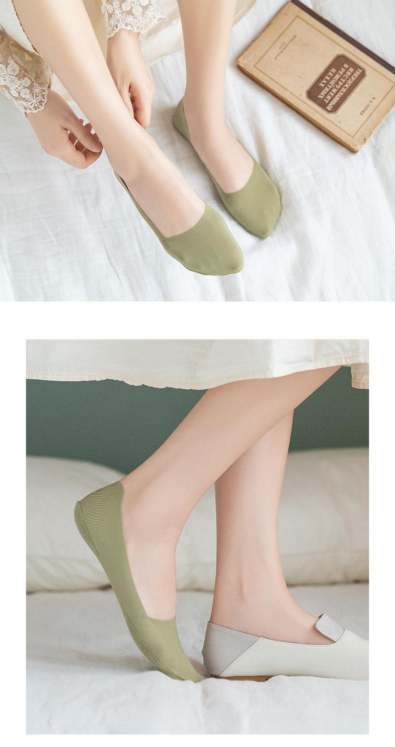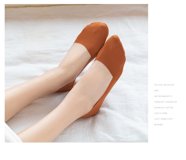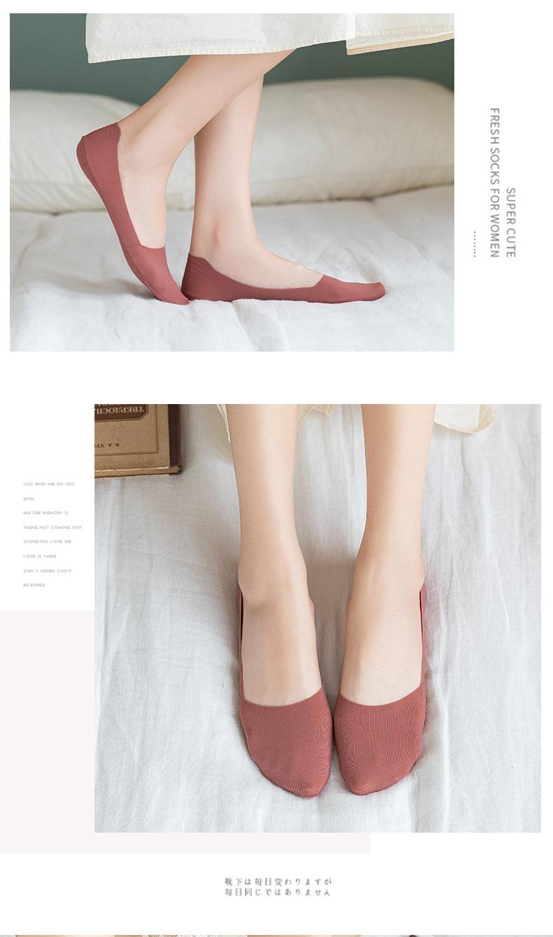 Calcetines para Mujer Primavera y Verano Finos Color Puro Calcetines Invisibles Silicona Antideslizante Anticaída Calcetines de Barco Seda de Hielo Anticaída Calcetines Bajos para Mujer