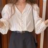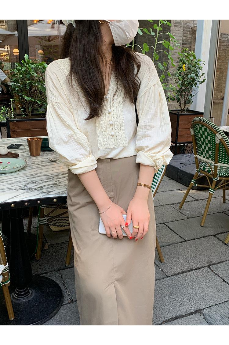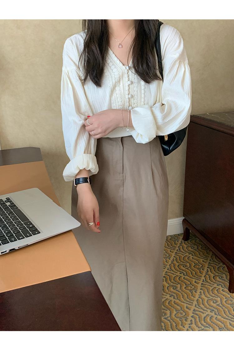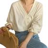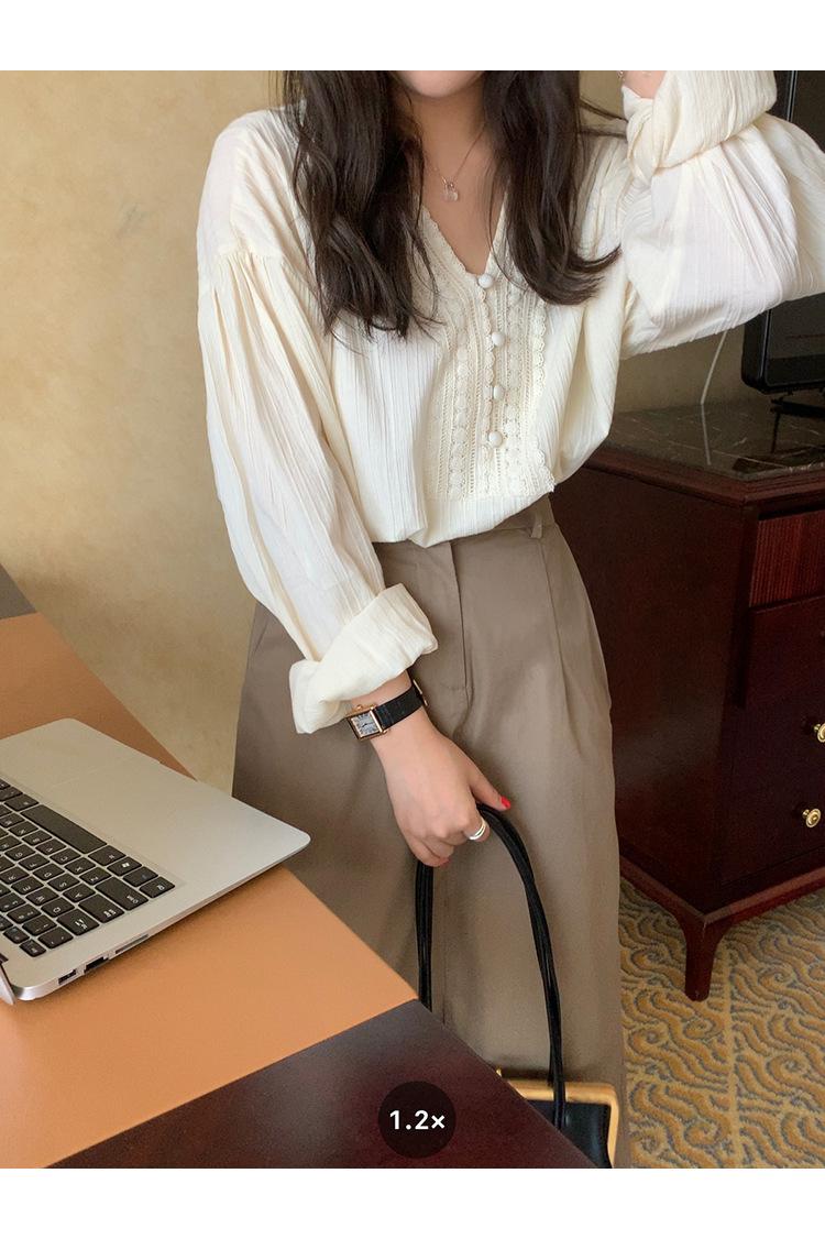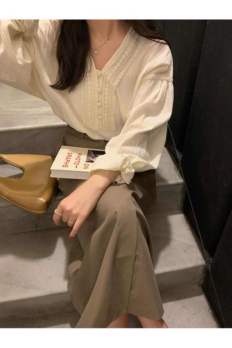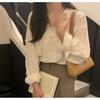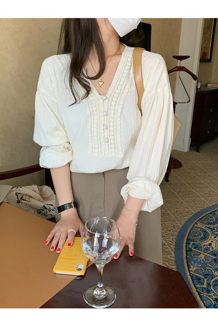 Camisa de manga larga con cuello en V color albaricoque para mujer, nueva camisa de encaje fino estilo coreano de primavera 2022