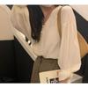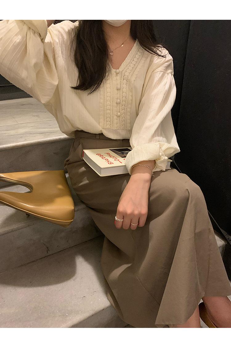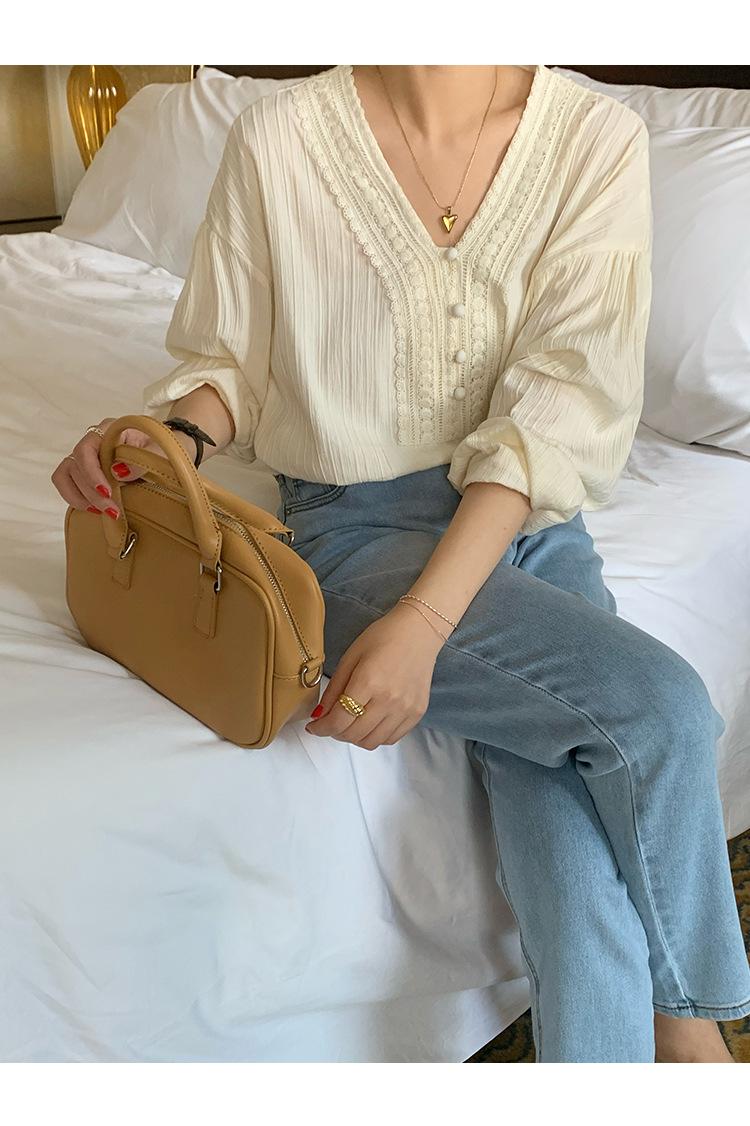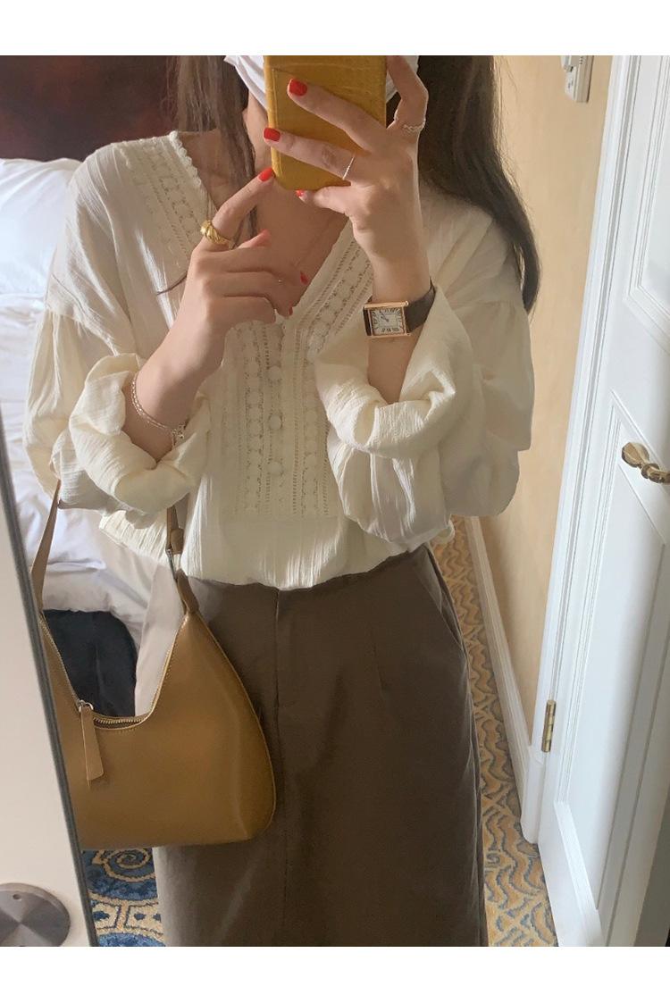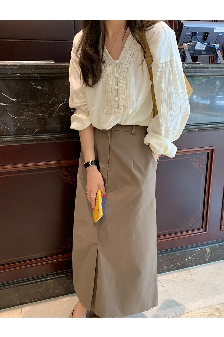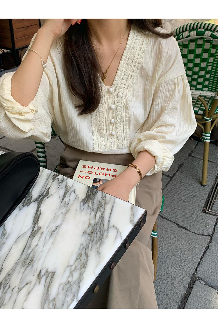 Camisa de manga larga con cuello en V color albaricoque para mujer, nueva camisa de encaje fino estilo coreano de primavera 2022