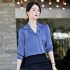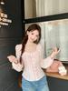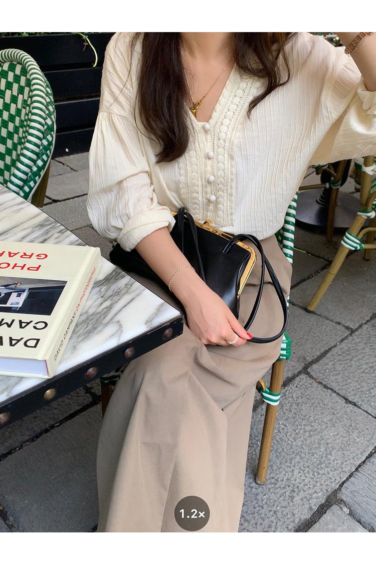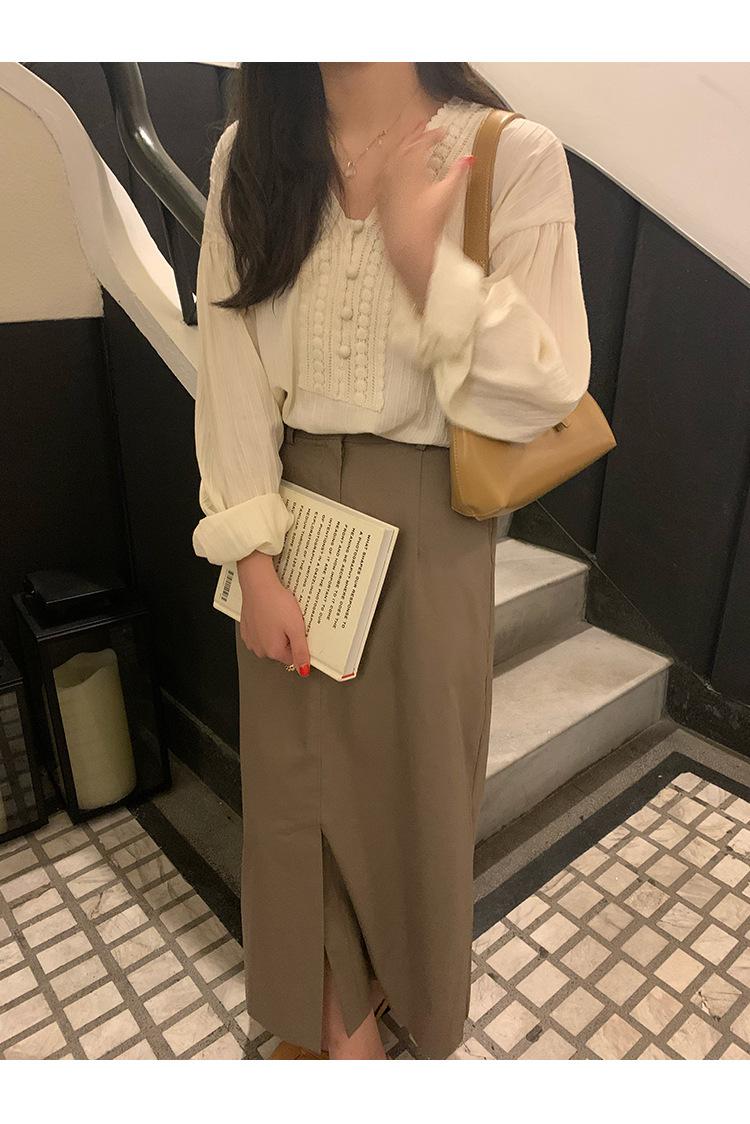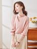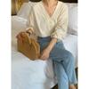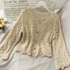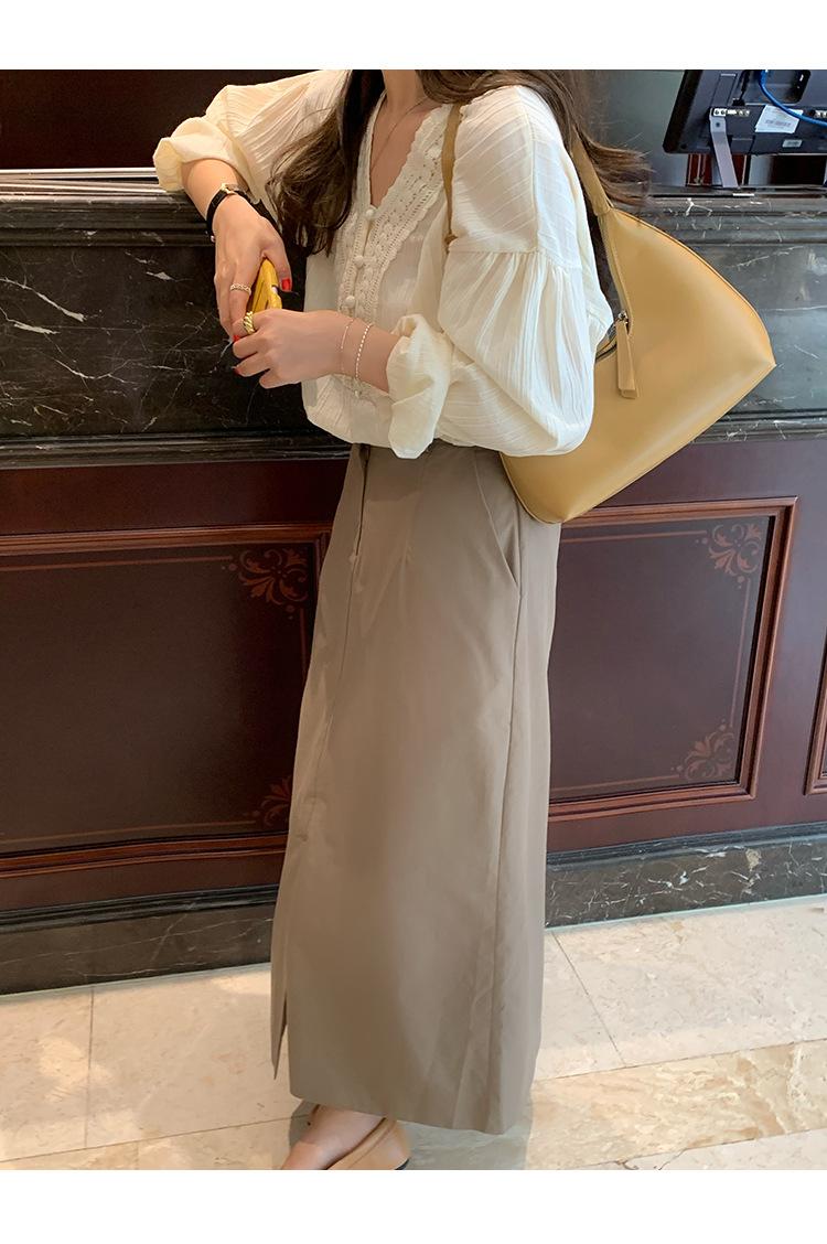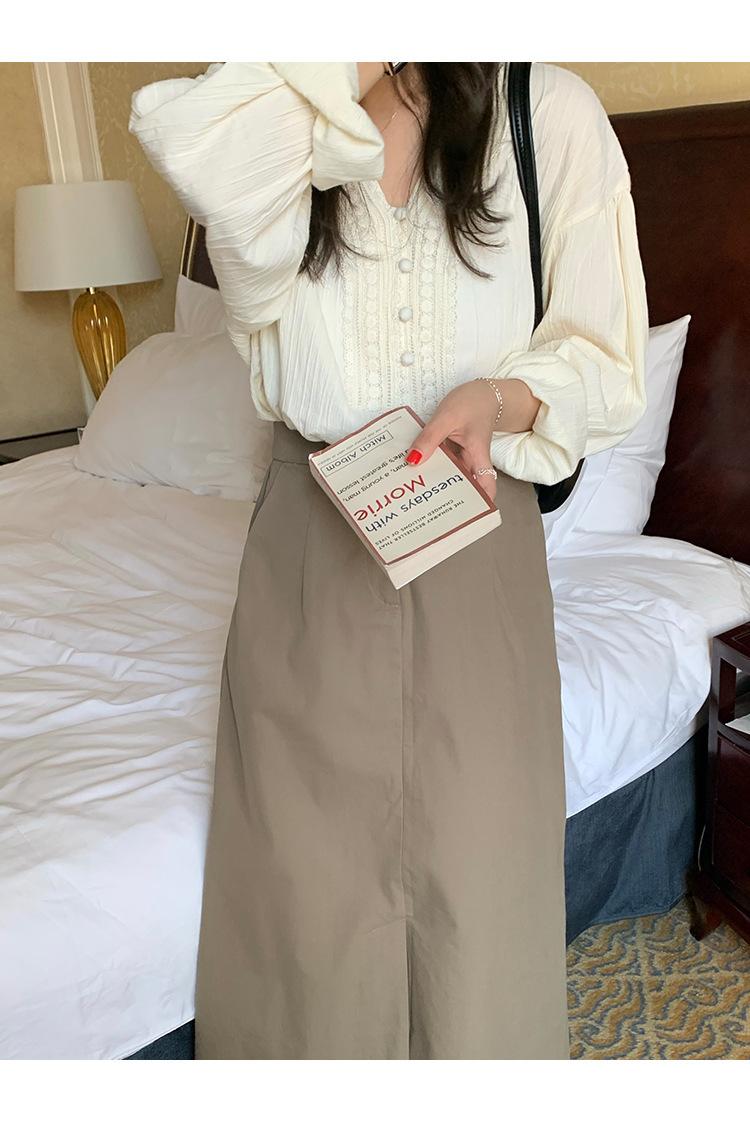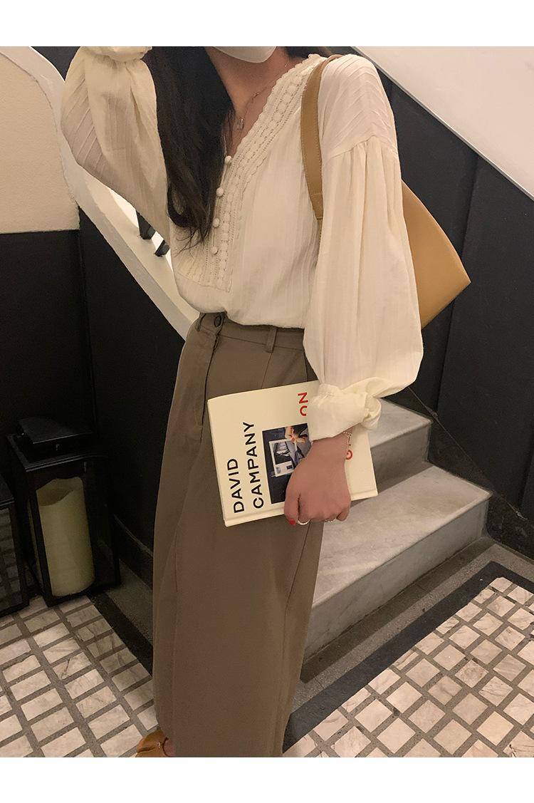 Camisa de manga larga con cuello en V color albaricoque para mujer, nueva camisa de encaje fino estilo coreano de primavera 2022