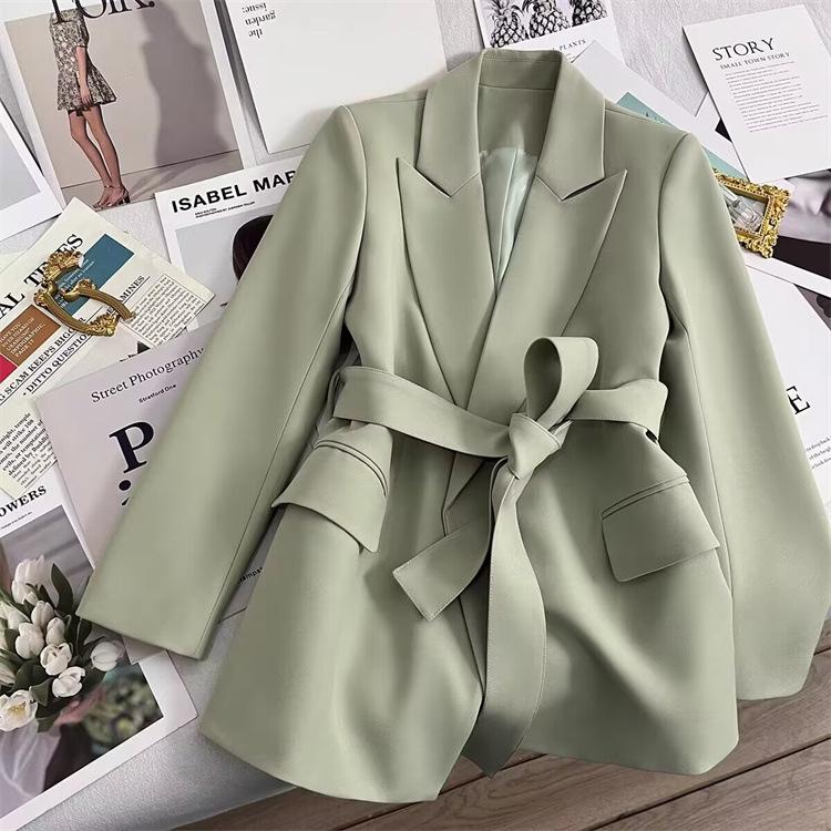 Chaqueta de Traje Negra con Cordones para Mujer 2025 Otoño Nuevo Diseño Elegante Estilo Coreano Casual Moderno Traje para Mujer