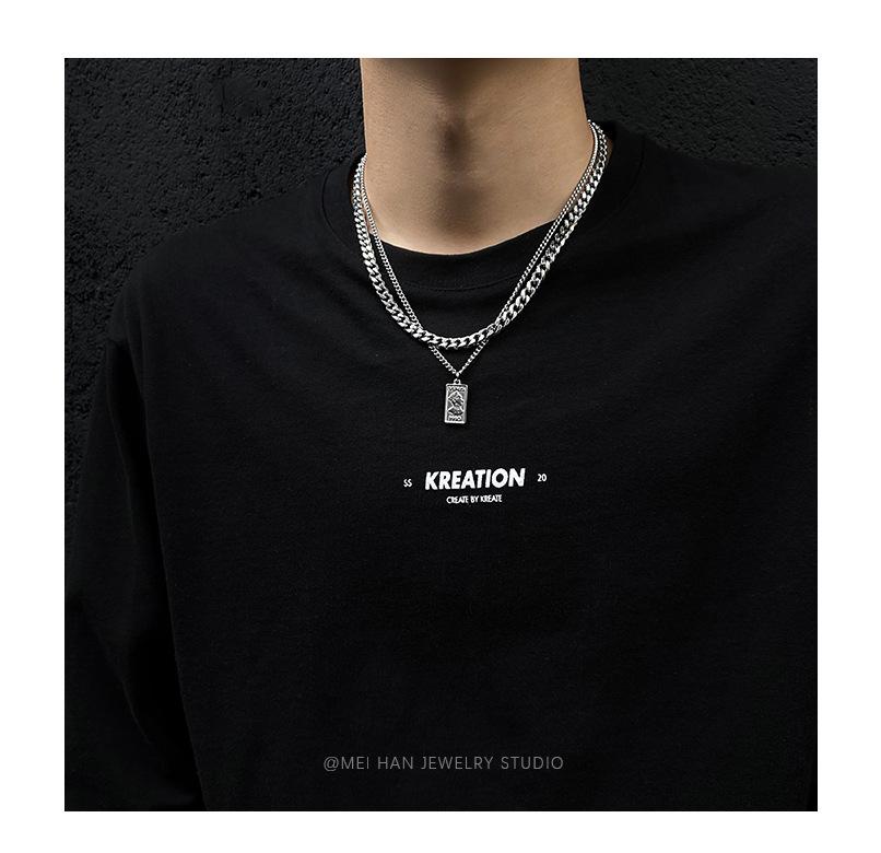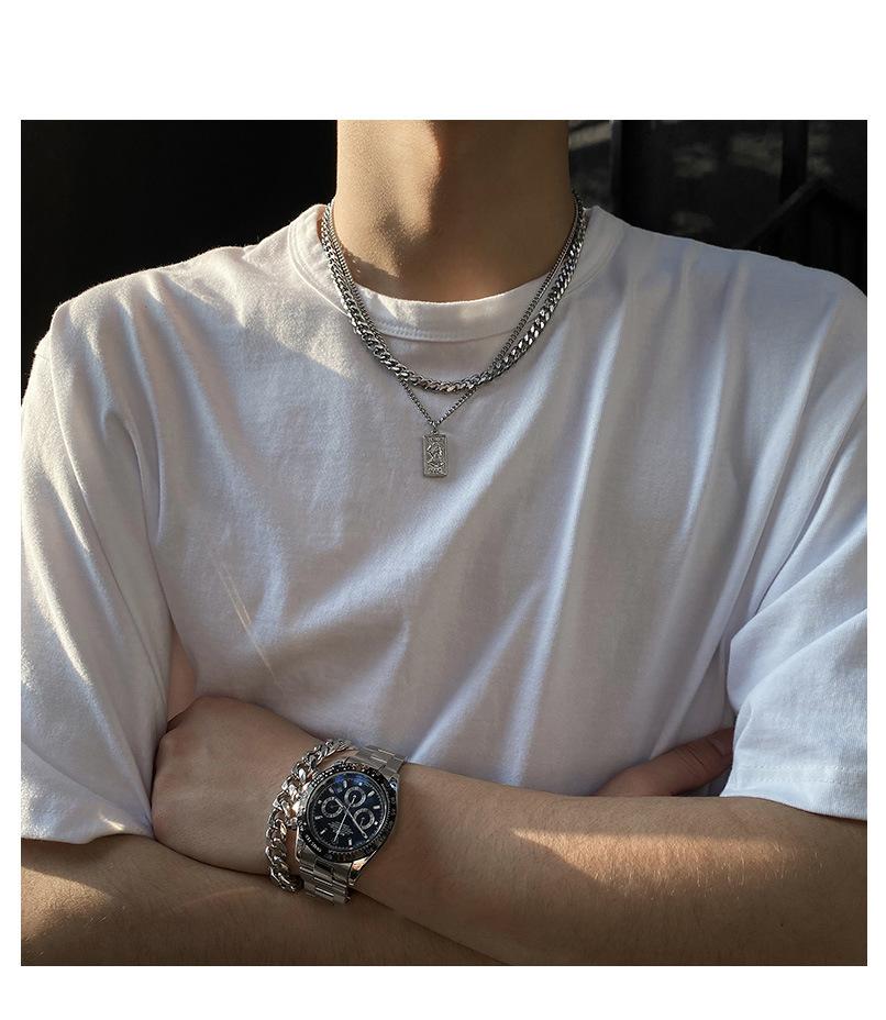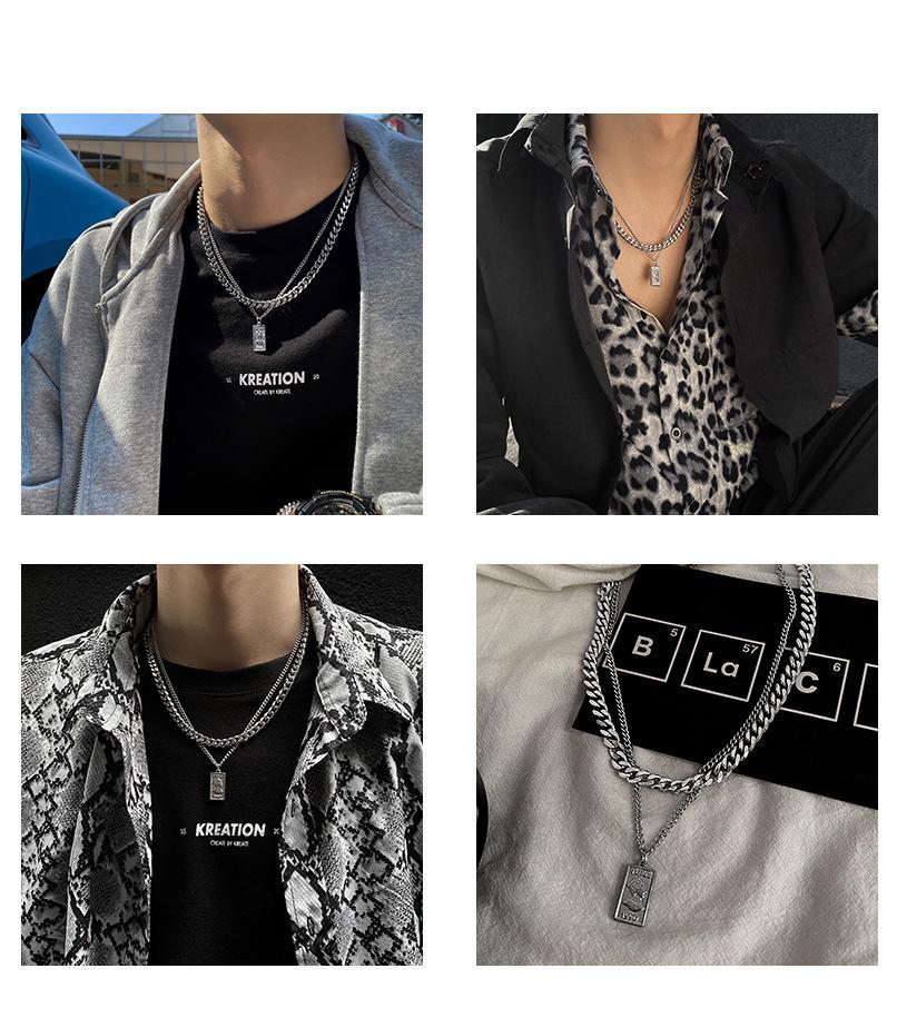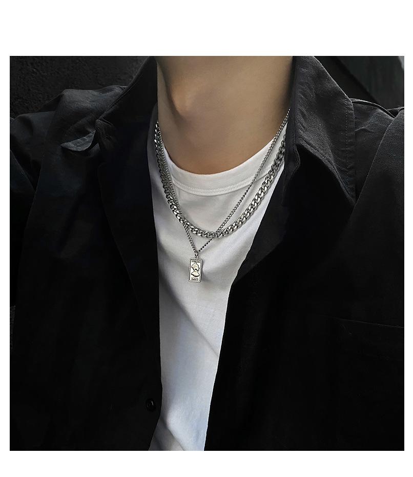Collar con Colgante de Cabeza Vintage de Acero de Titanio Europeo y Americano para Hombre y Mujer, Collar de Doble Capa de Moda Ins Hip-Hop, Patrón de Ola Clavicular para Pareja