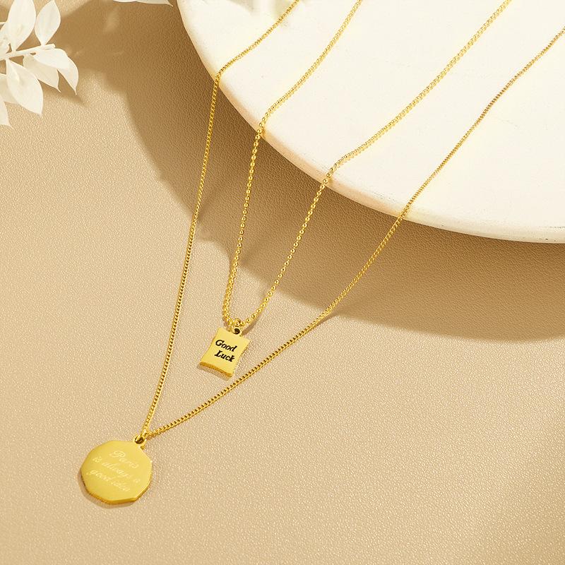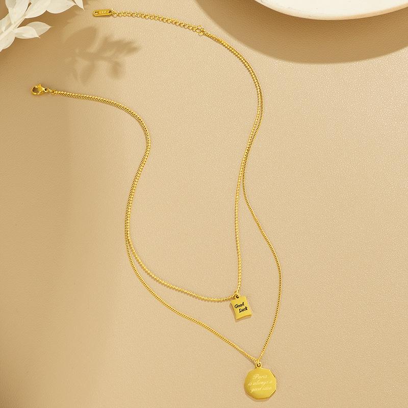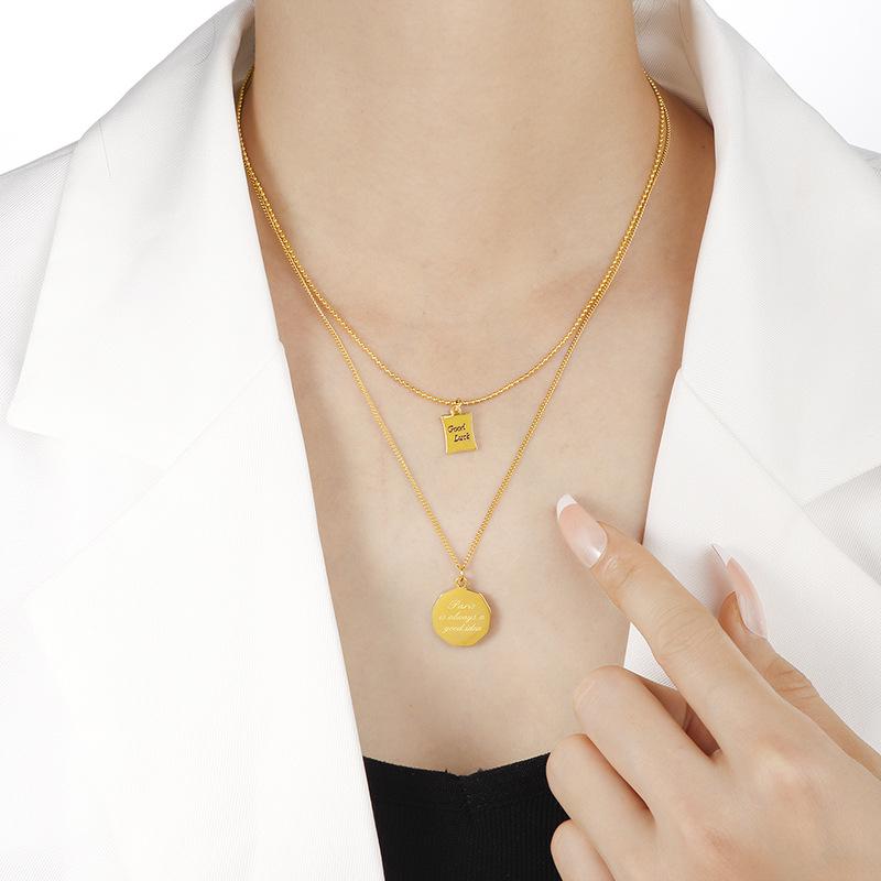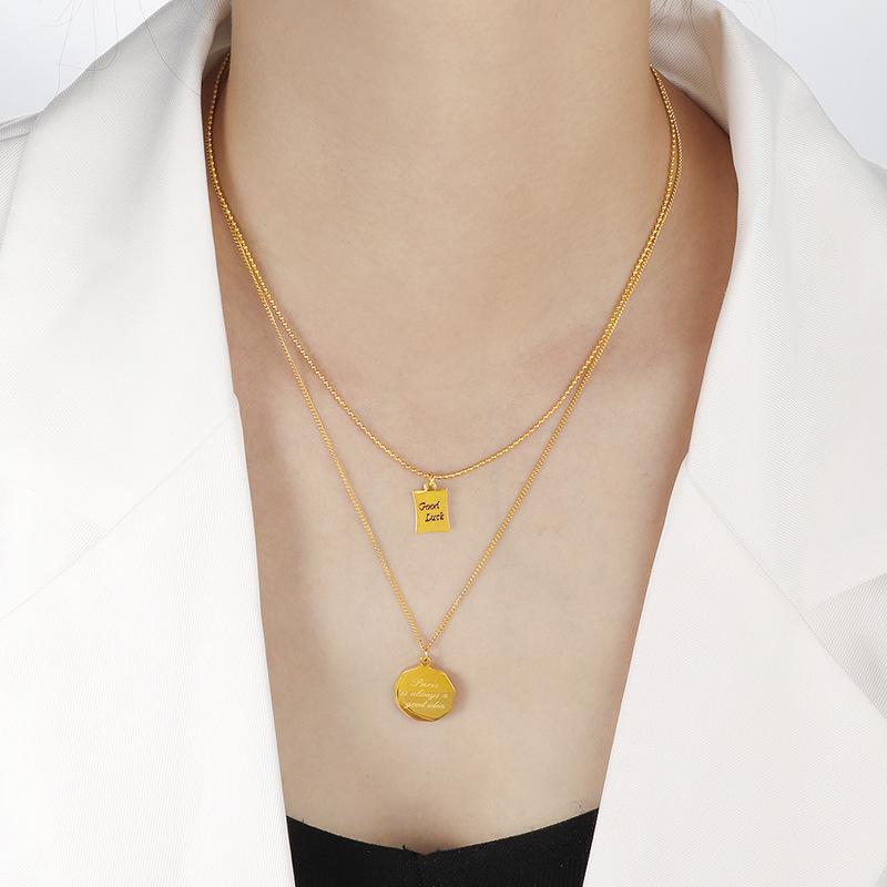 X224 Hollow Goodluck Double Layer Necklace Gold