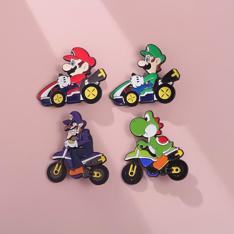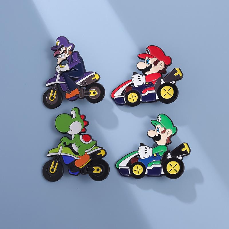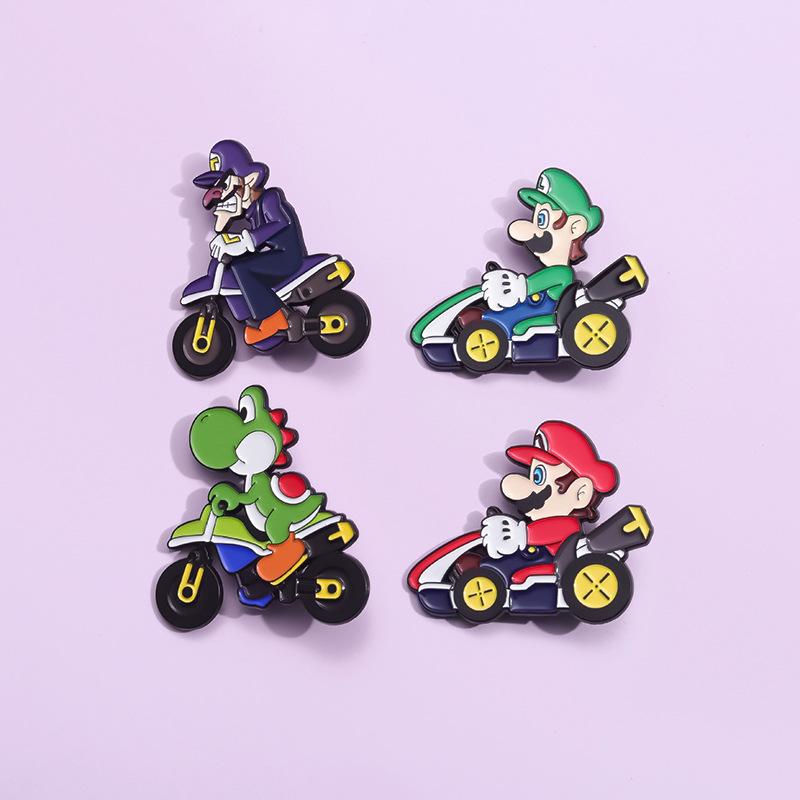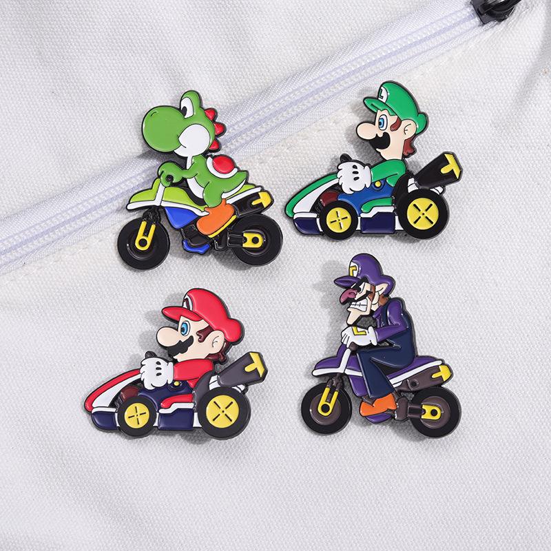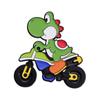 Broche de juego de dibujos animados personalizado, periférico conmemorativo, versátil y exquisito, regalo de cumpleaños, pequeño dinosaurio barbudo de metal conduciendo una motocicleta.