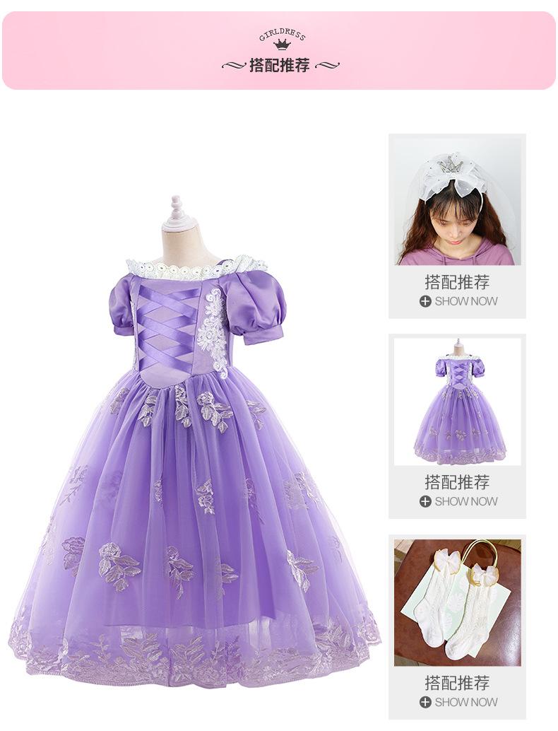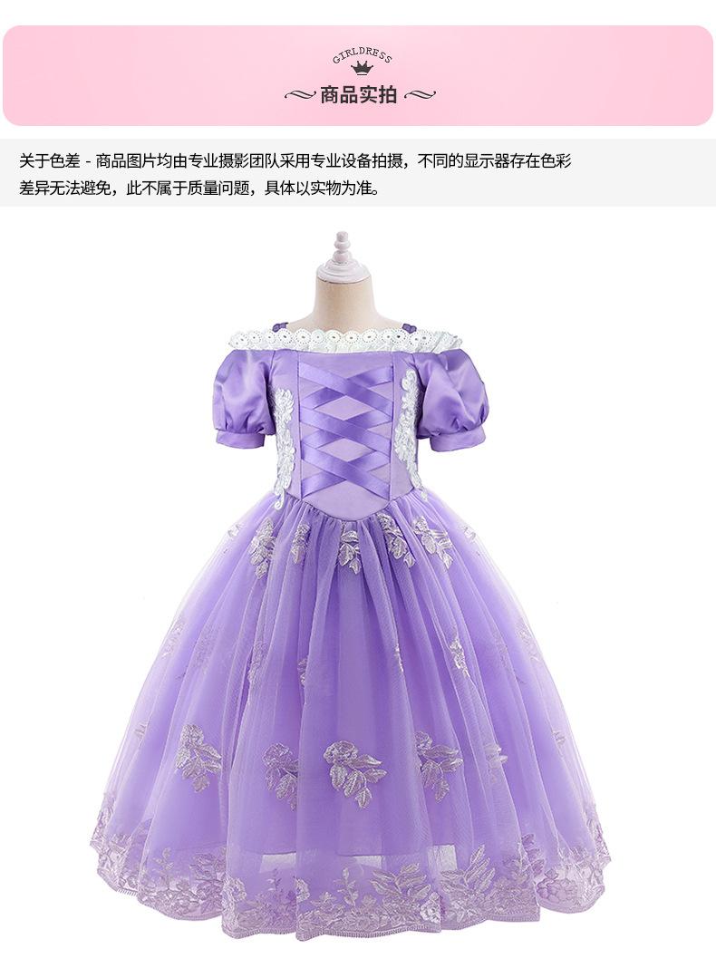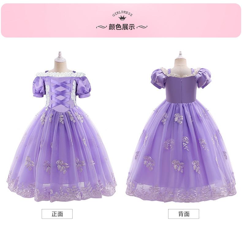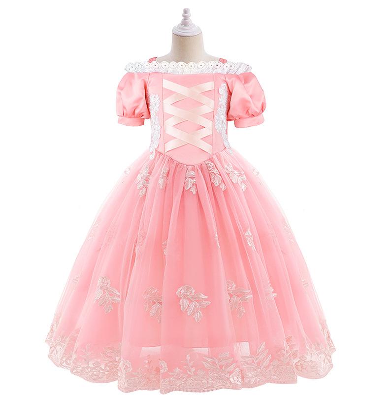 Vestido de princesa con encaje bordado de pelo largo para niña, vestido de princesa para fiesta y noche, transfronterizo europeo y americano