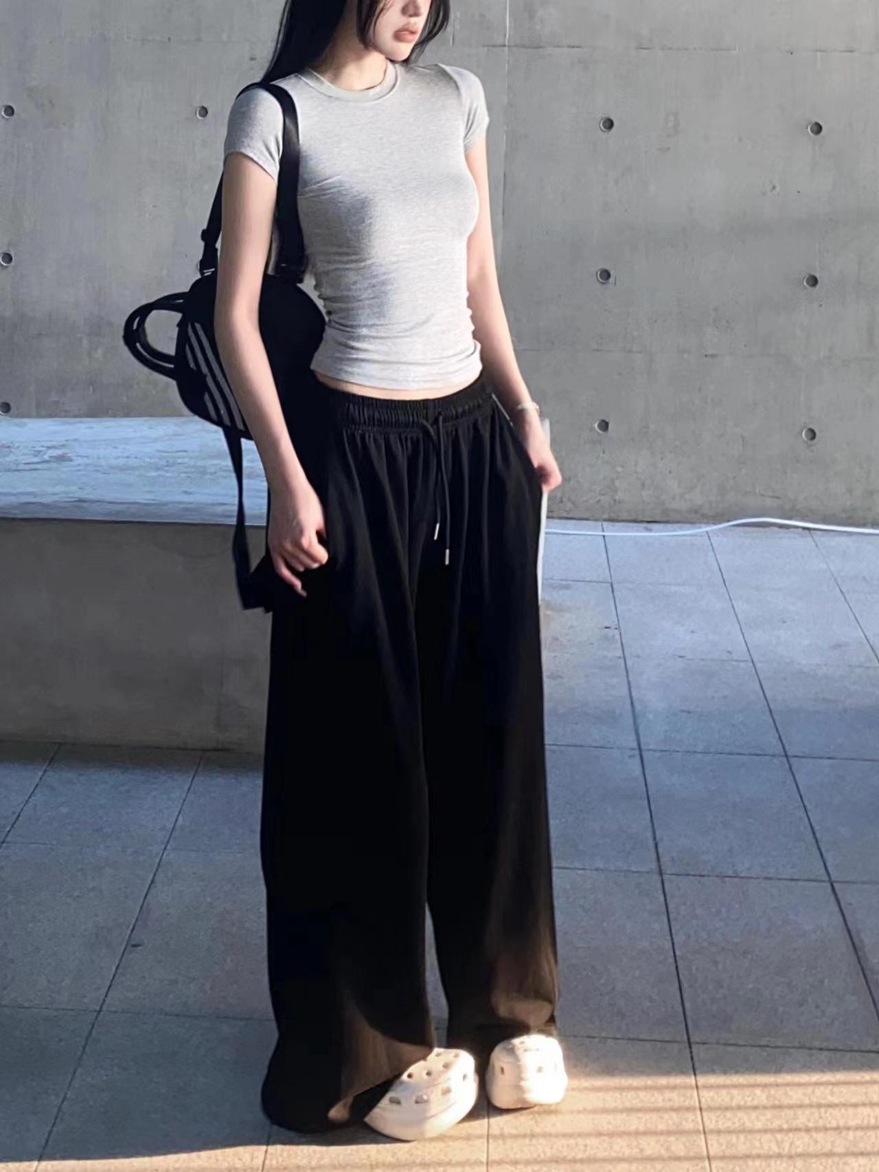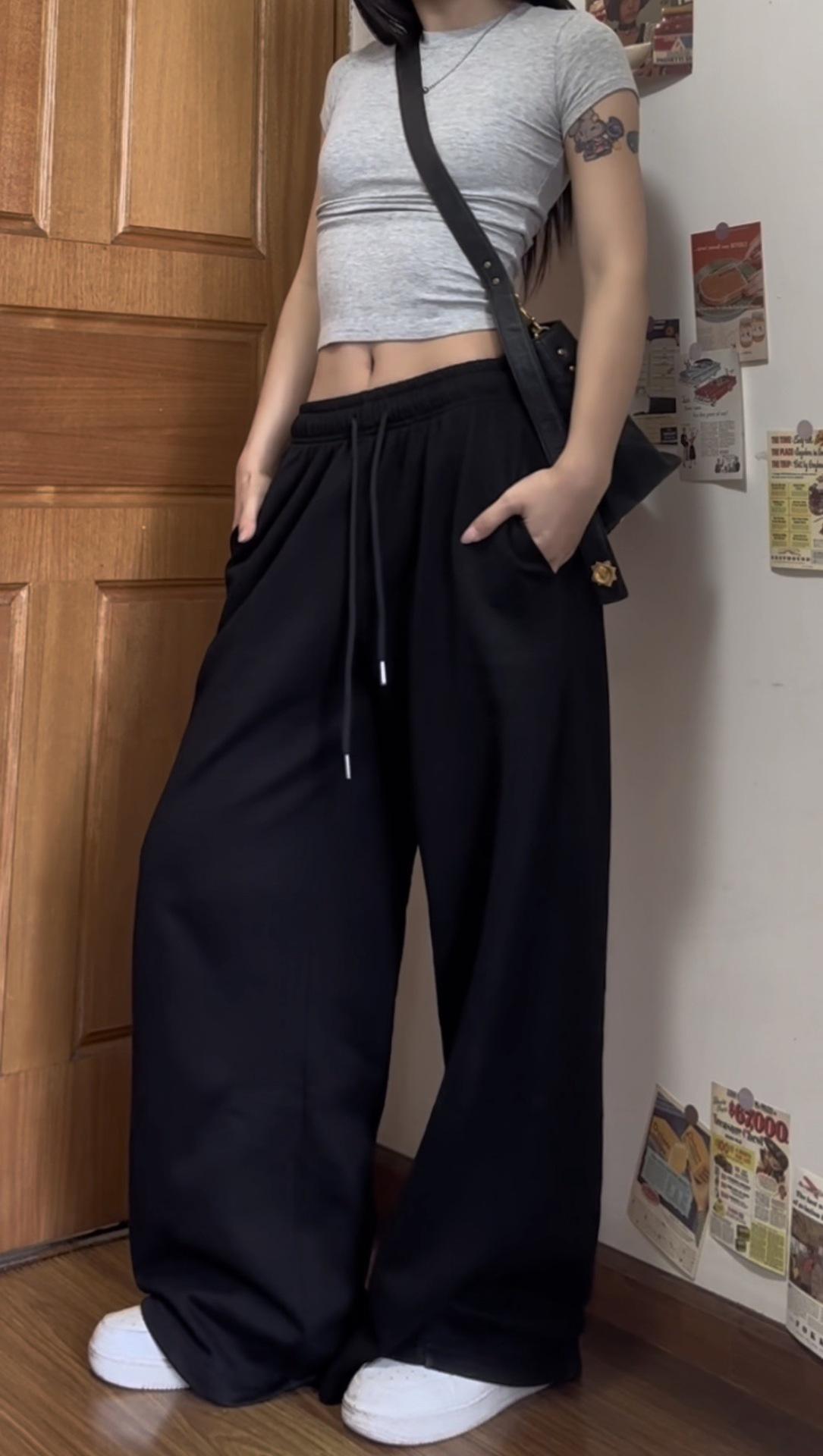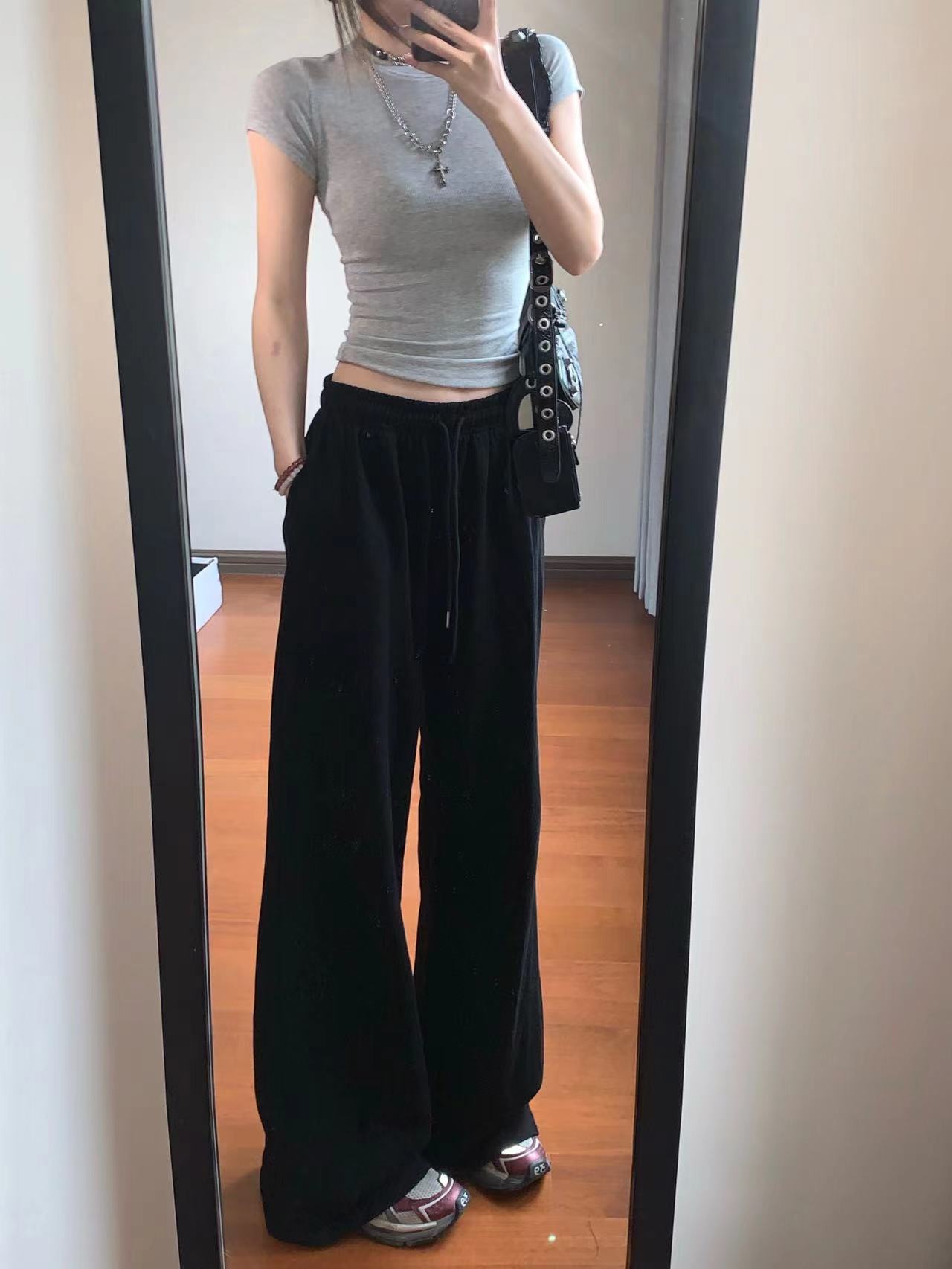 Pantalones de Chándal de Peso Pesado Estilo Americano de Tubo Recto de Cintura Alta para Mujer, Pantalones Deportivos de Pierna Ancha para Chica Caliente, Pantalones Holgados Adelgazantes para Mujer