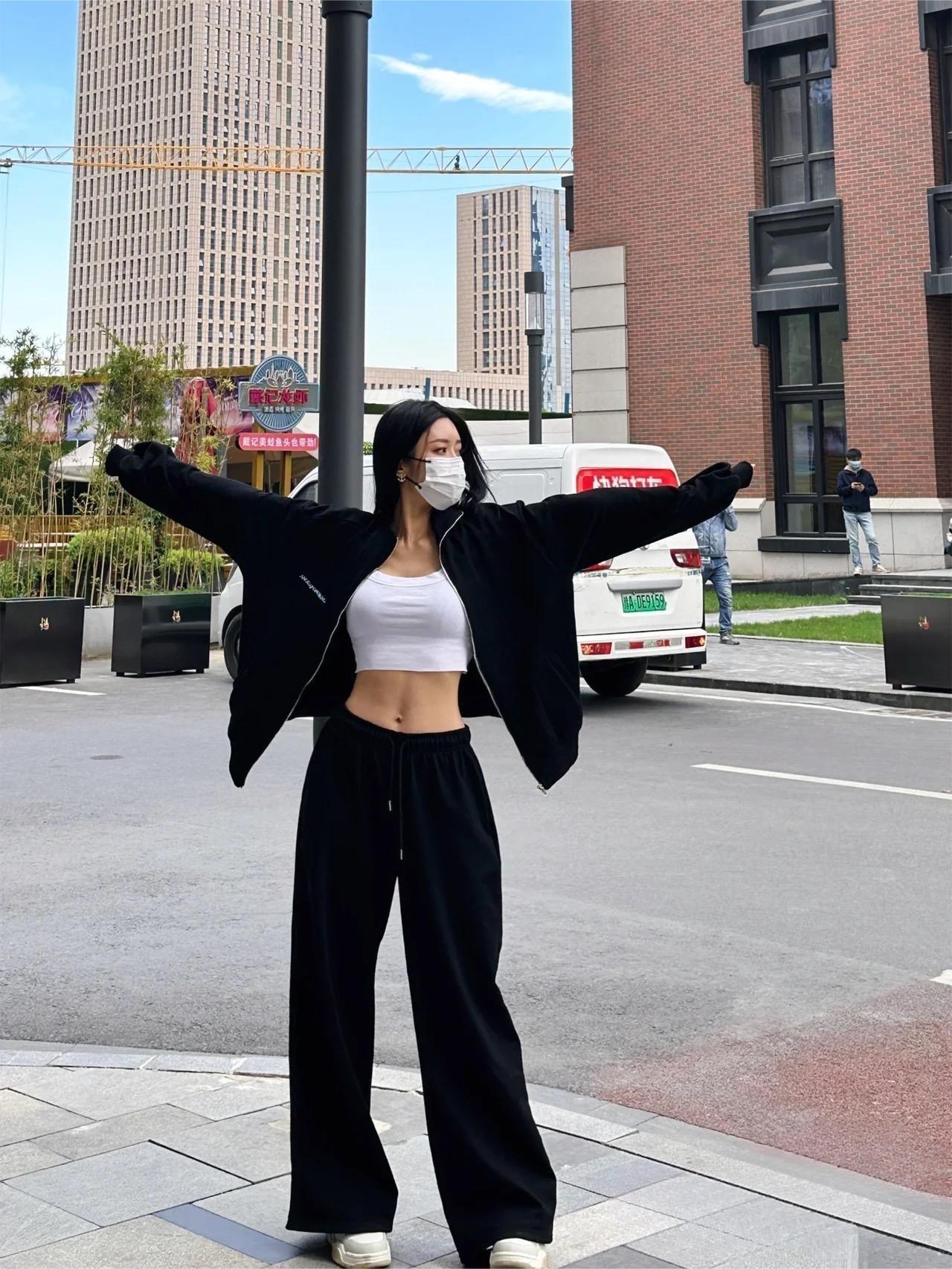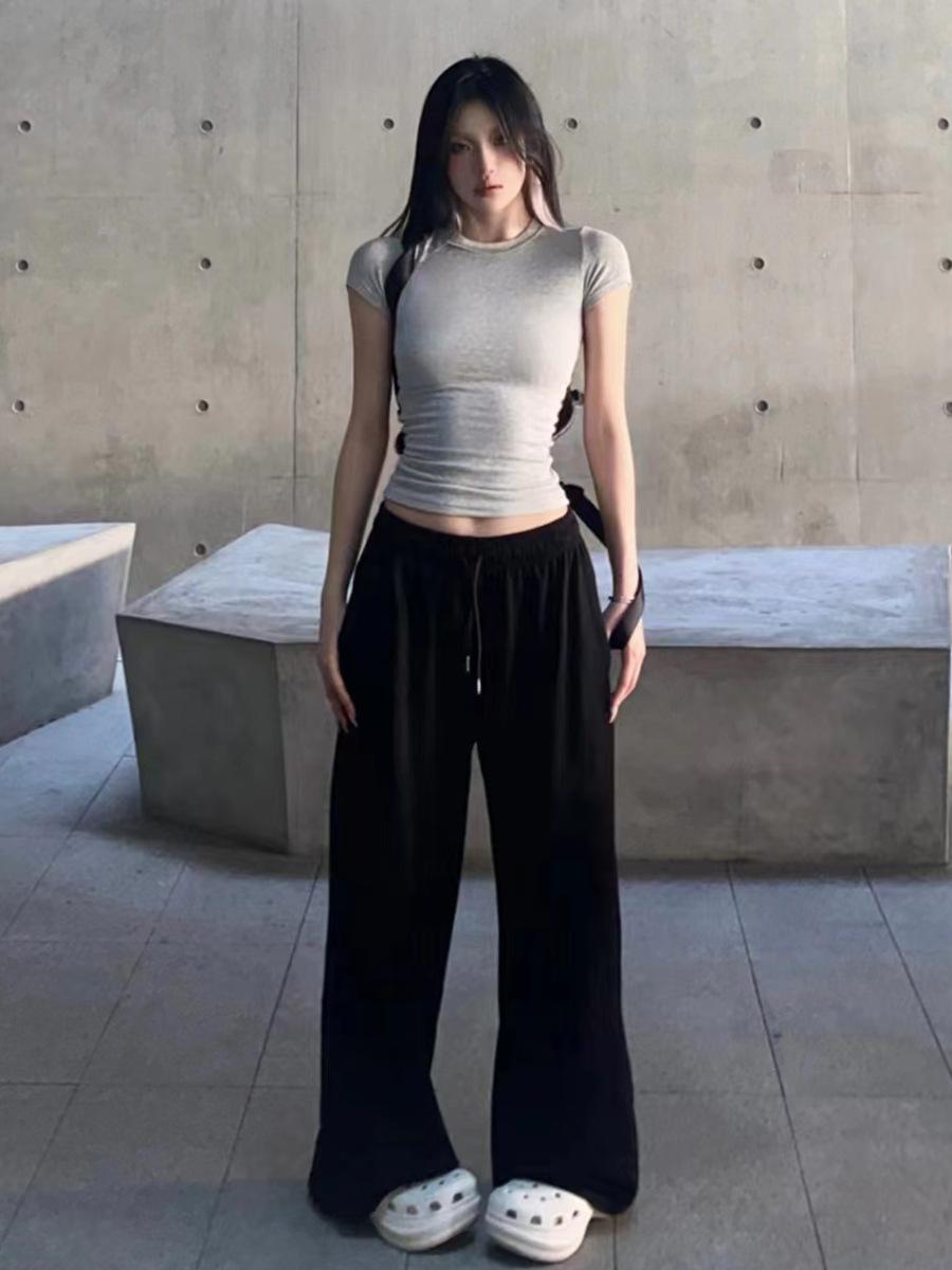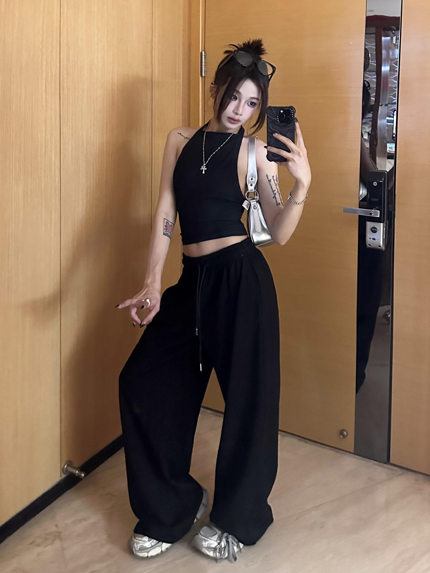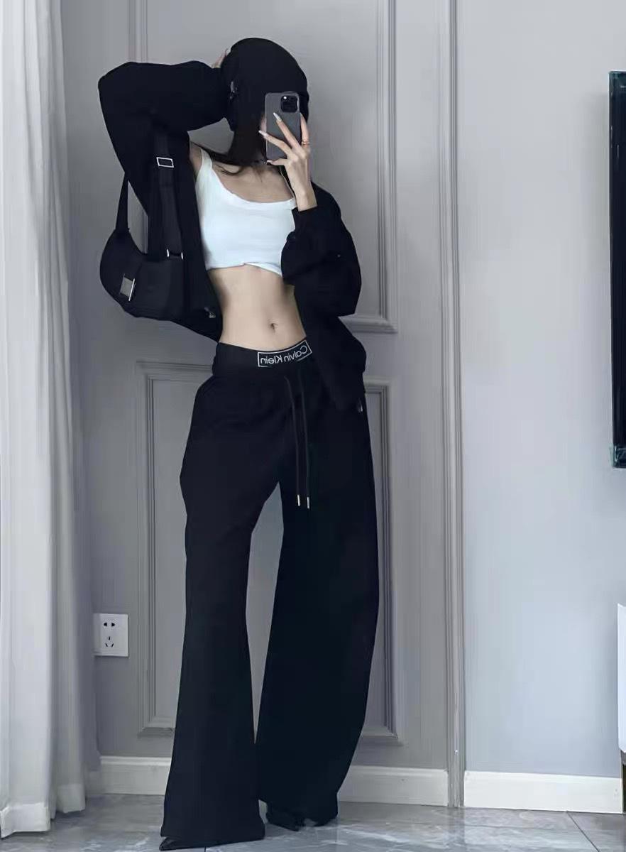 Pantalones de Chándal de Peso Pesado Estilo Americano de Tubo Recto de Cintura Alta para Mujer, Pantalones Deportivos de Pierna Ancha para Chica Caliente, Pantalones Holgados Adelgazantes para Mujer