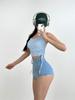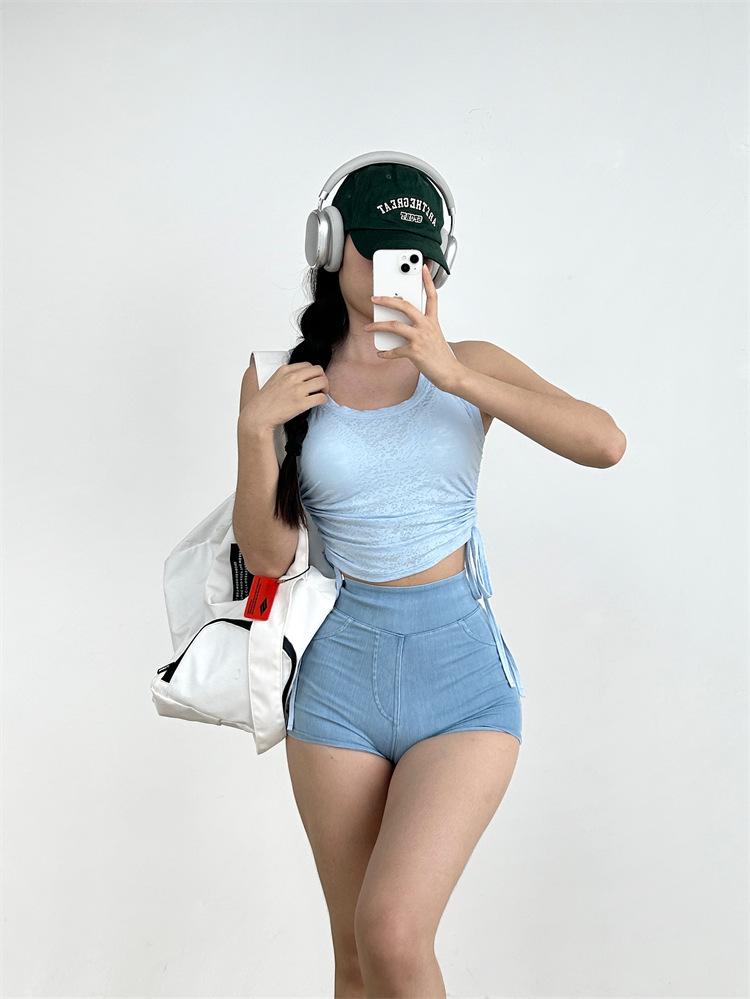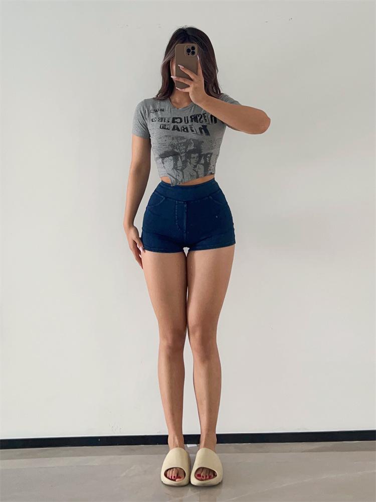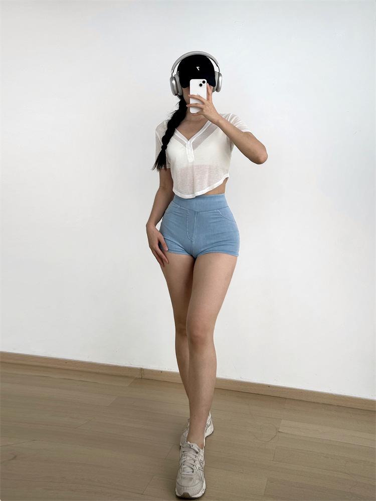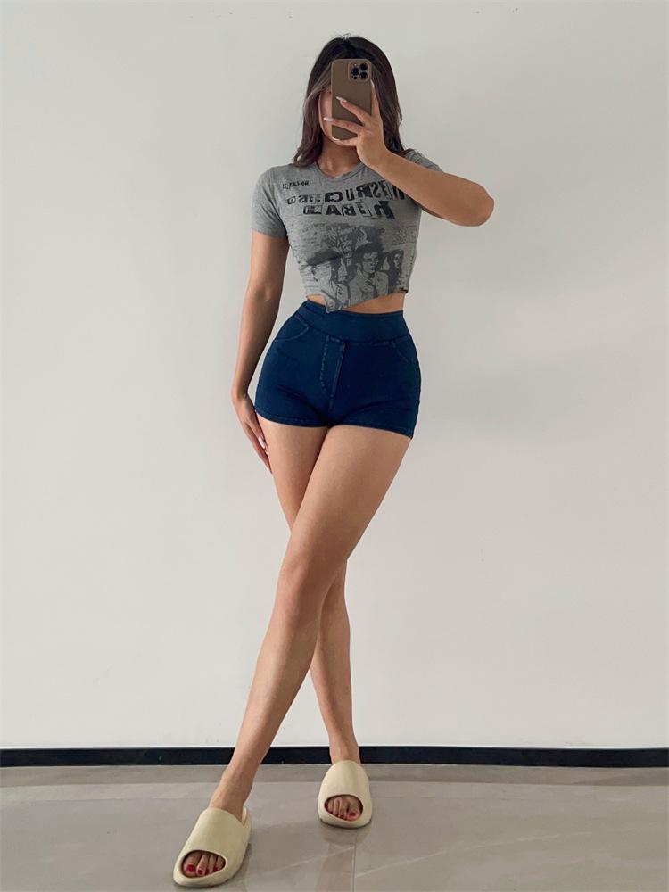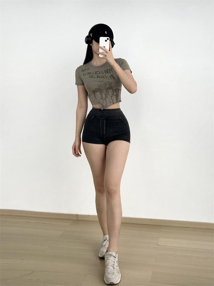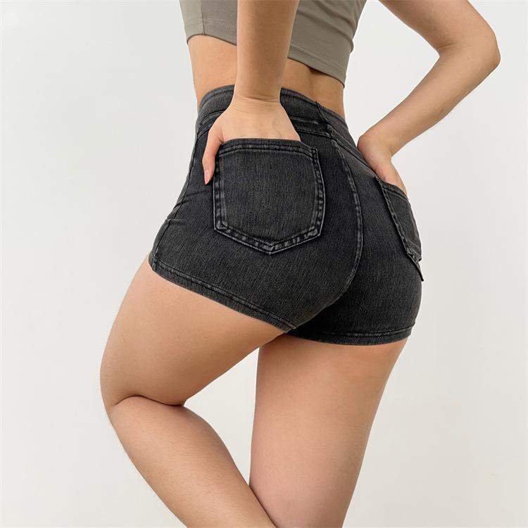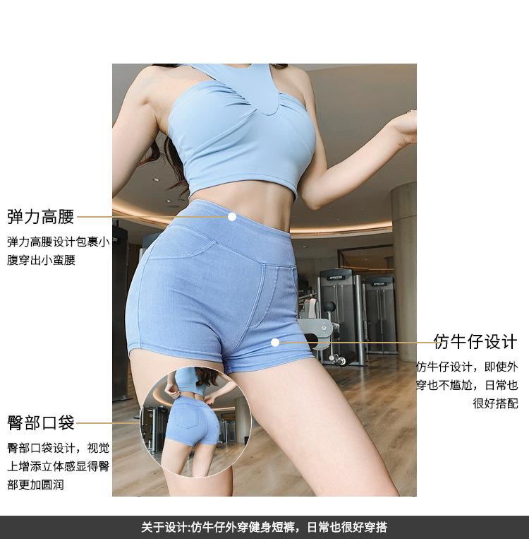 Pantalones cortos de yoga de mezclilla de imitación, deportivos, ajustados, de cintura alta, para pilates, caderas, cómodos, para baile, informales, para mujer, 1106