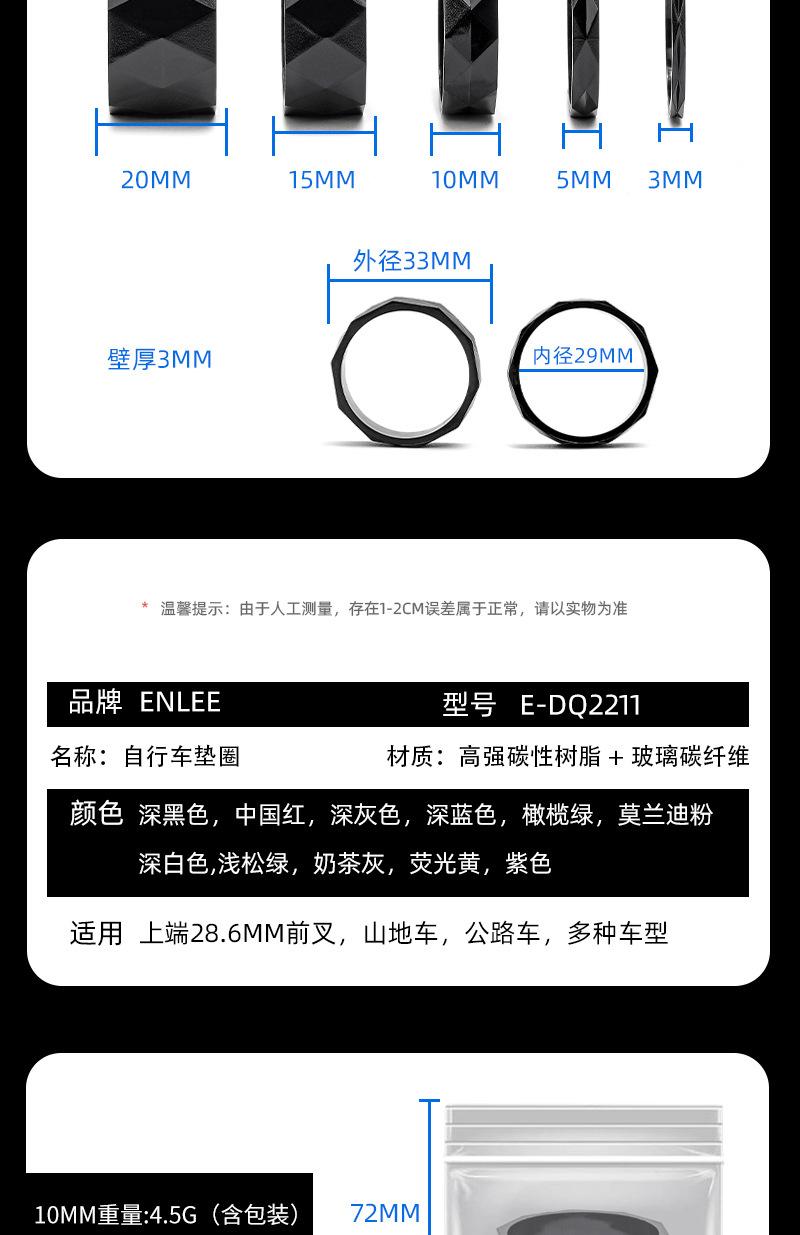 Arandela de bicicleta 28.6 horquilla delantera Arandela de juego de cazoletas 3K soporte de manillar juego de muñequera almohadilla anillo alto dispositivo elevador de altura de conducción 5/10/mm