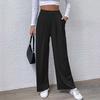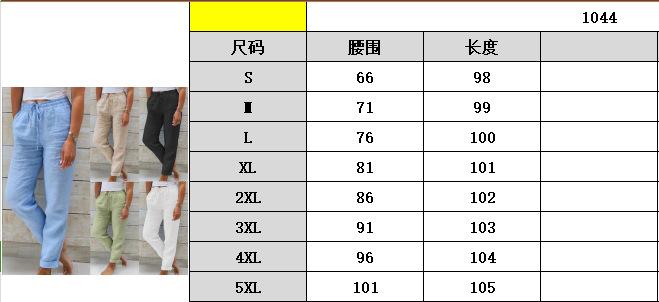 2023 Europeo y Americano Transfronterizo Nuevo Exportación Amazon Wish Pantalones Casuales de Algodón y Lino de Color Puro con Cintura Elástica de Cintura Alta para Mujer