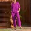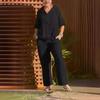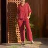 Primavera y Verano 2024 Nuevo Algodón Lino Moda Casual Suelto Dos piezas Manga Corta Cierre Top Pantalones Sueltos de Mujer