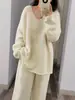 Abrigo holgado de otoño e invierno para mujer, nuevo, de Amazon, con cuello redondo, manga farol dividida, suéter de punto de color liso, comercio exterior