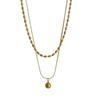 Collar de doble capa chapado en oro de 18 quilates al por mayor transfronterizo, cuentas redondas, acero de titanio que no se decolora, cadena para clavícula, estilo frío ins, femenino de alta gama