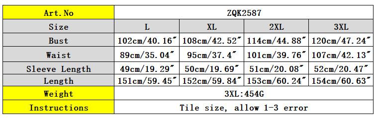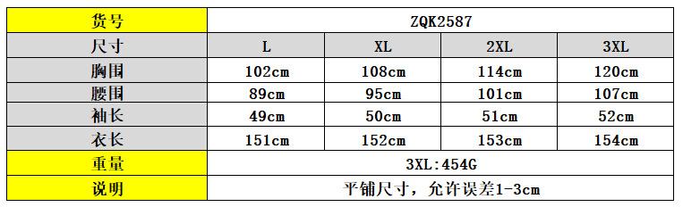Modelo: ZQK2587 Peso: 3XL: 454G