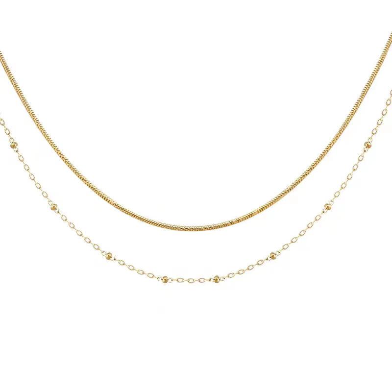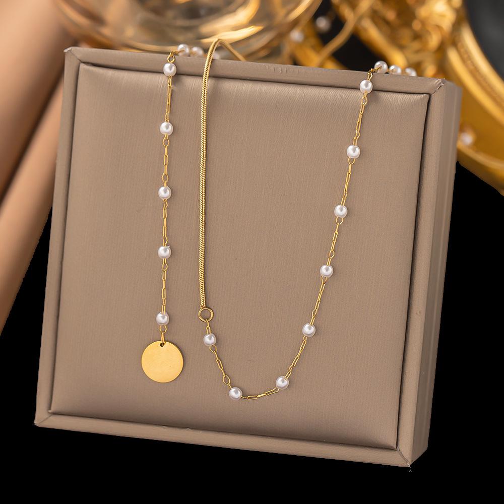 Collar de perlas de hueso de serpiente de doble capa chapado en oro de 18 quilates, cadena de clavícula con disco y borlas para mujer, venta al por mayor transfronteriza, verano 2023