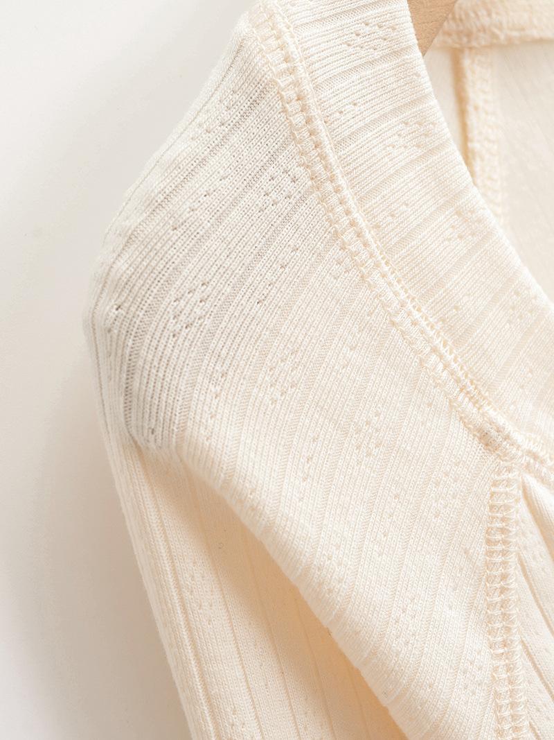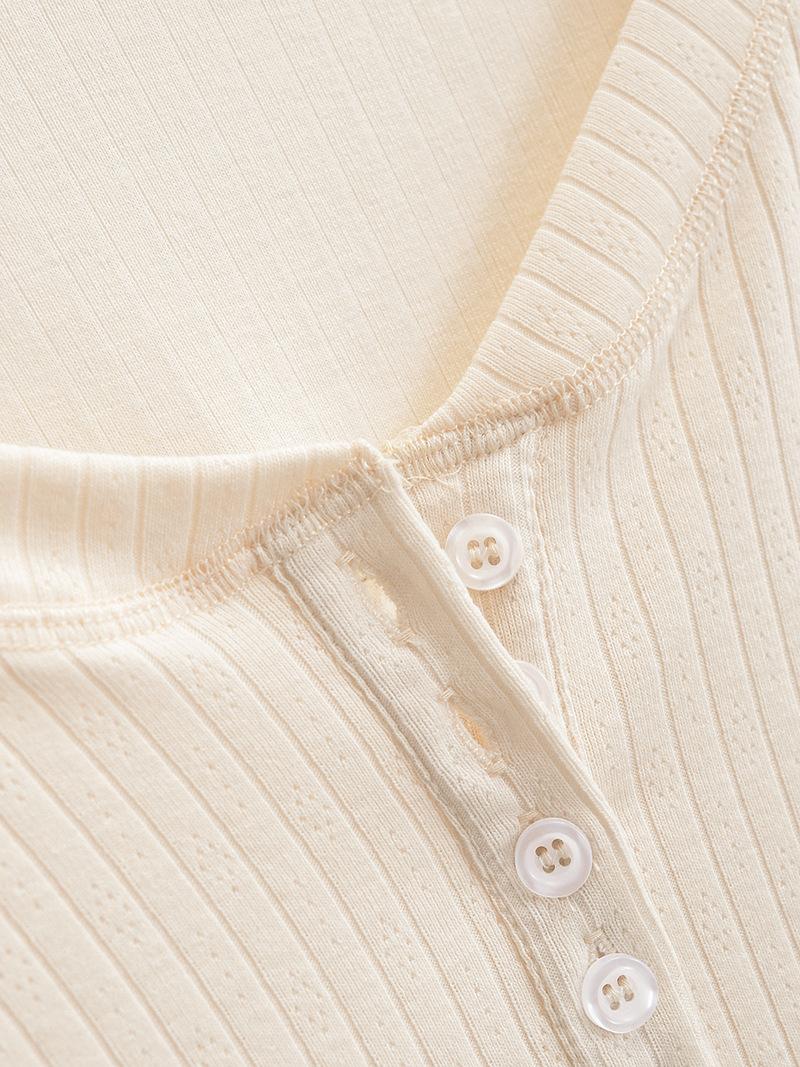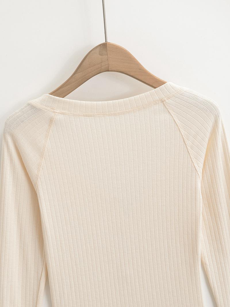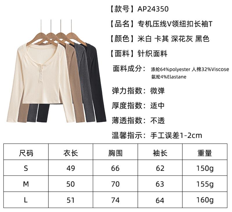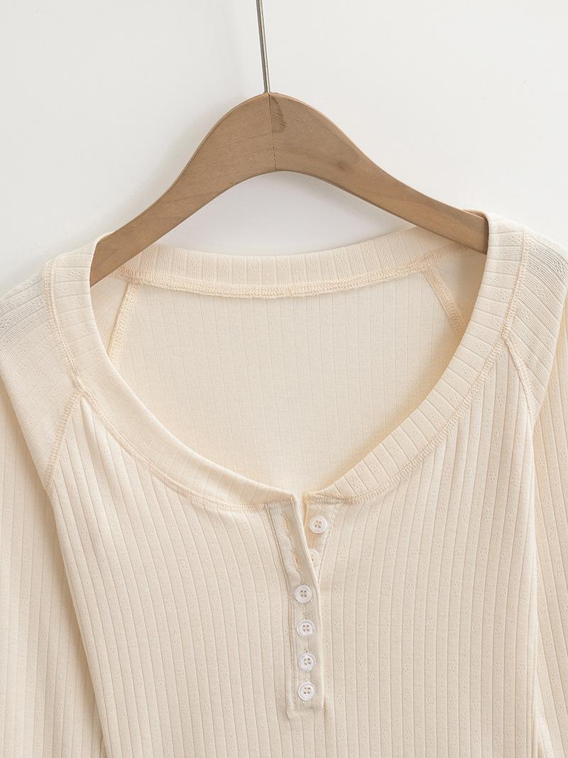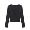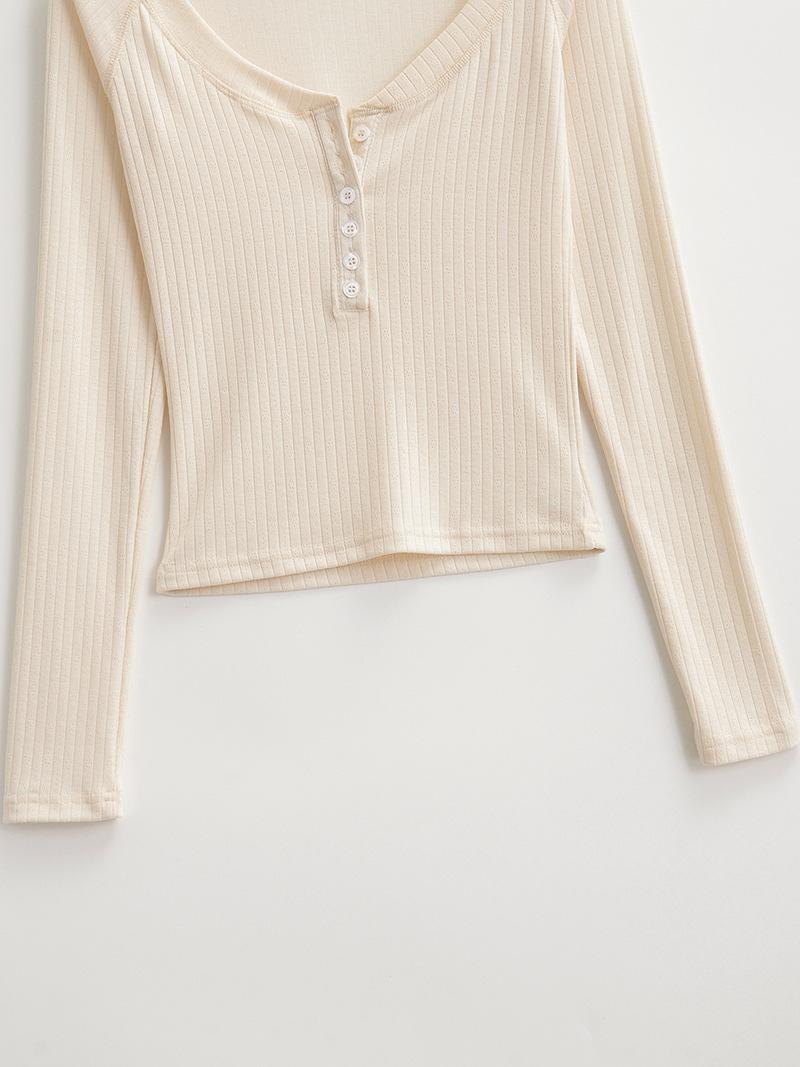 Camiseta de Manga Larga con Cuello Redondo de Estilo Ins a la Moda para Mujer 2024 Principios de Otoño Ajuste Slim Abotonada Corta Camiseta Base Top